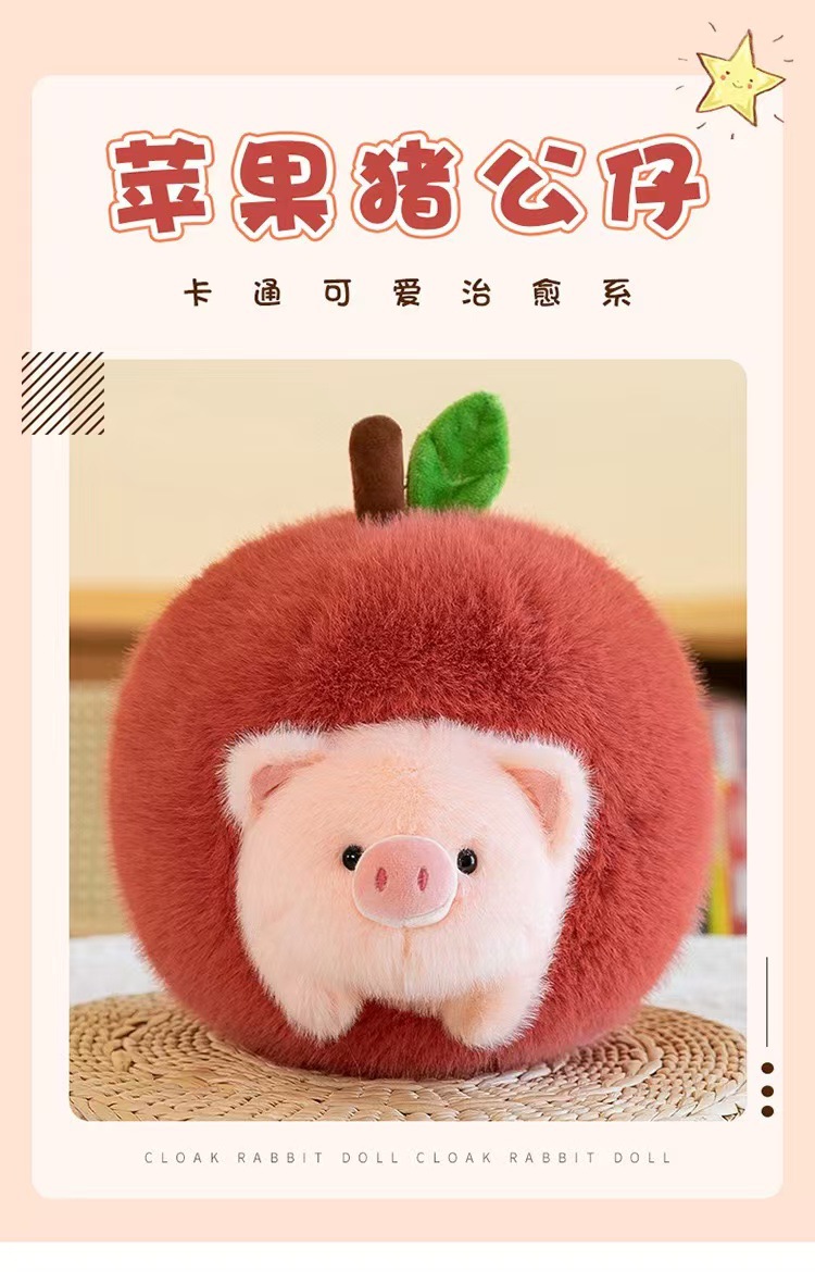 귀여운 훔친 사과 돼지 인형 봉제 장난감 작은 소녀 침실 베개 인형 선물 돼지 인형스토어 가기