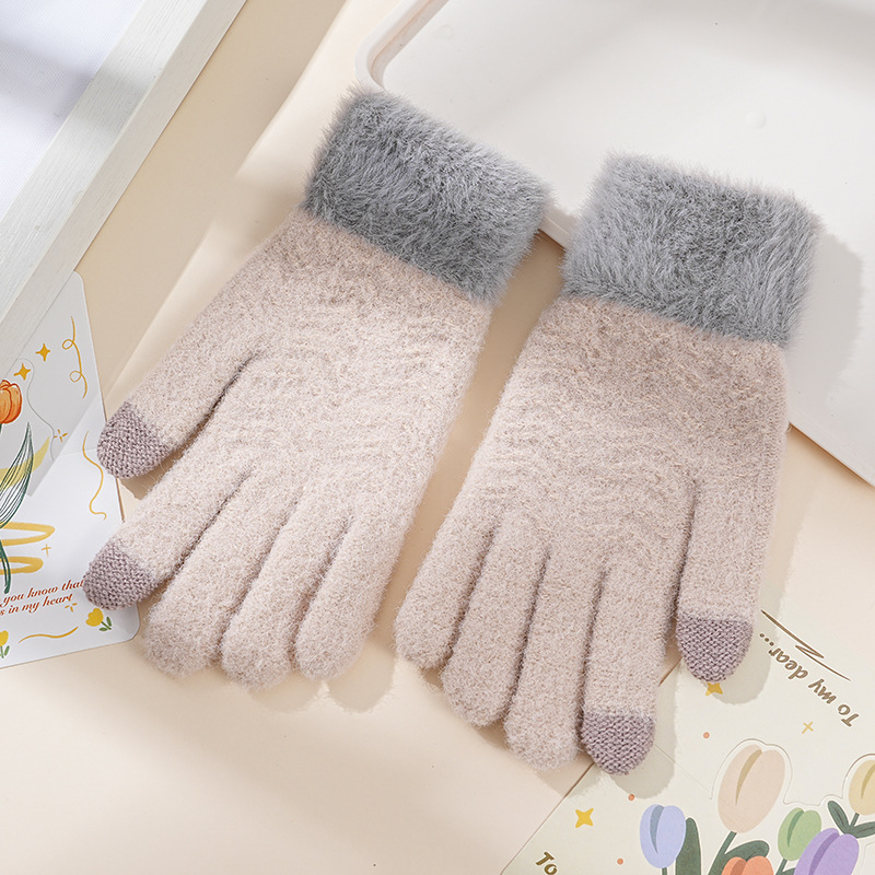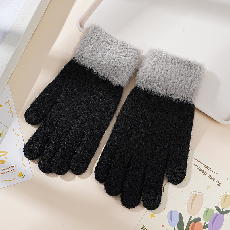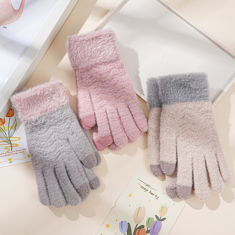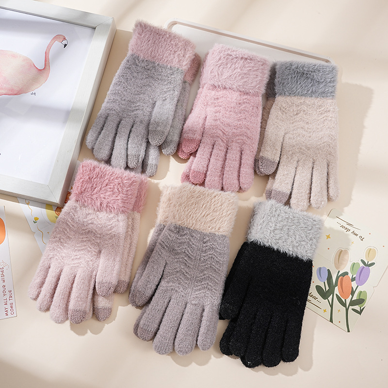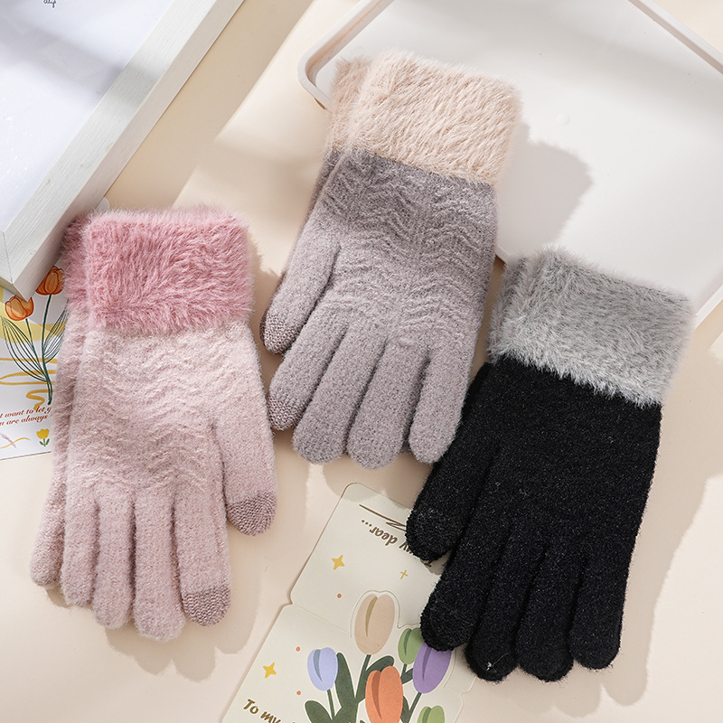 국경 장갑 여성의 겨울 니트 기모 두꺼운 따뜻한 터치 스크린 다섯 손가락 울 야외 한파 승마 도매