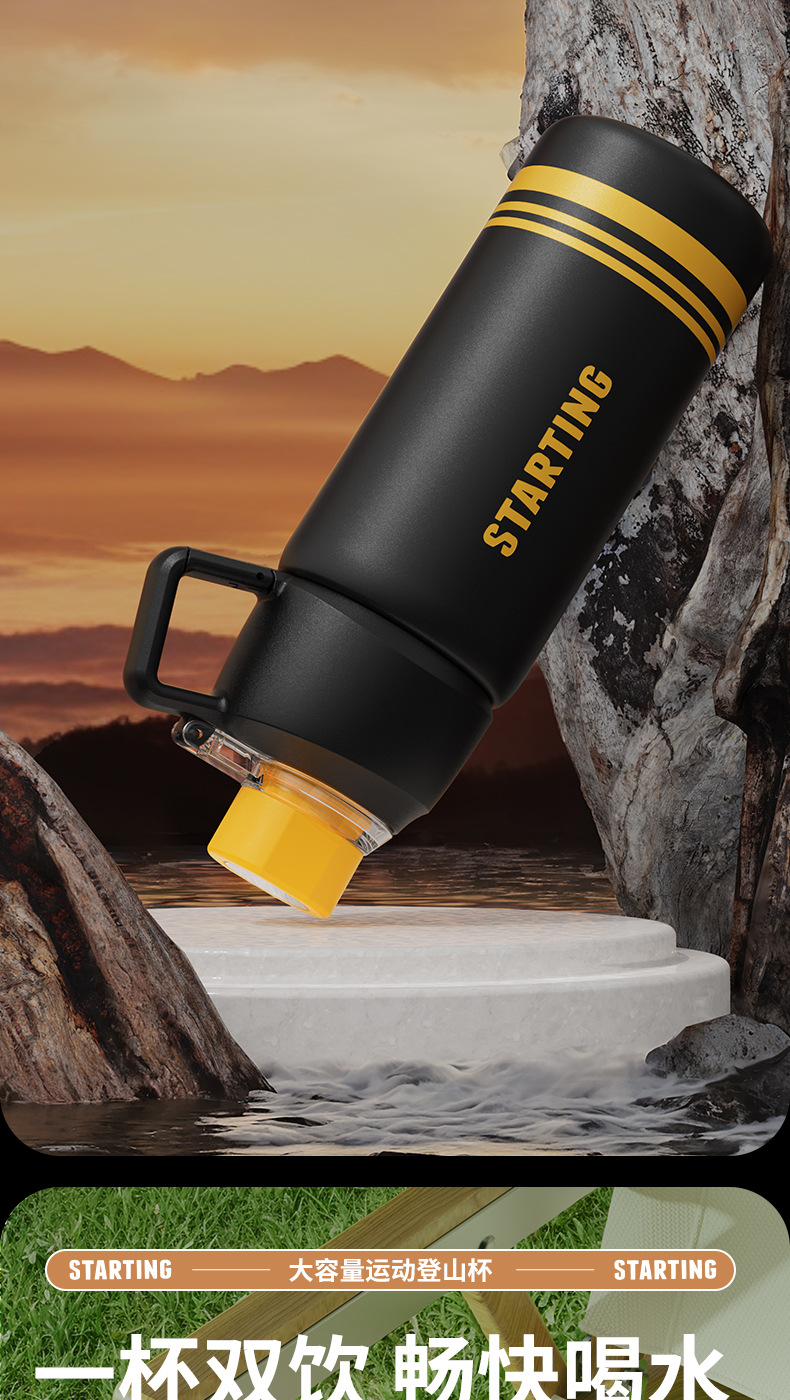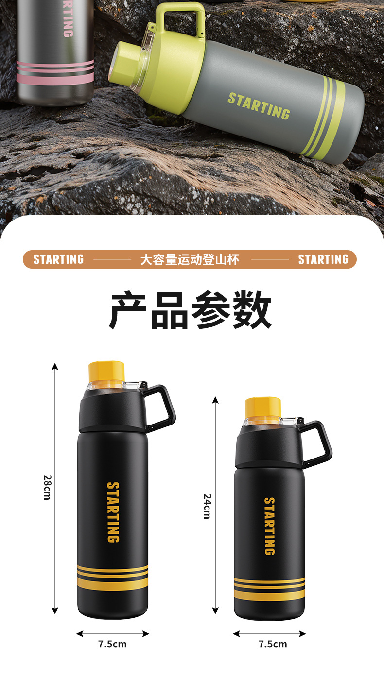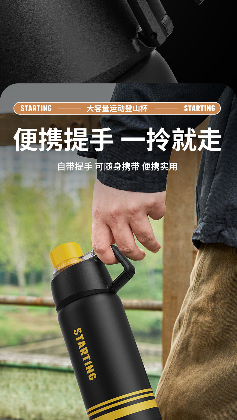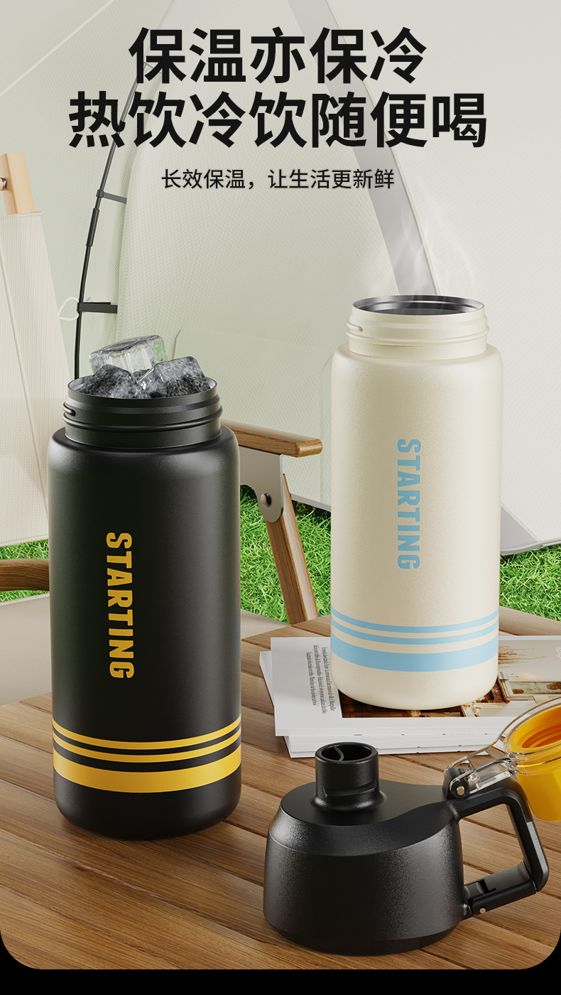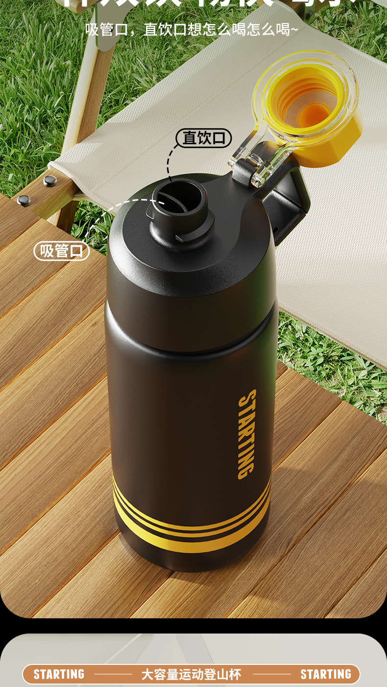 대형 용량 316 스테인레스 스틸 보온병 컵 밀짚 남성과 여성 야외 휴대용 등산 주전자 자동차 스포츠 워터 컵