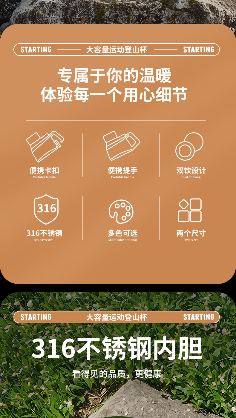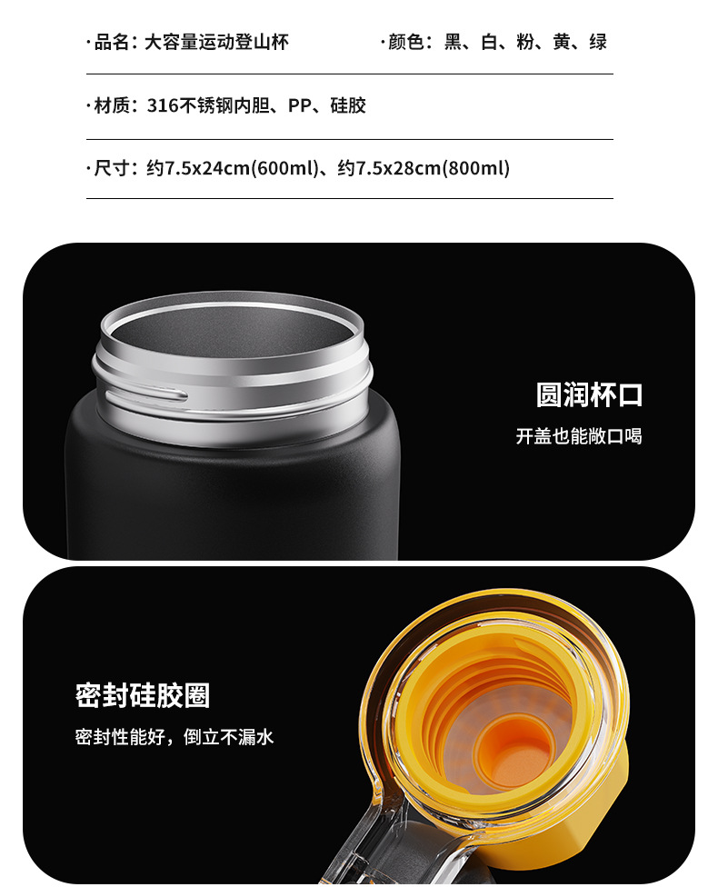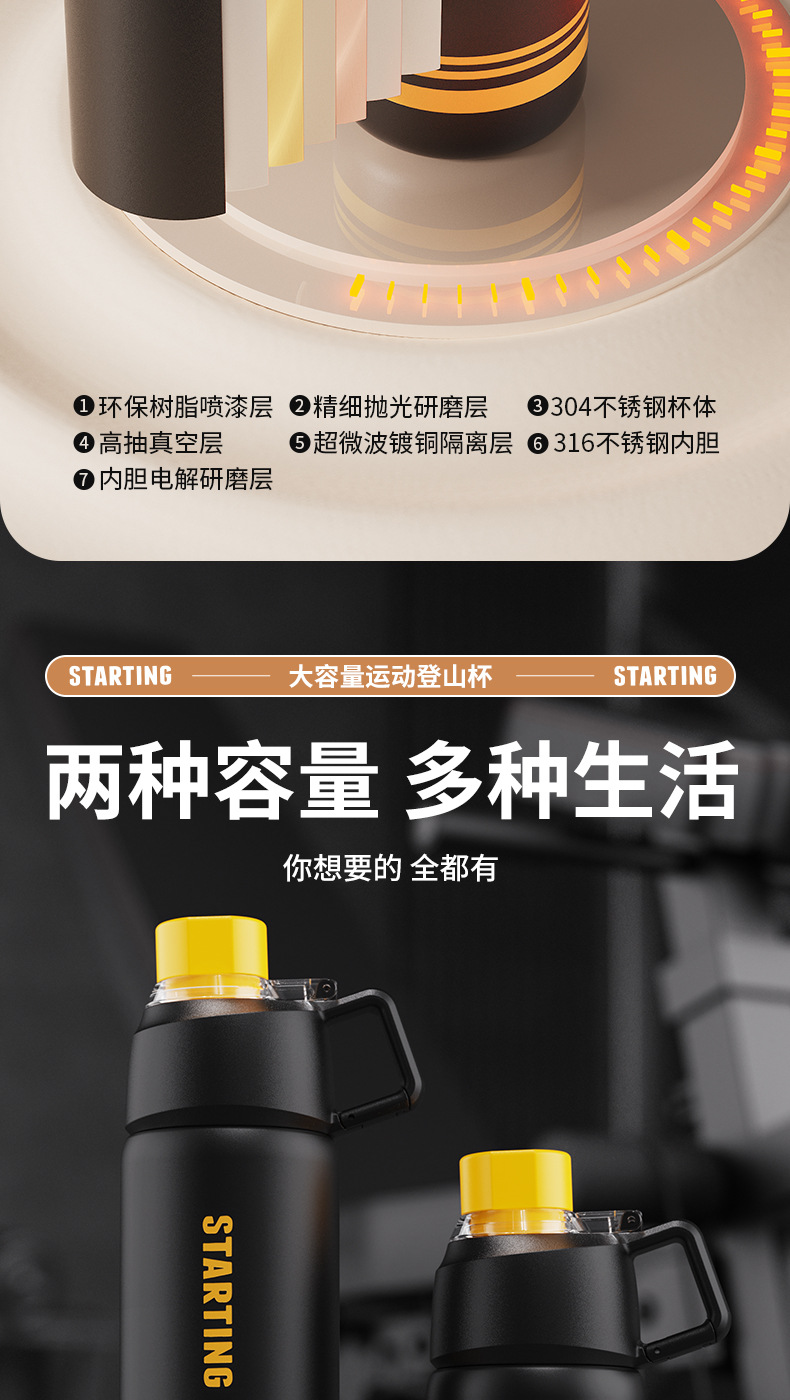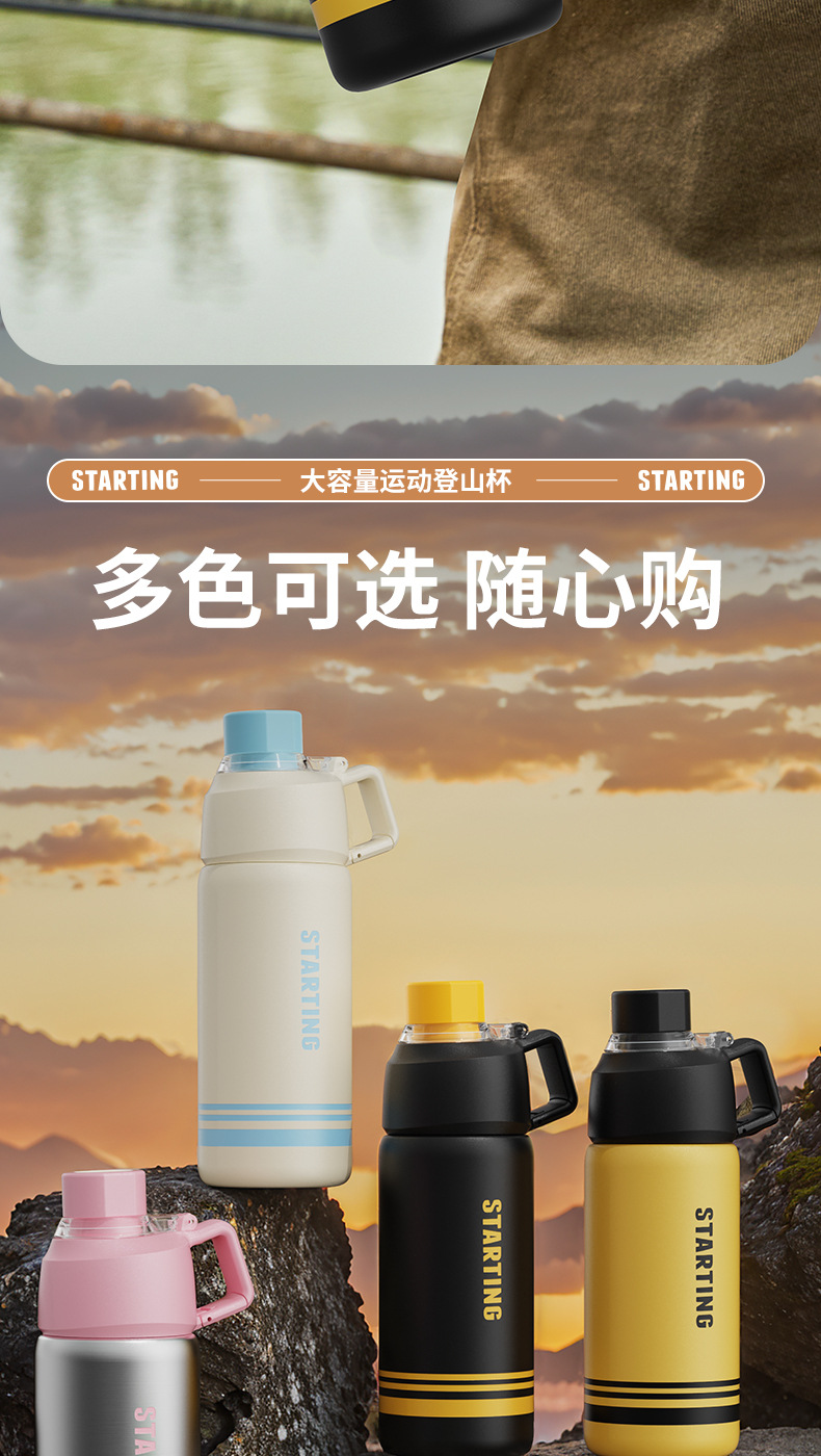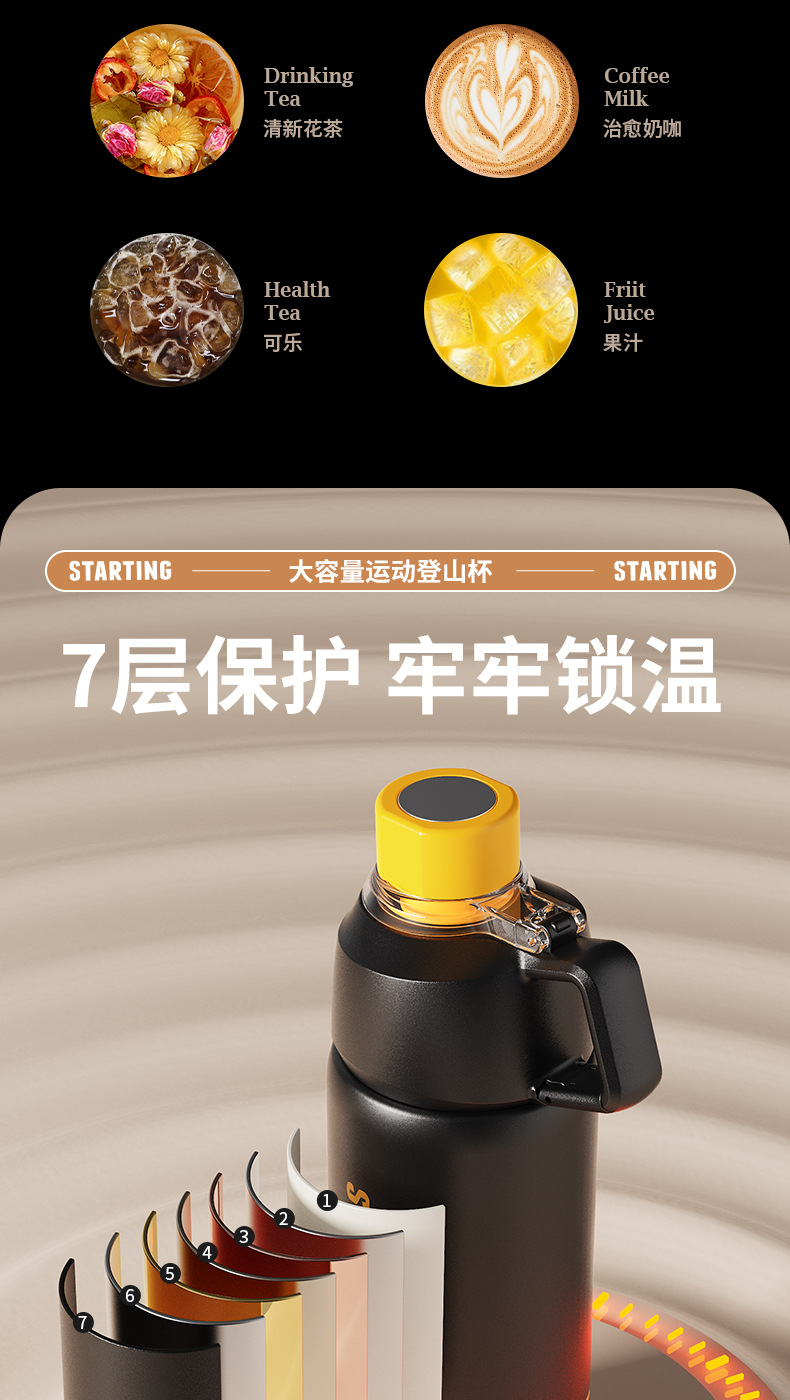 대형 용량 316 스테인레스 스틸 보온병 컵 밀짚 남성과 여성 야외 휴대용 등산 주전자 자동차 스포츠 워터 컵