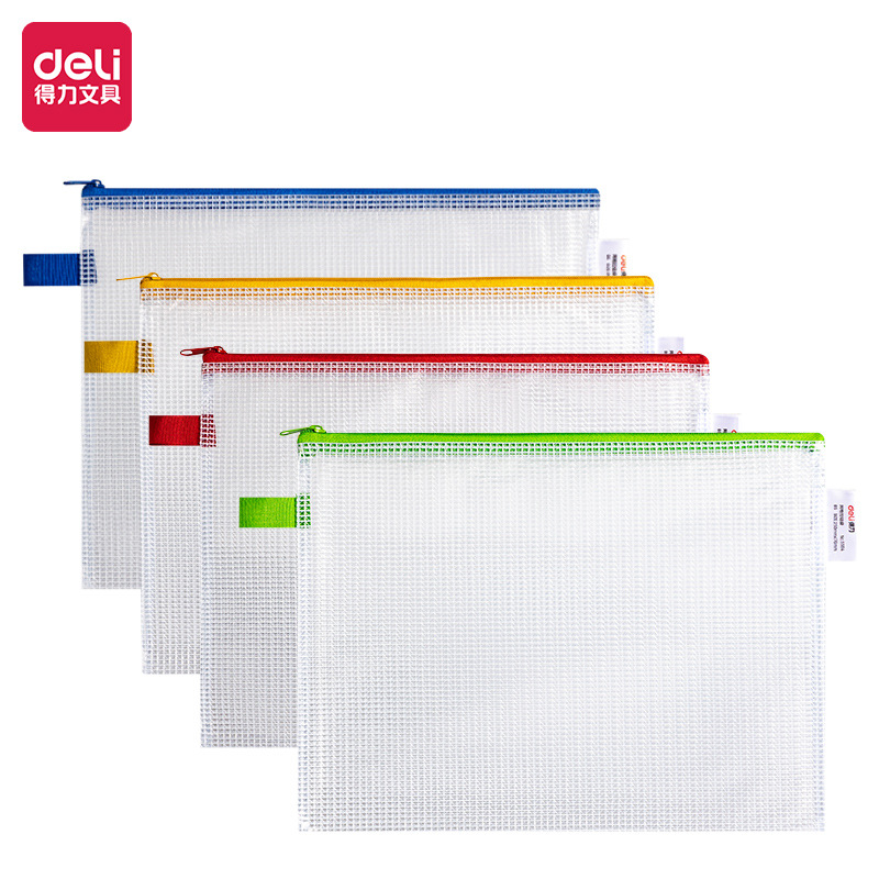 델리 두꺼운 파일 가방 대용량 저장 정보 가방 투명 테스트 종이 가방 방수 저장 가방 그리드 지퍼 가방