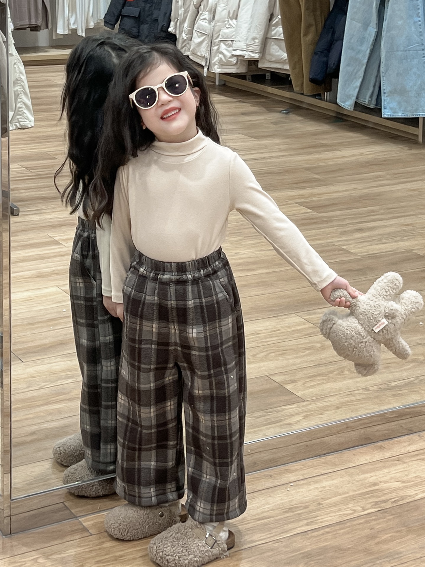 • DM 25651040 -체크무늬 플리스 팬츠