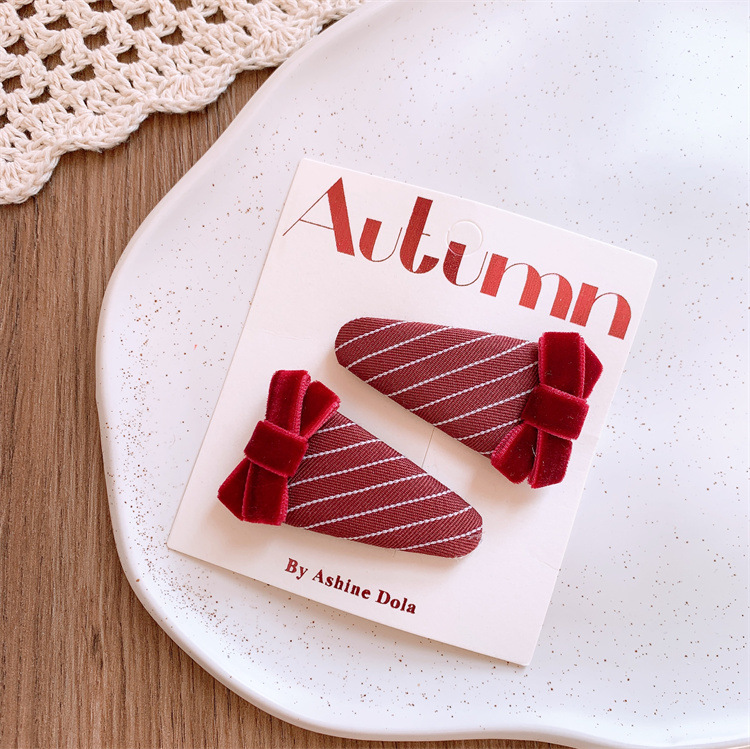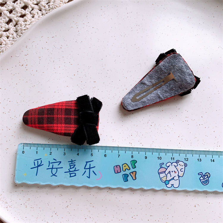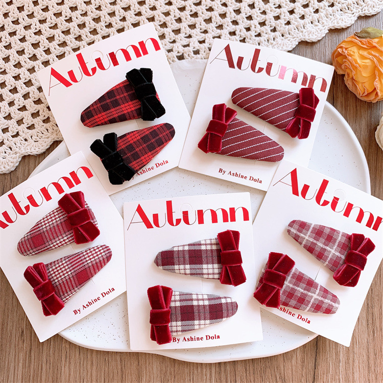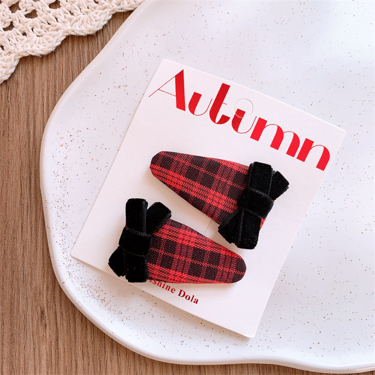 새로운 어린이 빨간 격자 무늬 헤어핀 달콤한 소녀 벨벳 활 부러진 머리 BB 클립 방귀 사이드 클립 헤어핀