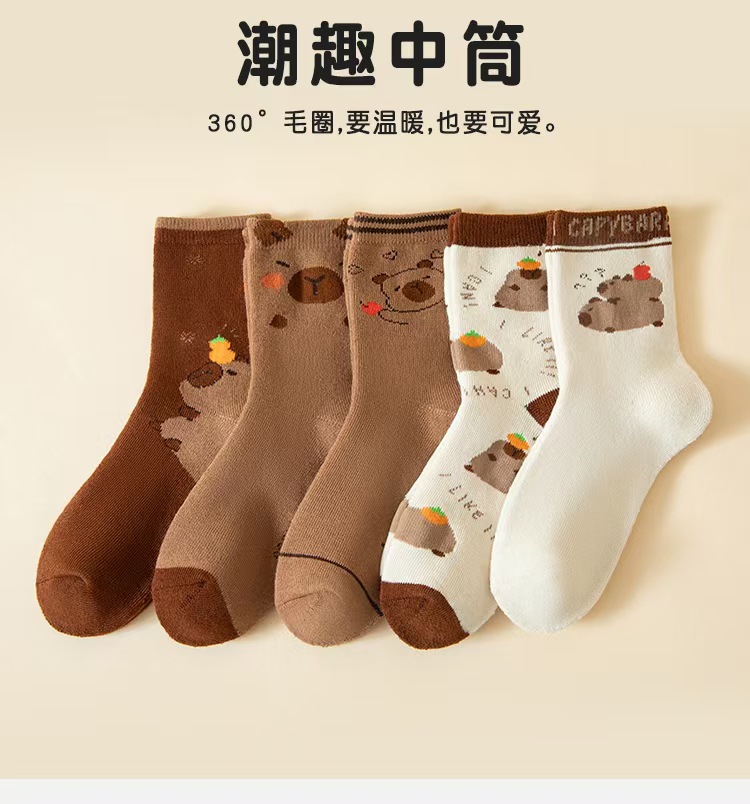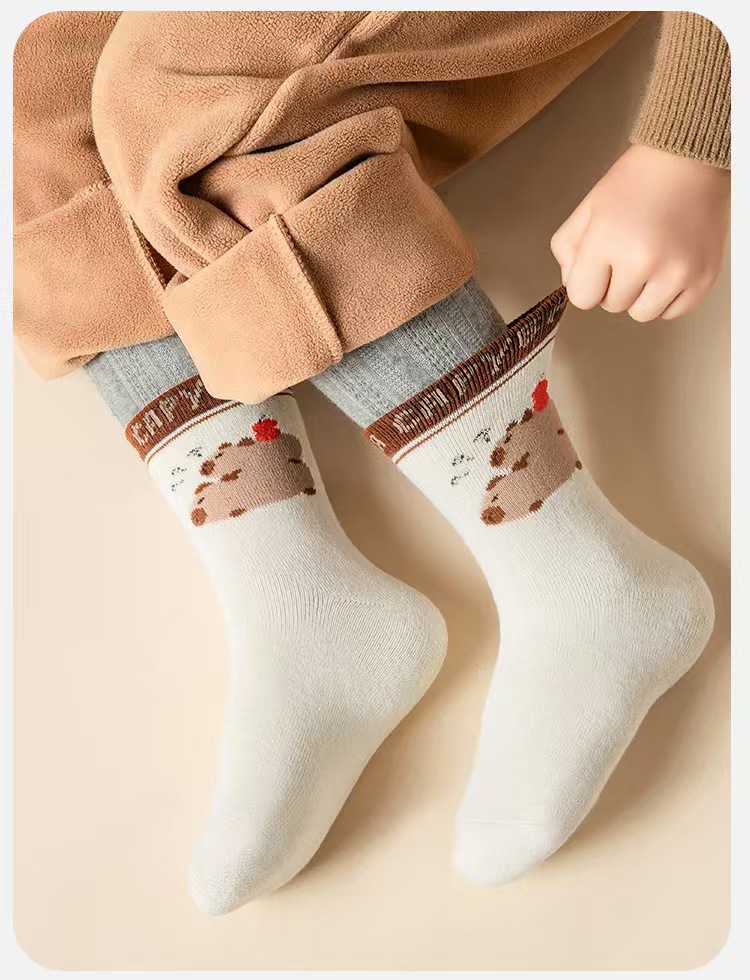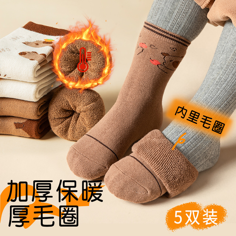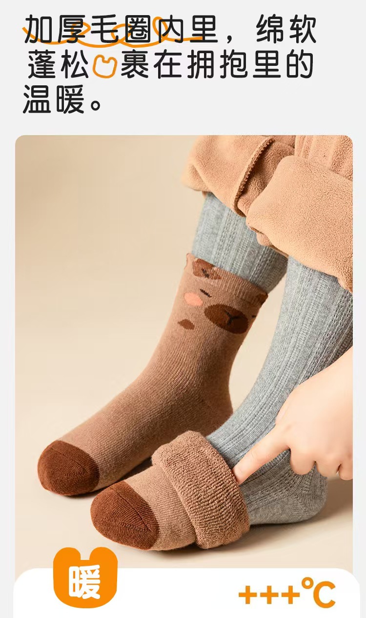 어린이 양말 가을 겨울용 플러스 벨벳 두꺼운 중간 길이 양말 카피발라 남녀 어린이용 타월 양말