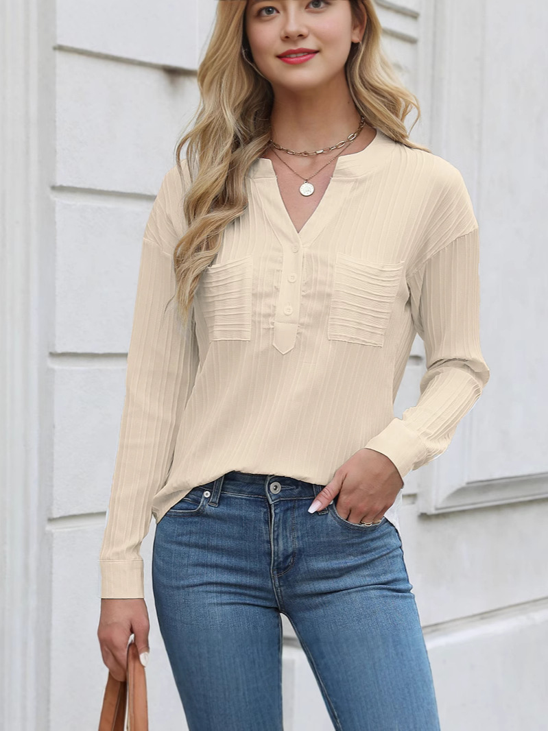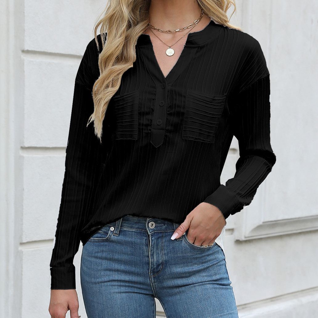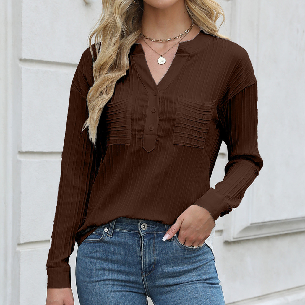 아마존 독립 역 유럽과 미국 여성 셔츠 V-Neck 우아한 캐주얼 솔리드 컬러 풀오버 탑