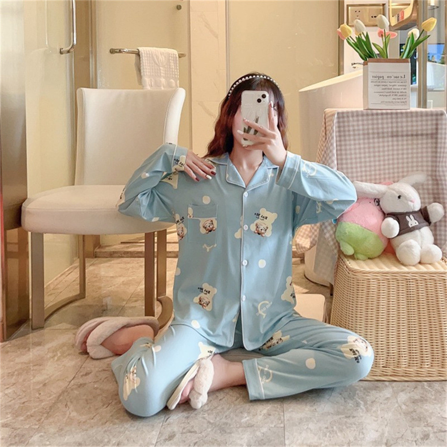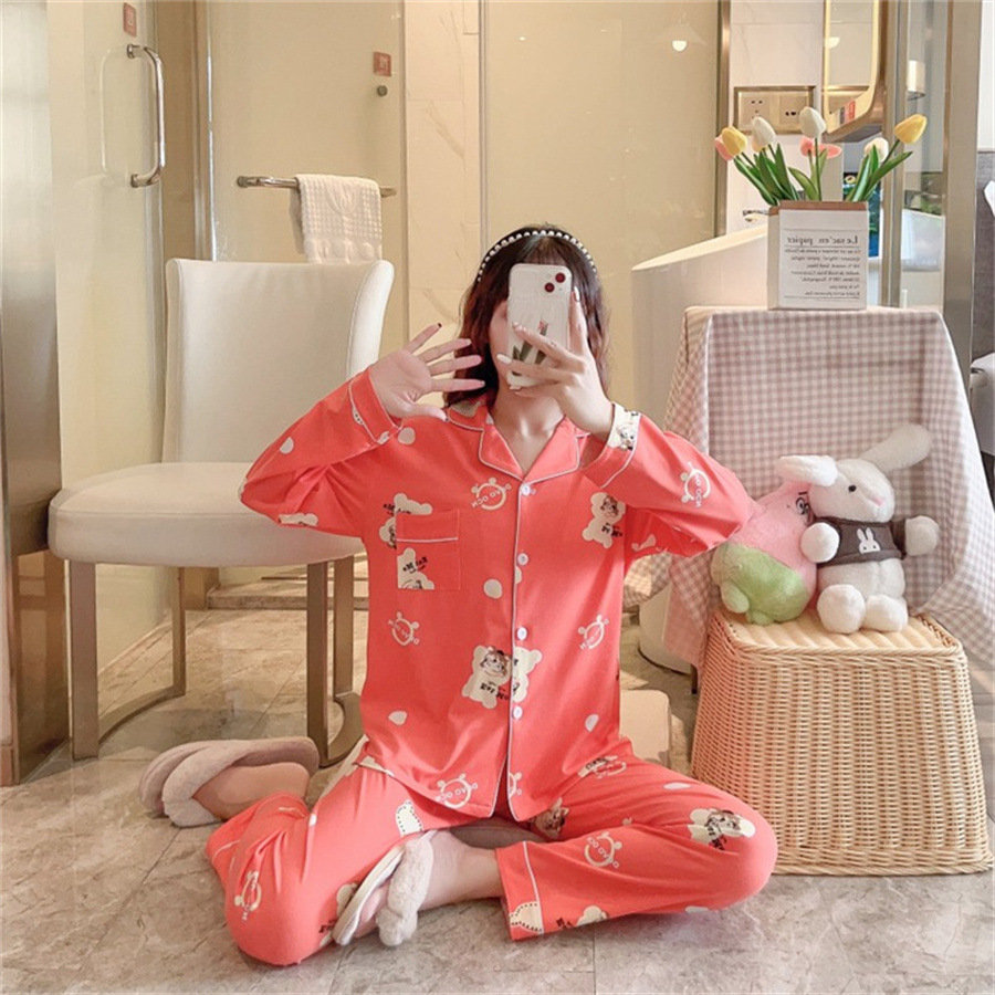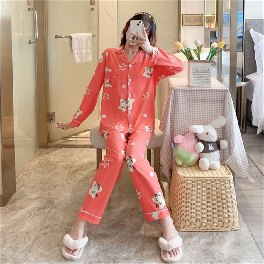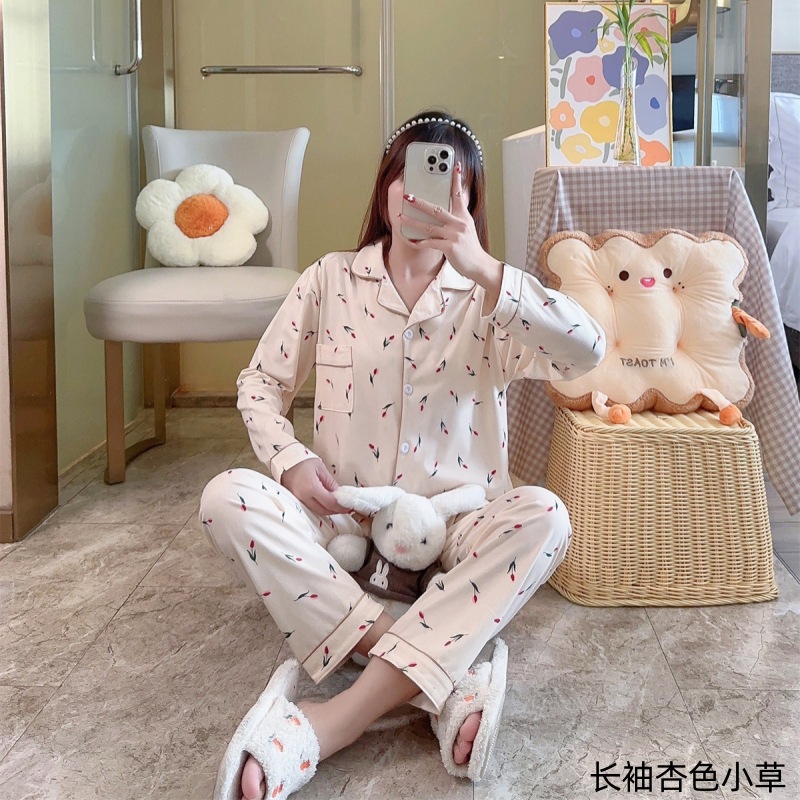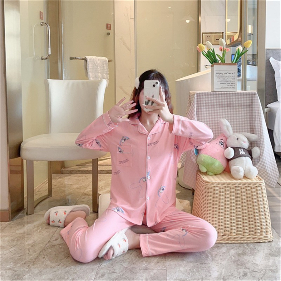 2024 봄과 가을 긴 소매 파자마 여성용 세트 카디건 홈 의류 캐주얼스토어 가기
