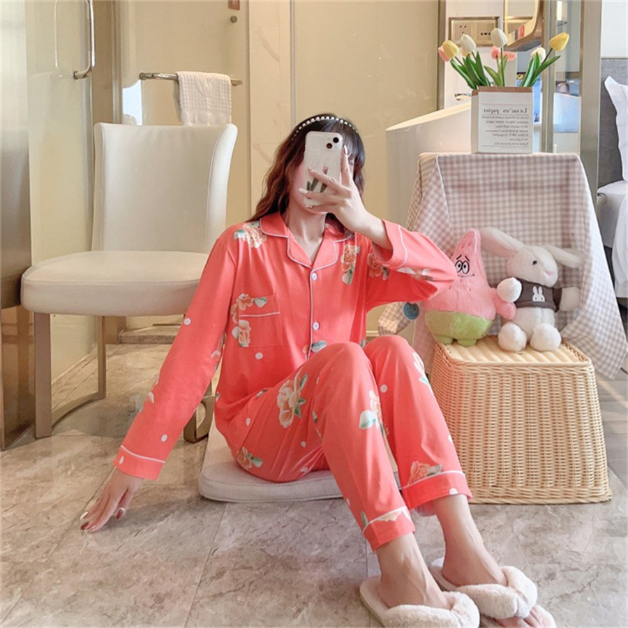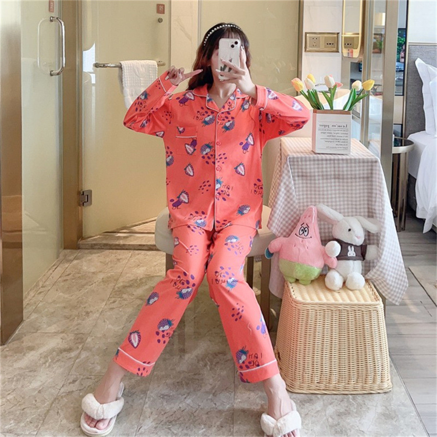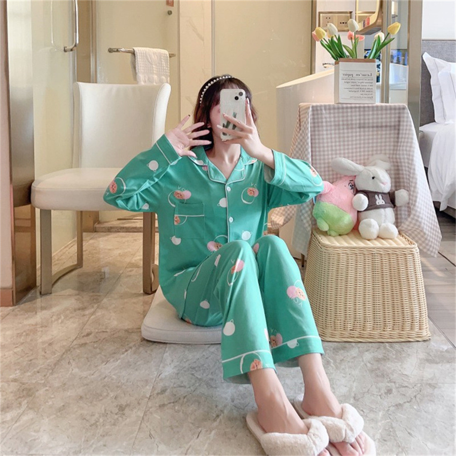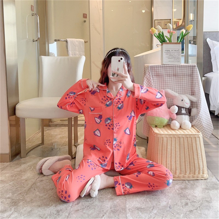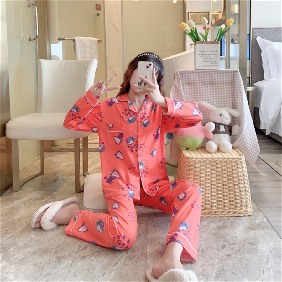 2024 봄과 가을 긴 소매 파자마 여성용 세트 카디건 홈 의류 캐주얼스토어 가기