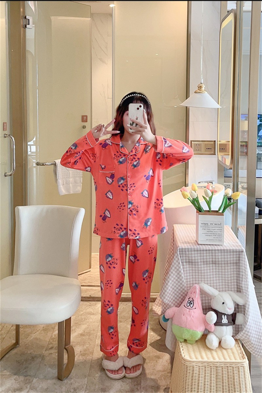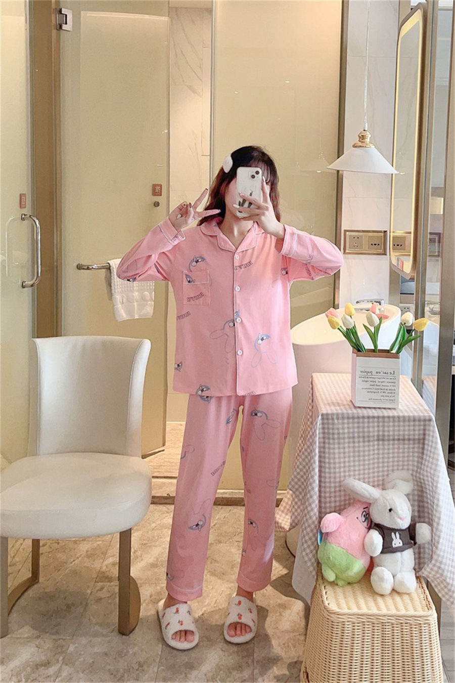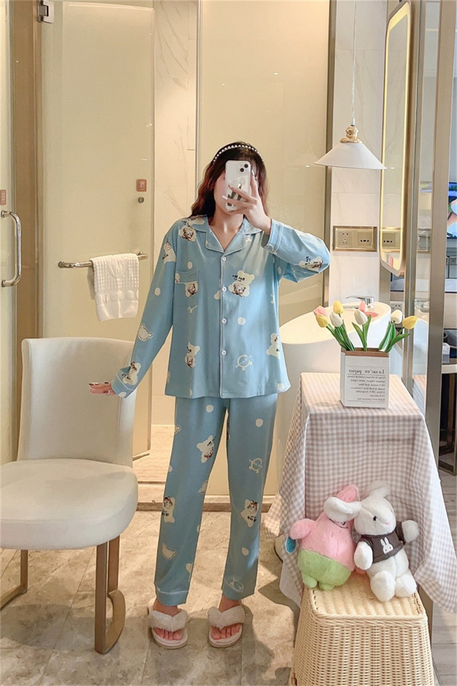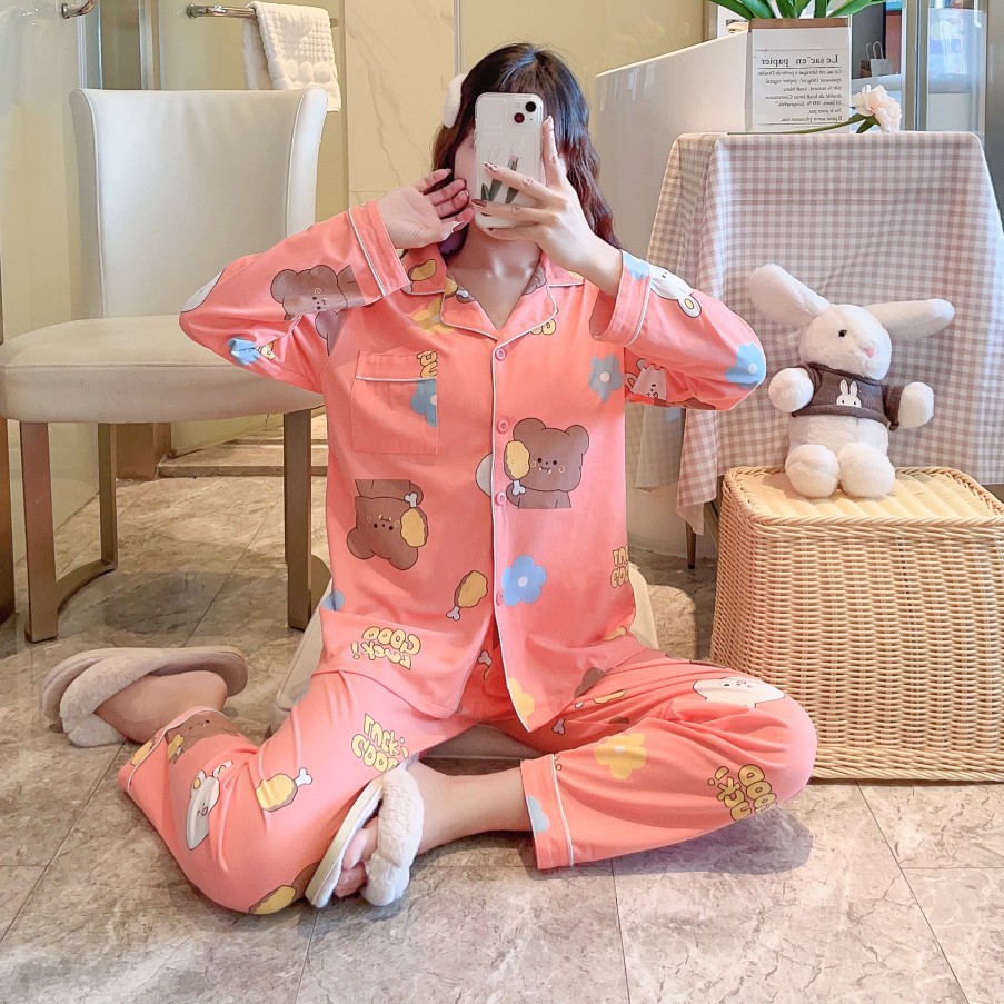 2024 봄과 가을 긴 소매 파자마 여성용 세트 카디건 홈 의류 캐주얼스토어 가기
