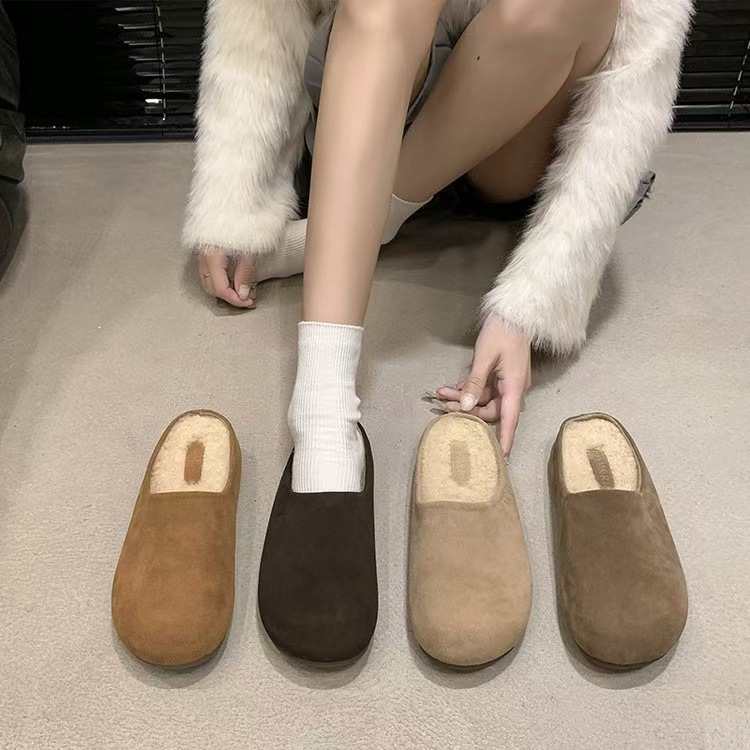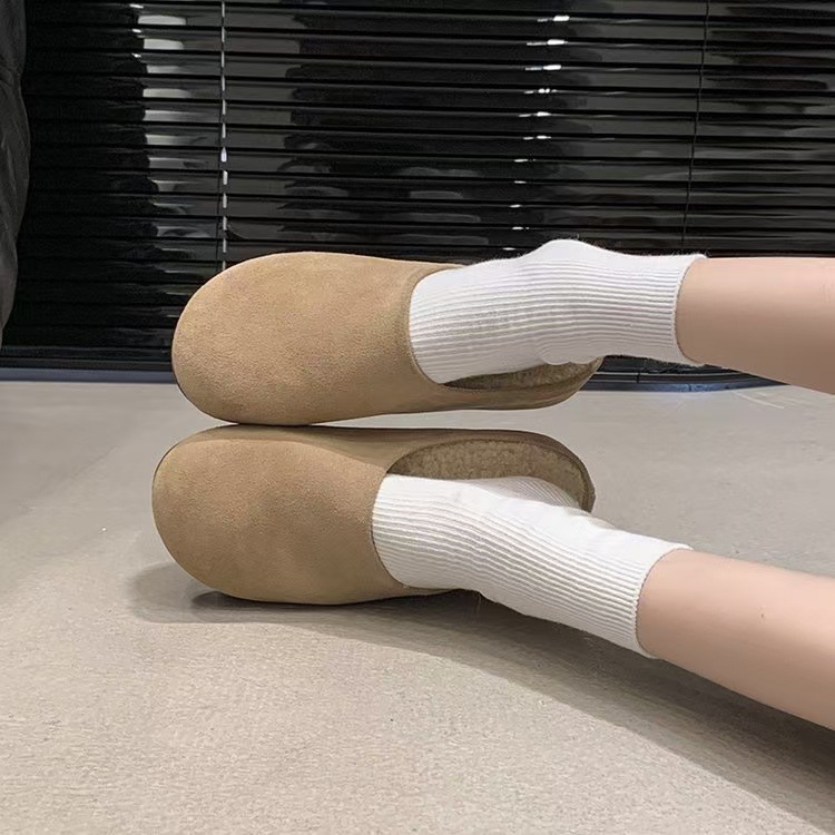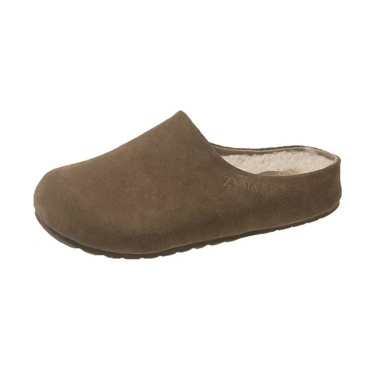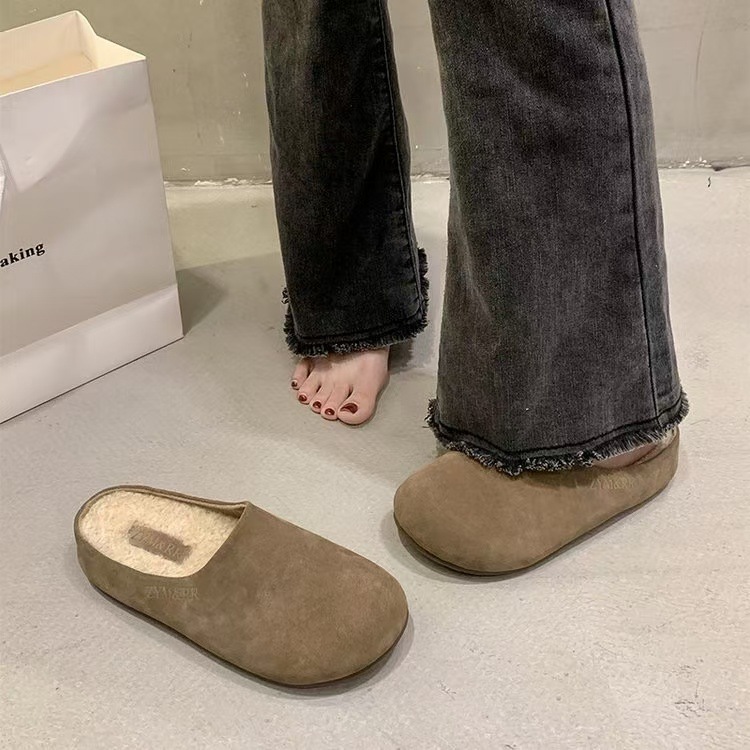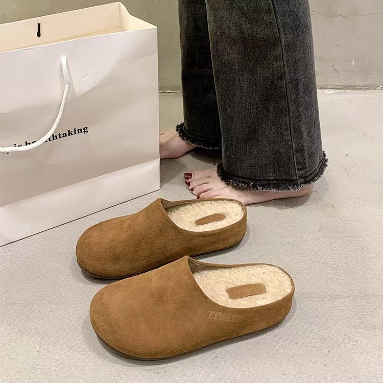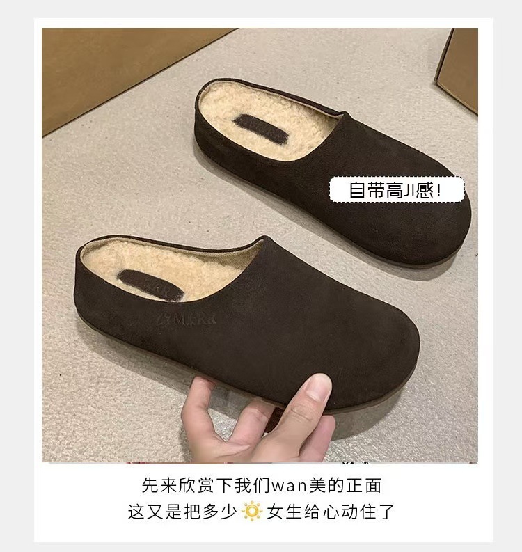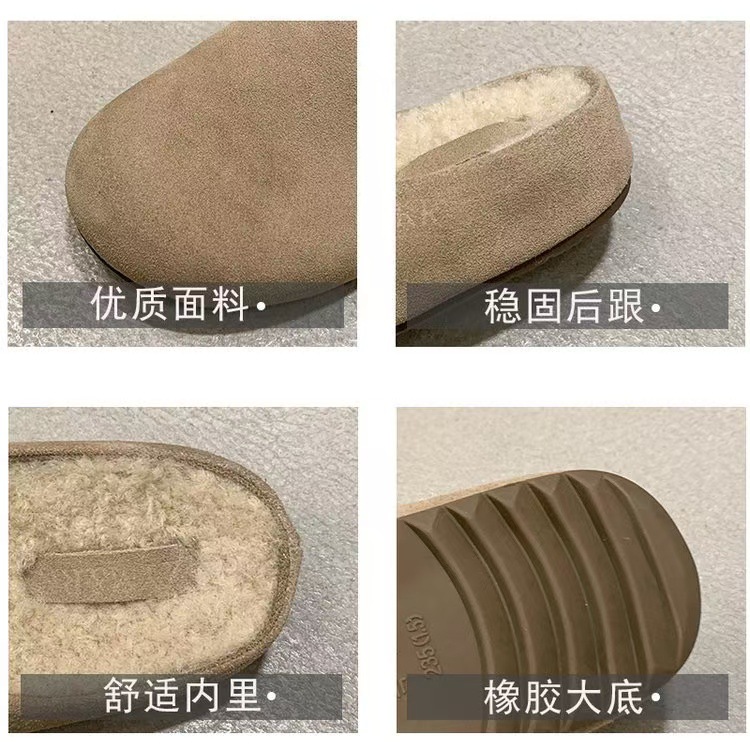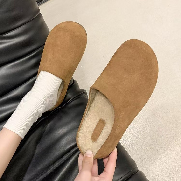 Cowhide 버전! 내부 강화 플랫폼 밑창 버켄안 신발 여성의 가을 및 겨울 새로운 레트로 미운 귀여운 기모 코튼 신발 발가락 반 슬리퍼스토어 가기
