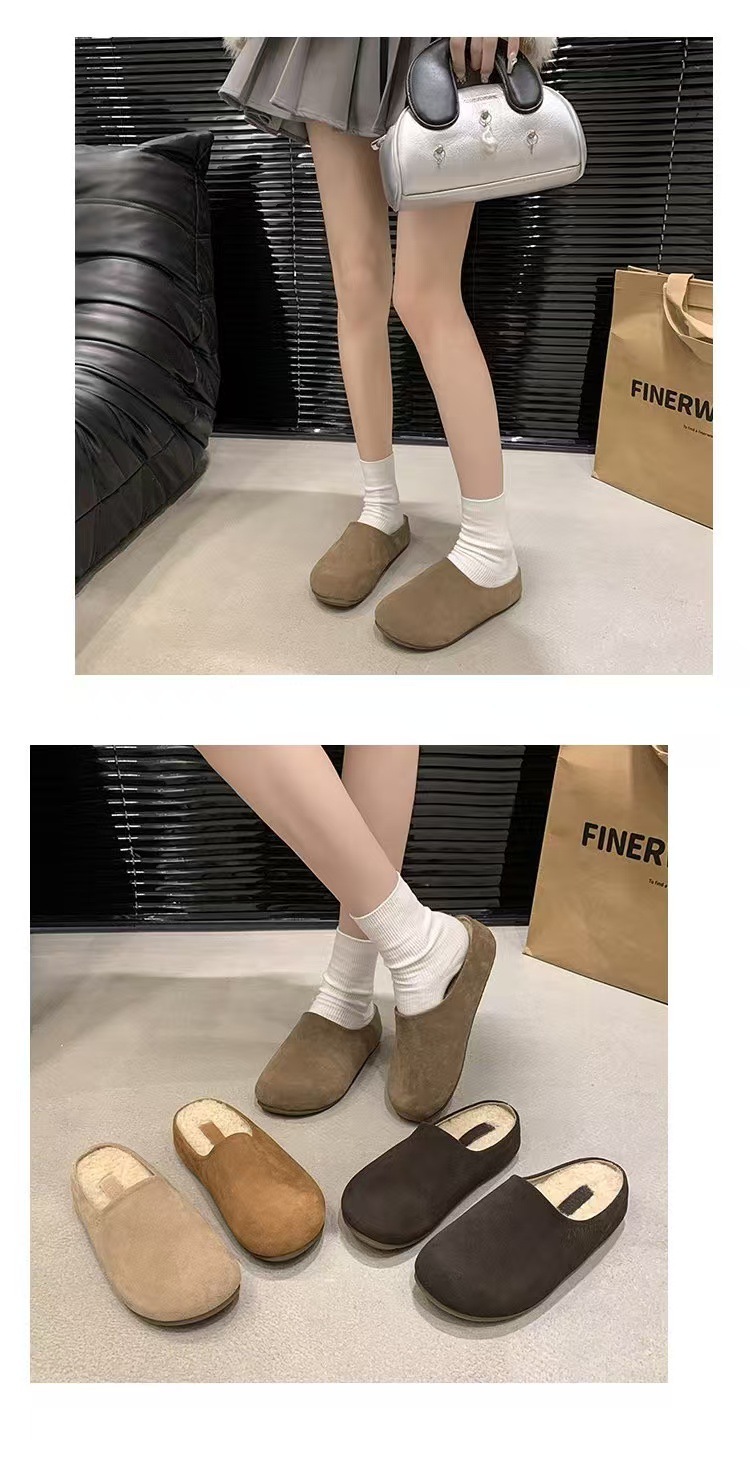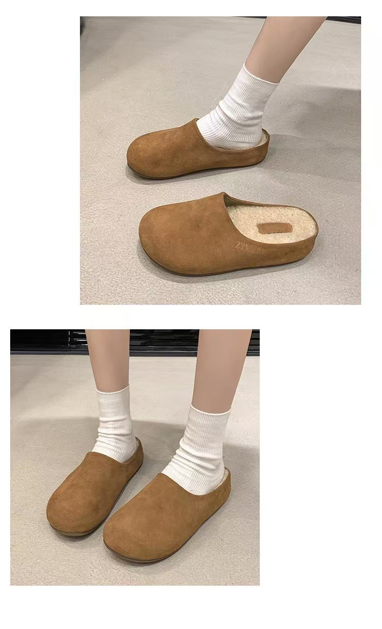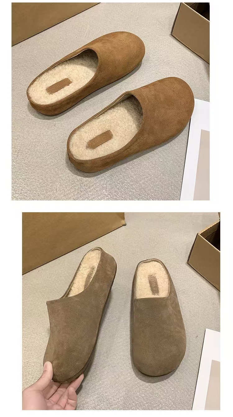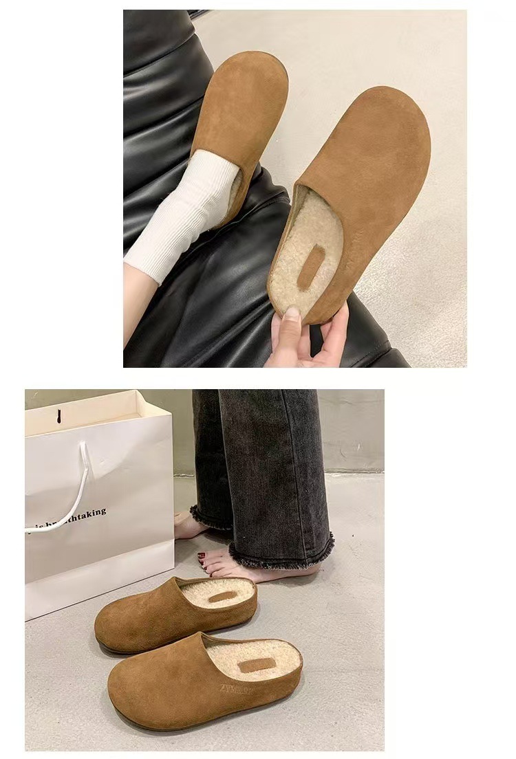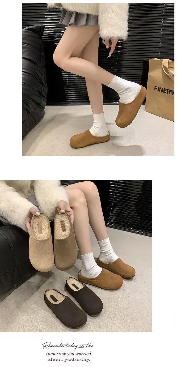 Cowhide 버전! 내부 강화 플랫폼 밑창 버켄안 신발 여성의 가을 및 겨울 새로운 레트로 미운 귀여운 기모 코튼 신발 발가락 반 슬리퍼스토어 가기