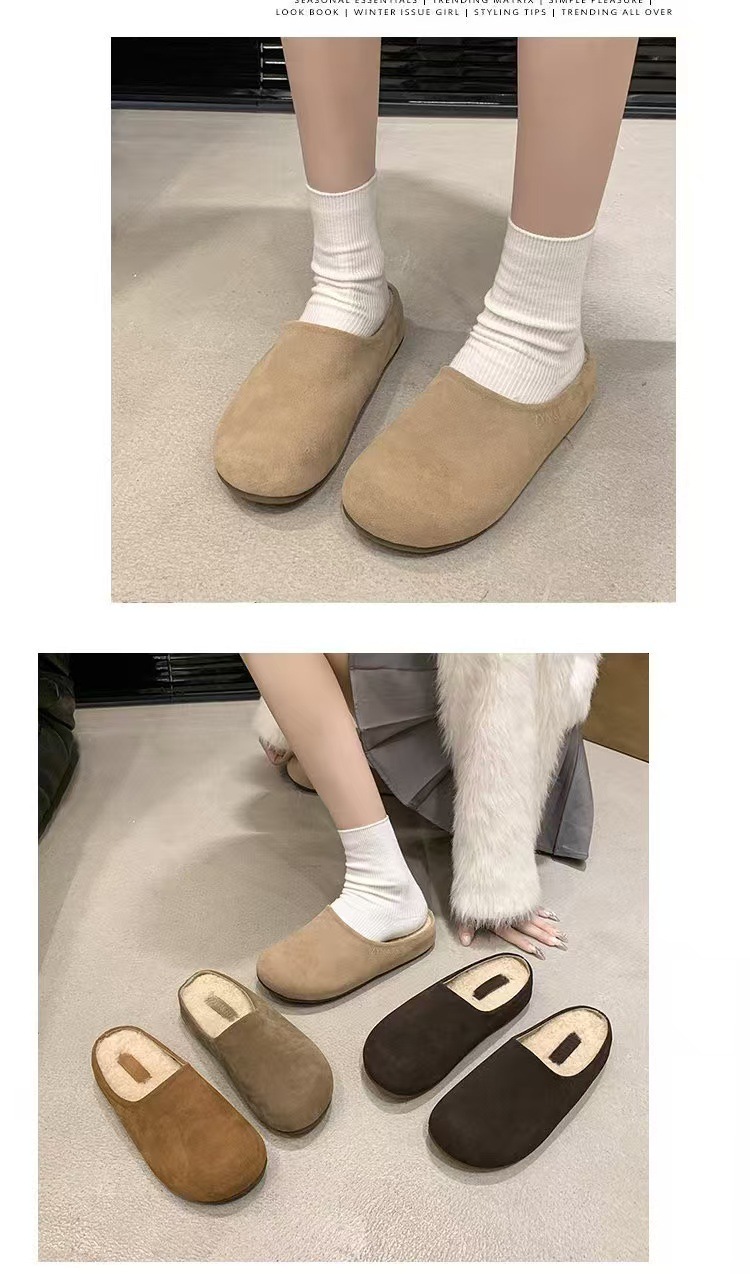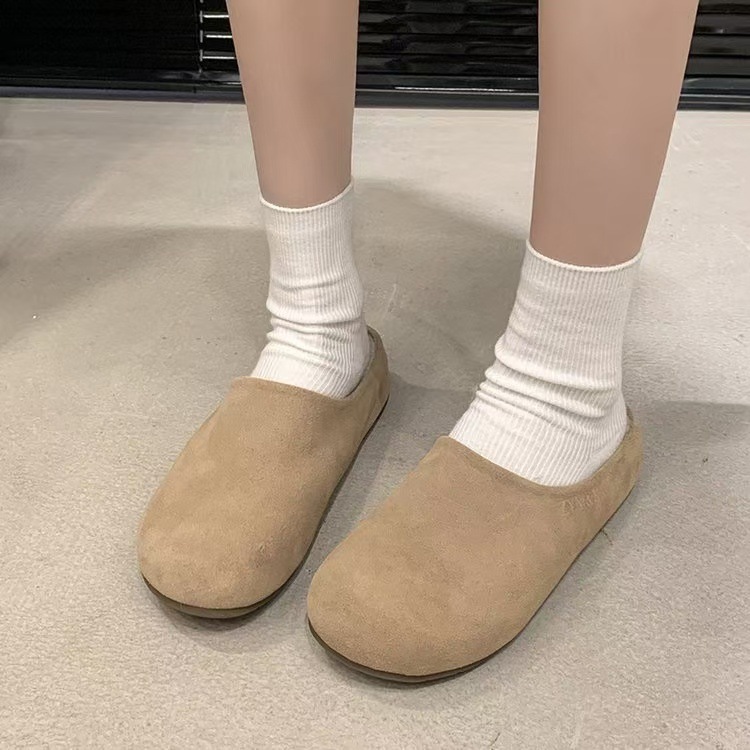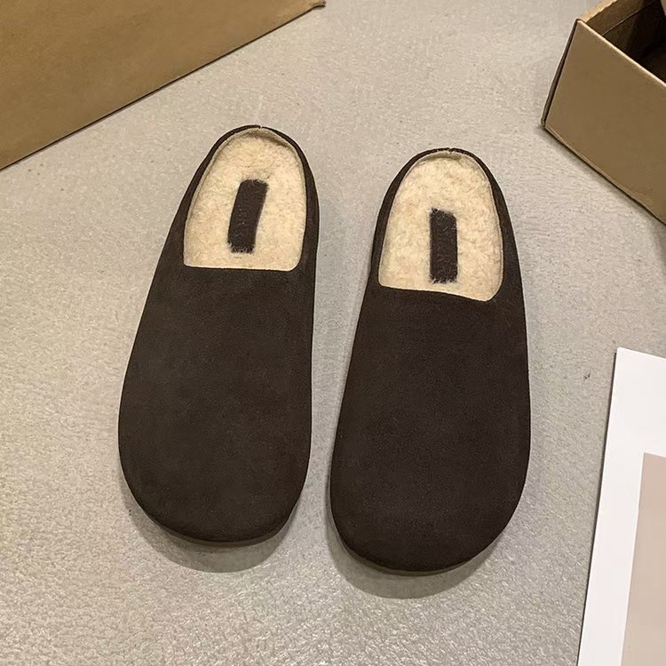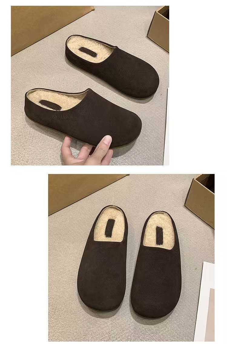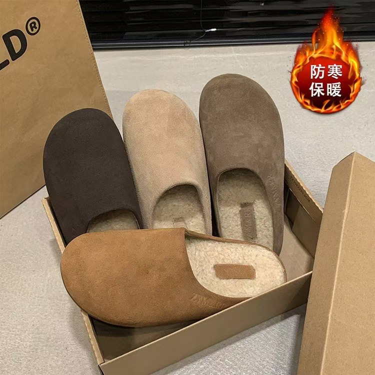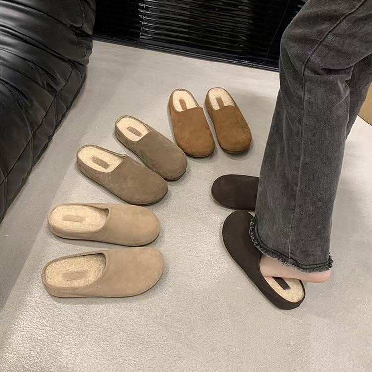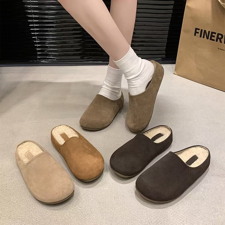 Cowhide 버전! 내부 강화 플랫폼 밑창 버켄안 신발 여성의 가을 및 겨울 새로운 레트로 미운 귀여운 기모 코튼 신발 발가락 반 슬리퍼스토어 가기