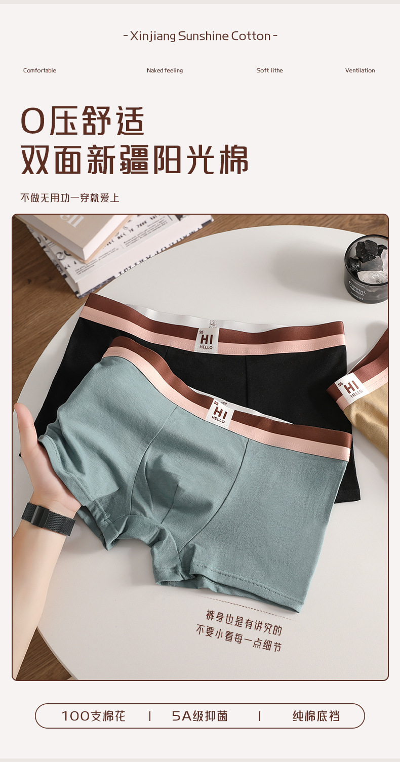 男士纯棉内裤男生大码青年印花男内短裤高档全棉平角宽松透气运动