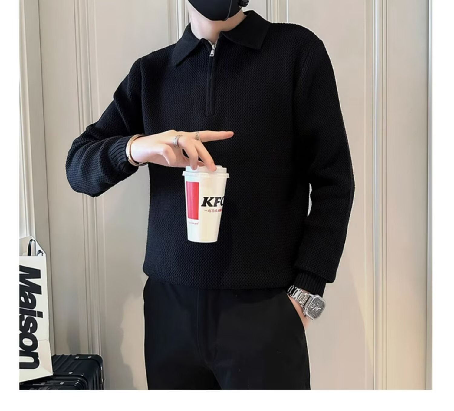 트렌디 한 브랜드 플랑크톤 잘 생긴 스웨터 남자의 가을과 겨울 하이 엔드 하프 Zip 니트 스웨터 2024 새로운 남자 내베이스 셔츠스토어 가기