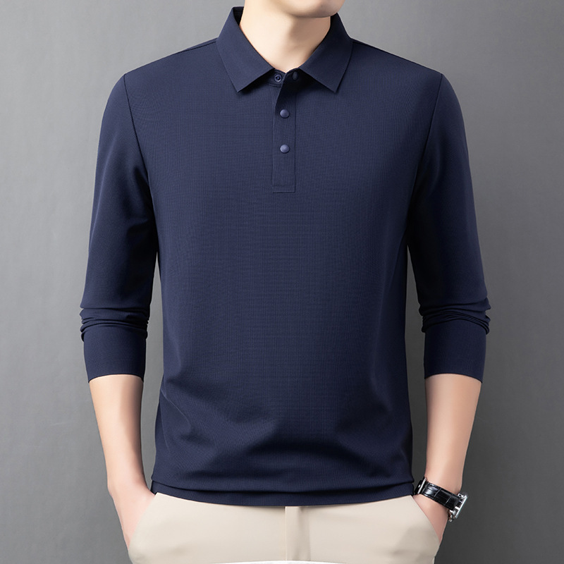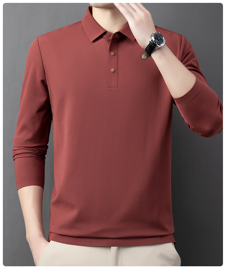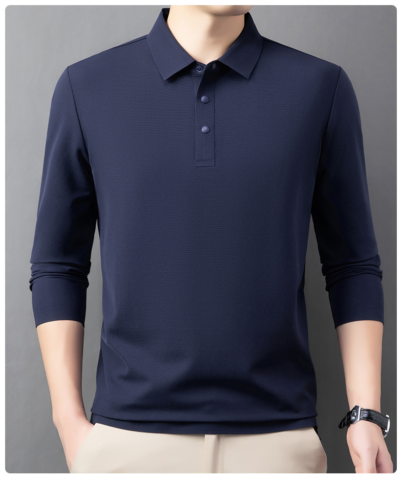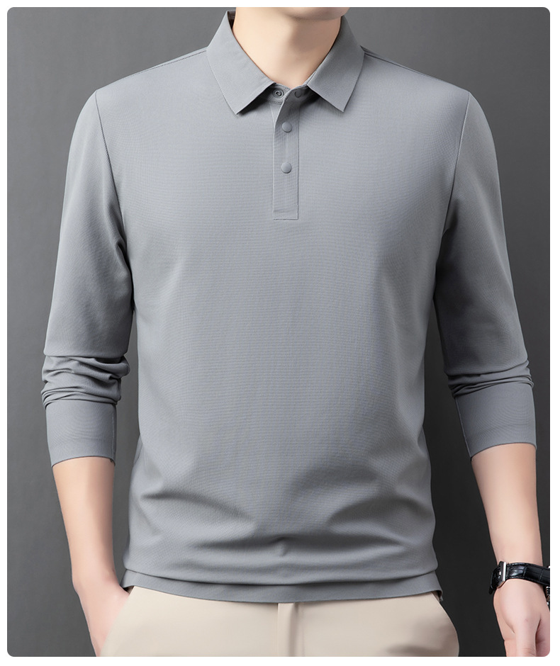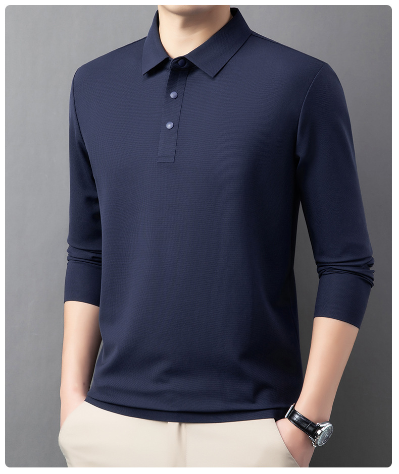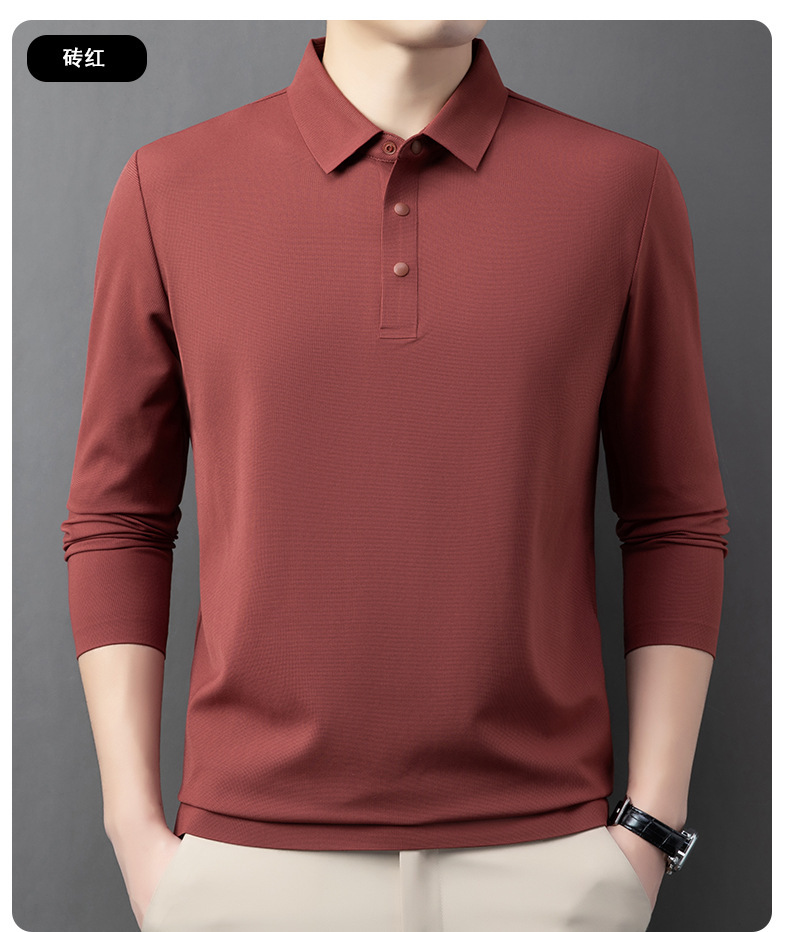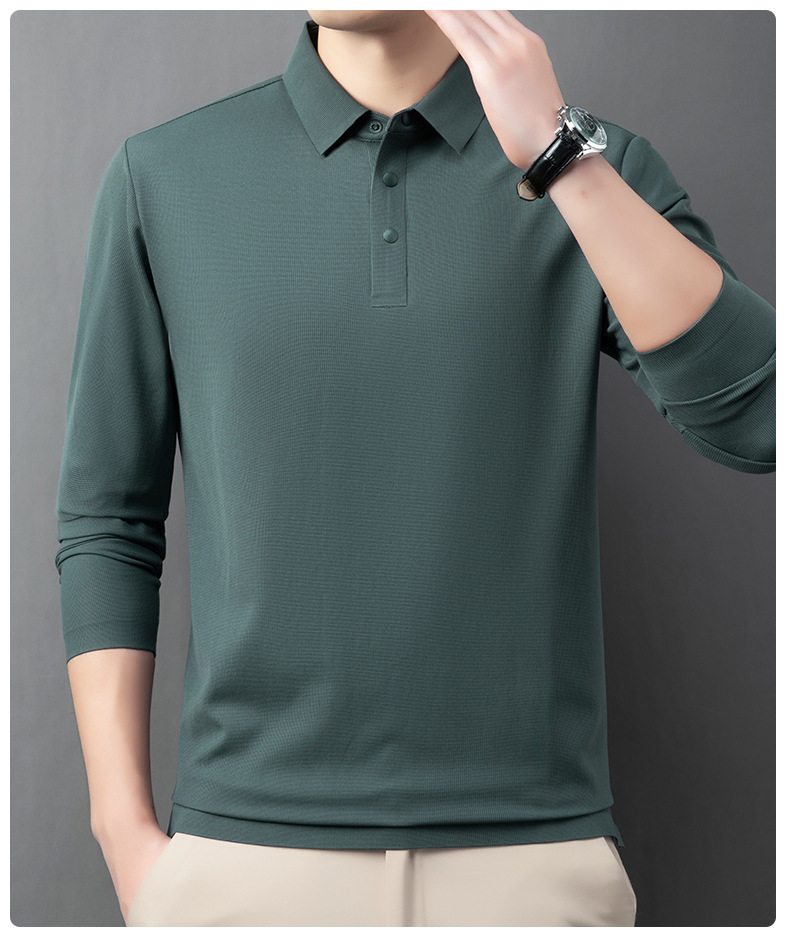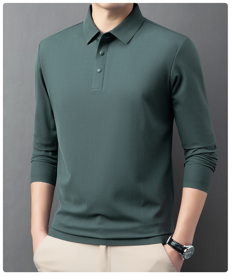 하이 퀄리티 가을과 겨울 원활한 폴로 셔츠 긴 소매 남성 패션 비즈니스 캐주얼 젊고 중년의 얇은 양털베이스 셔츠