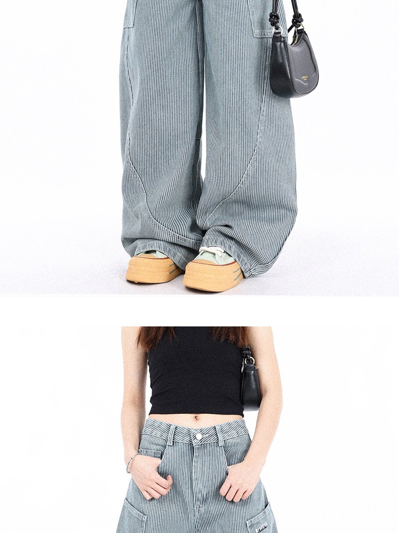 여자를위한 큰 주머니를 가진 줄무늬 Machete 바지 느슨한 캐주얼 펜던트 넓은 다리 바지 미국 스타일 레트로 올 매치 청바지스토어 가기