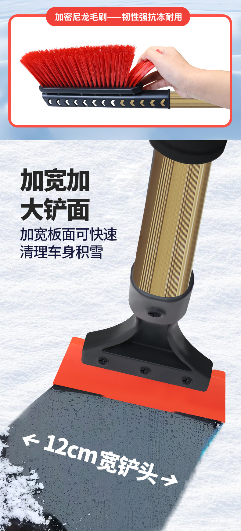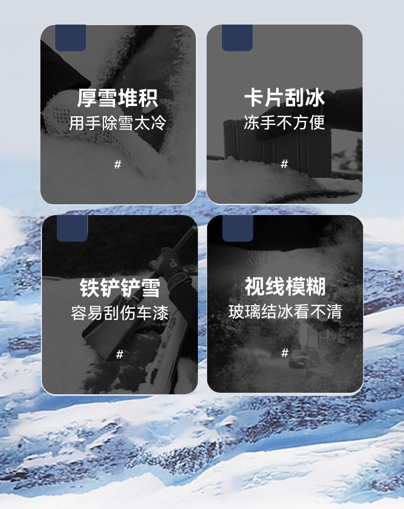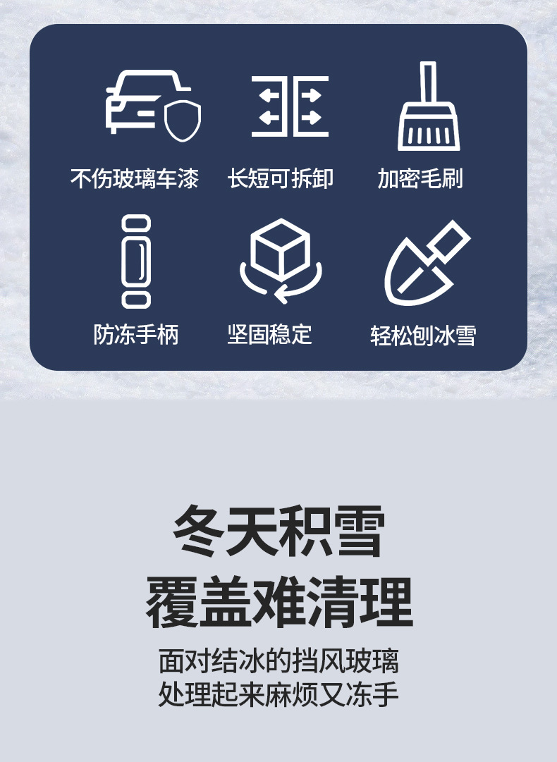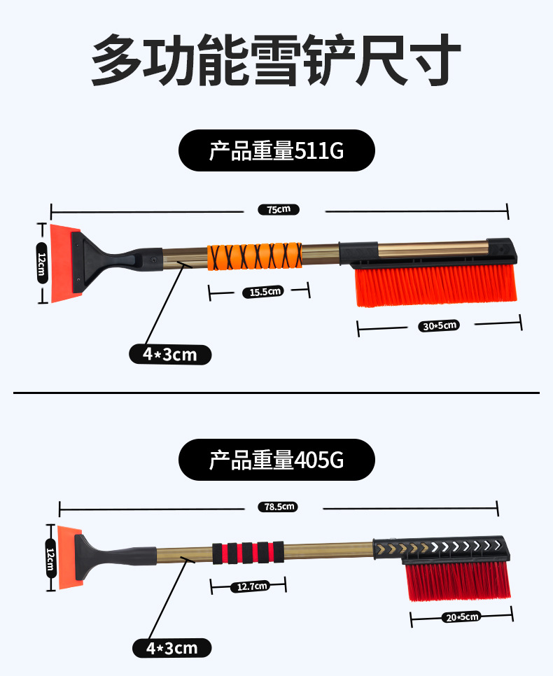 【使用方法】:把雪铲刷头对准要清理的雪,用力一刷即可