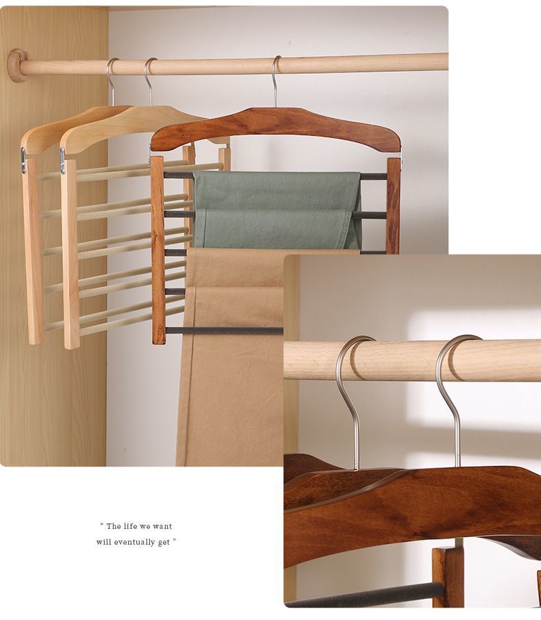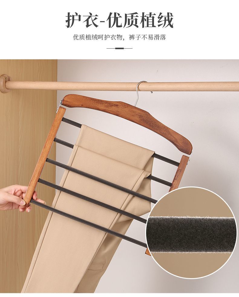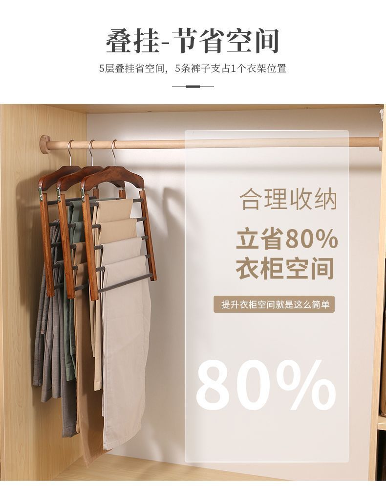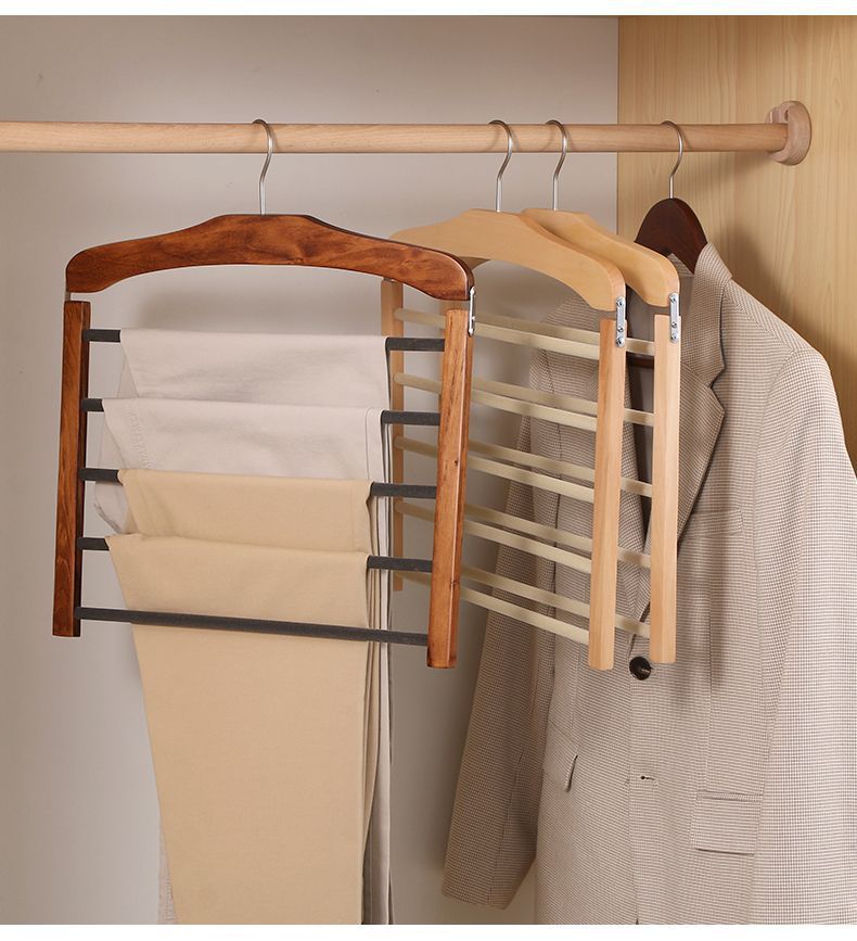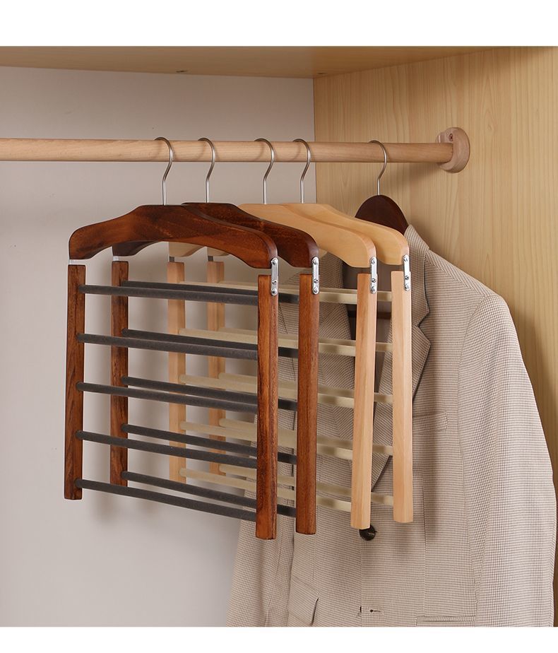 단단한 나무 잠금 바지 랙 5 층 다기능 접는 바지 걸이 가정용 다층 바지 옷걸이 옷장 보관 인공물