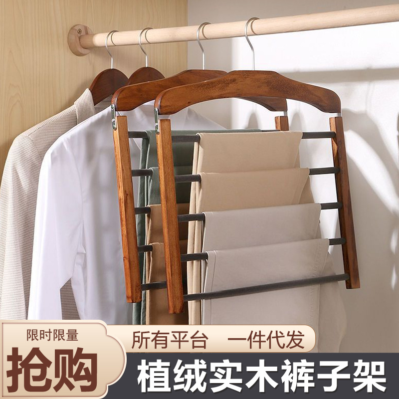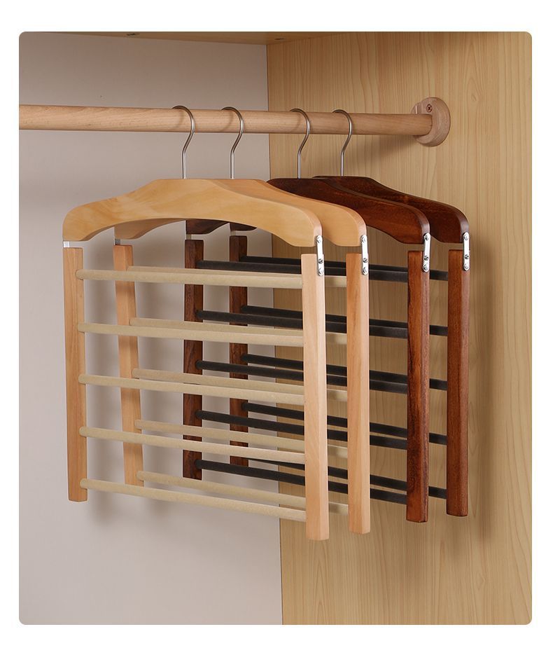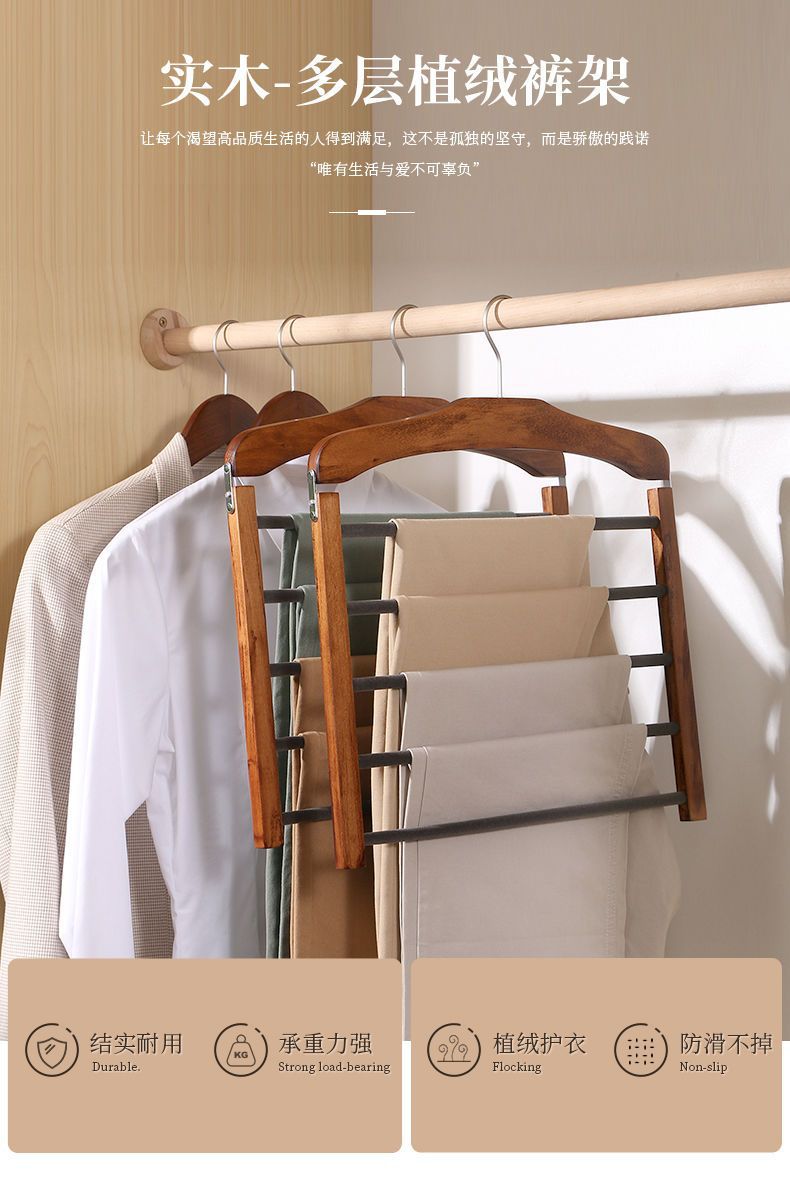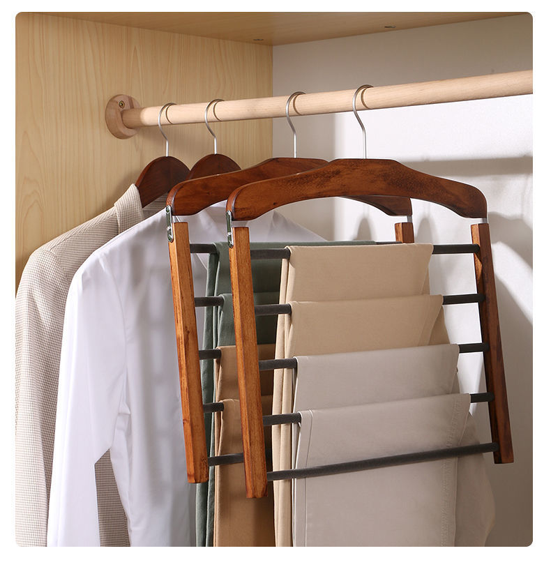 단단한 나무 잠금 바지 랙 5 층 다기능 접는 바지 걸이 가정용 다층 바지 옷걸이 옷장 보관 인공물