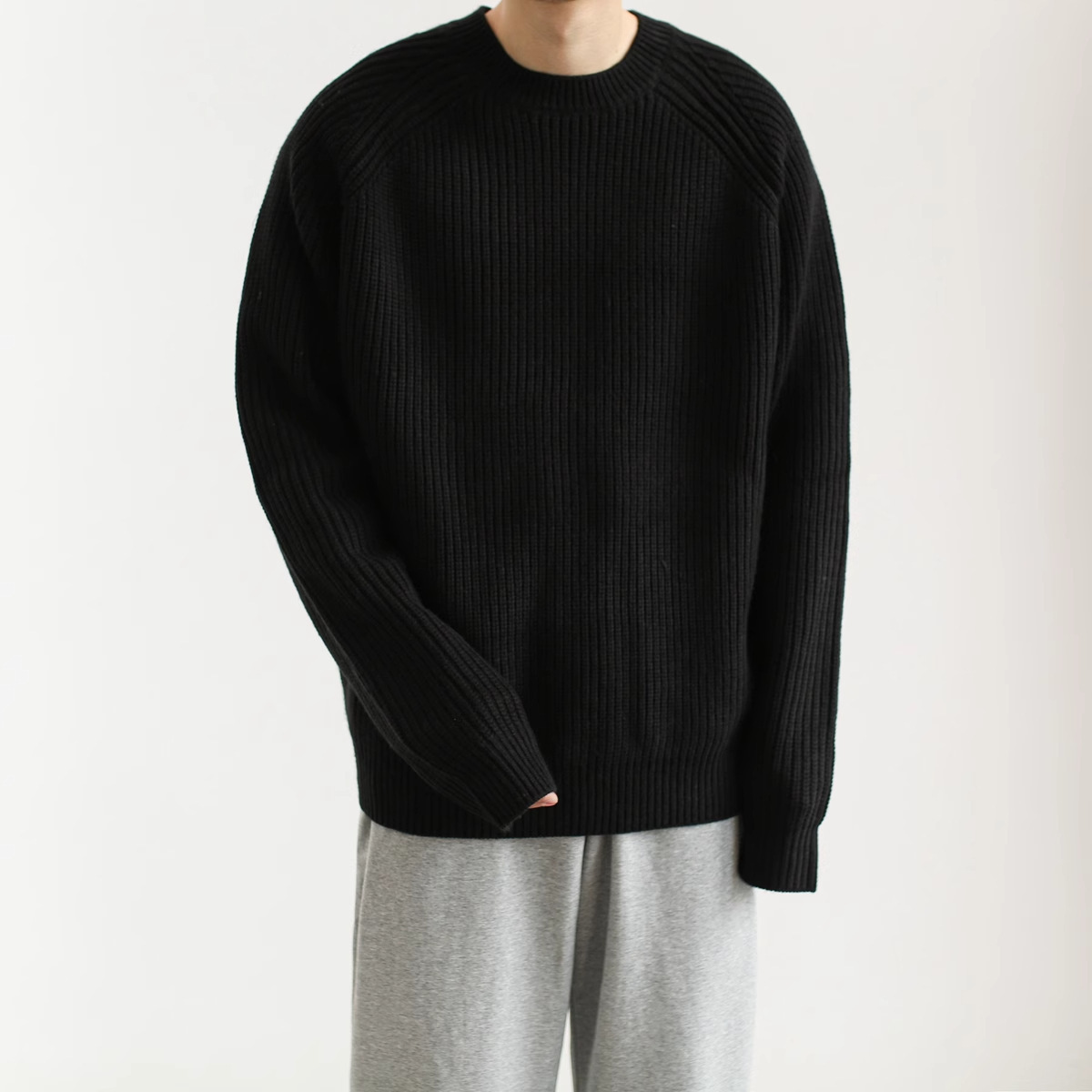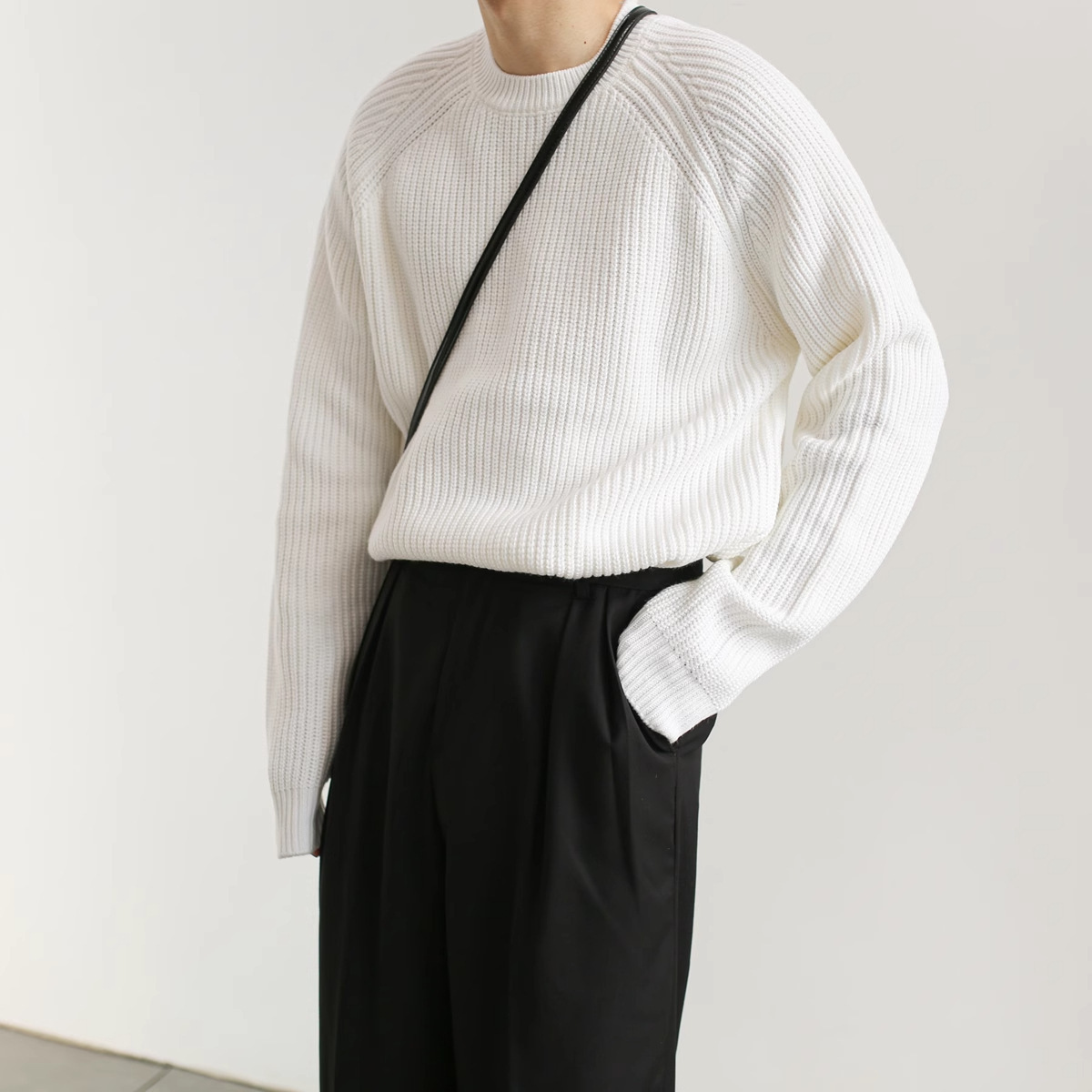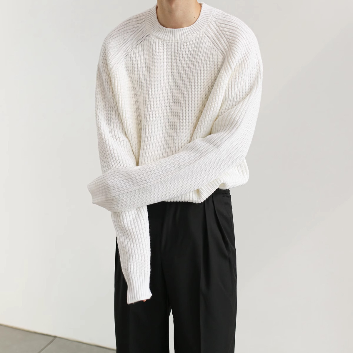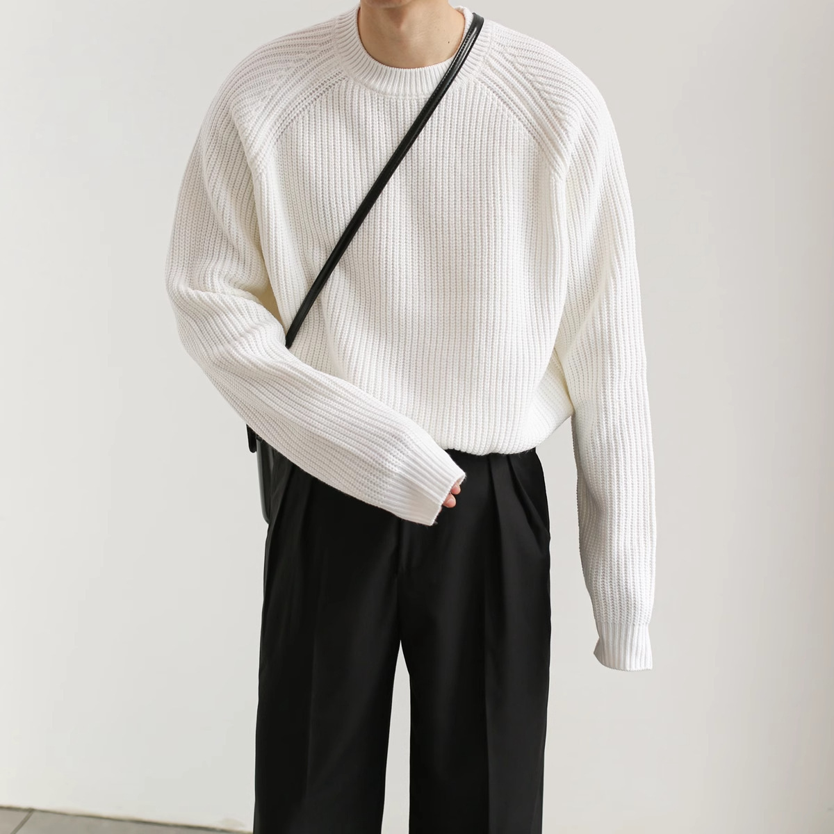 韩版简约百搭圆领廓形毛衣男秋新款纯色休闲打底针织衫套头线衣潮