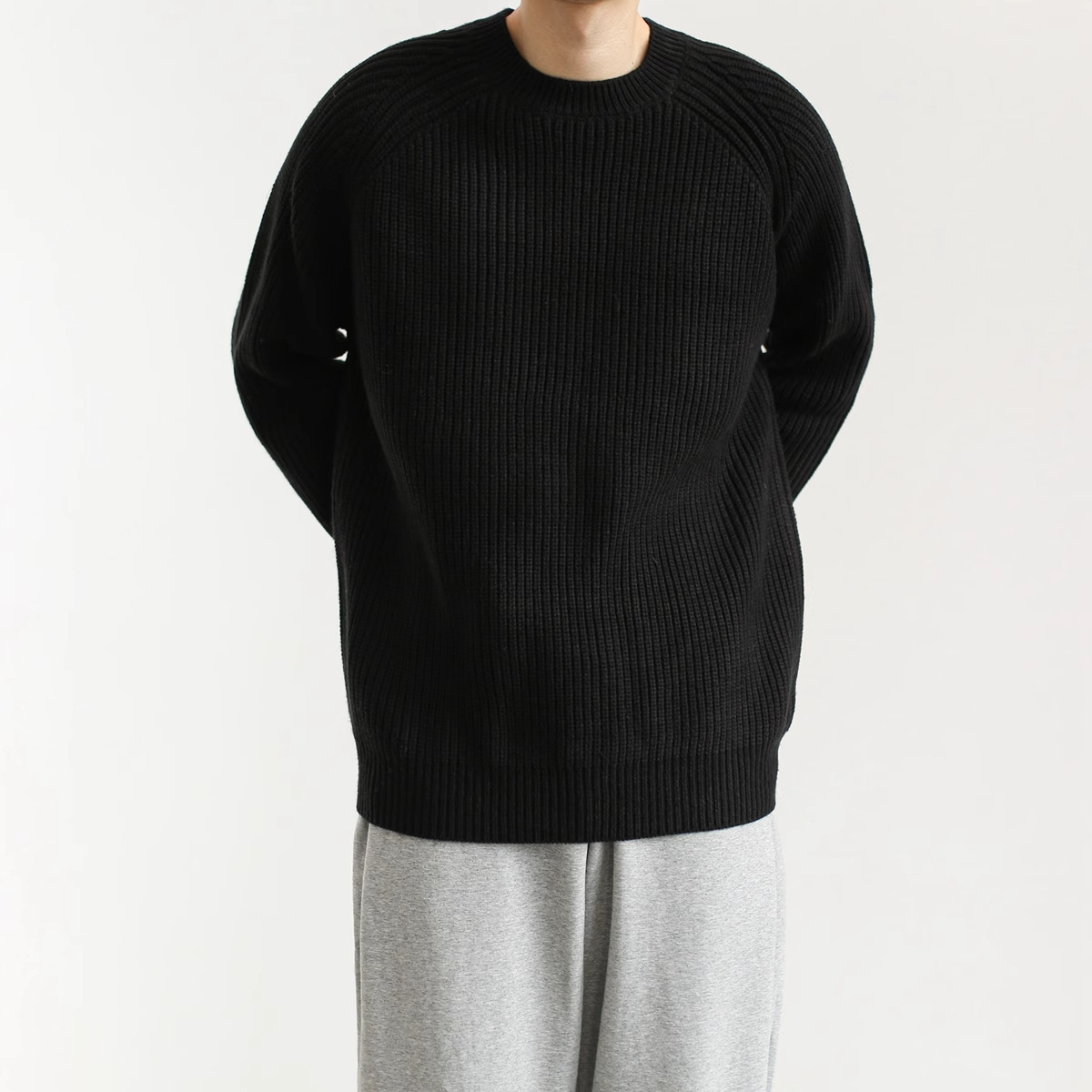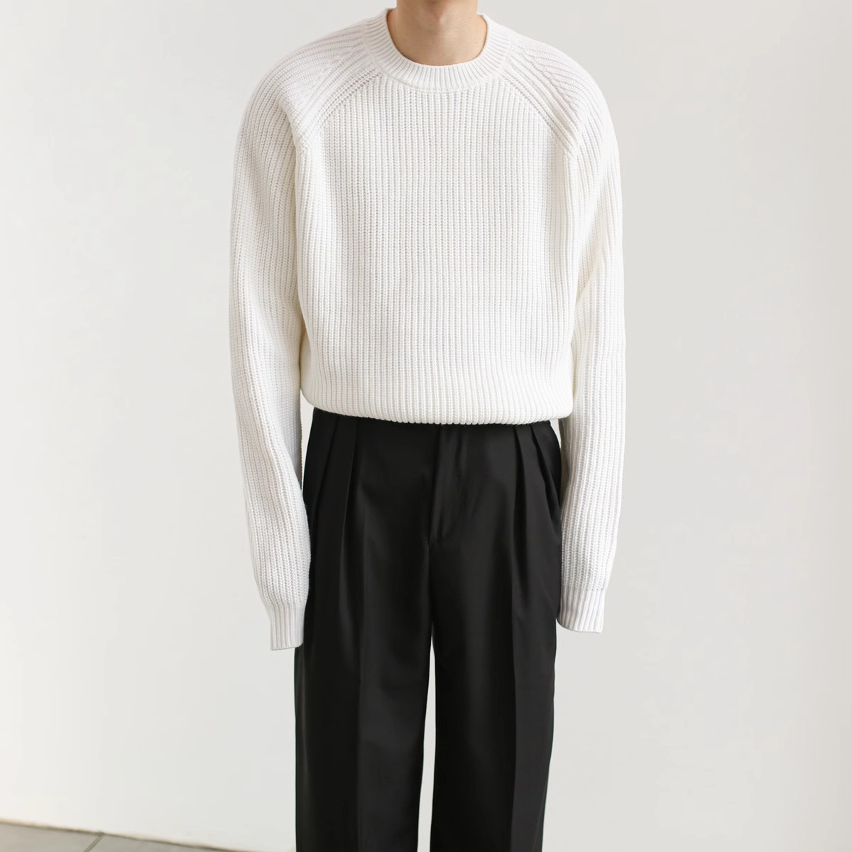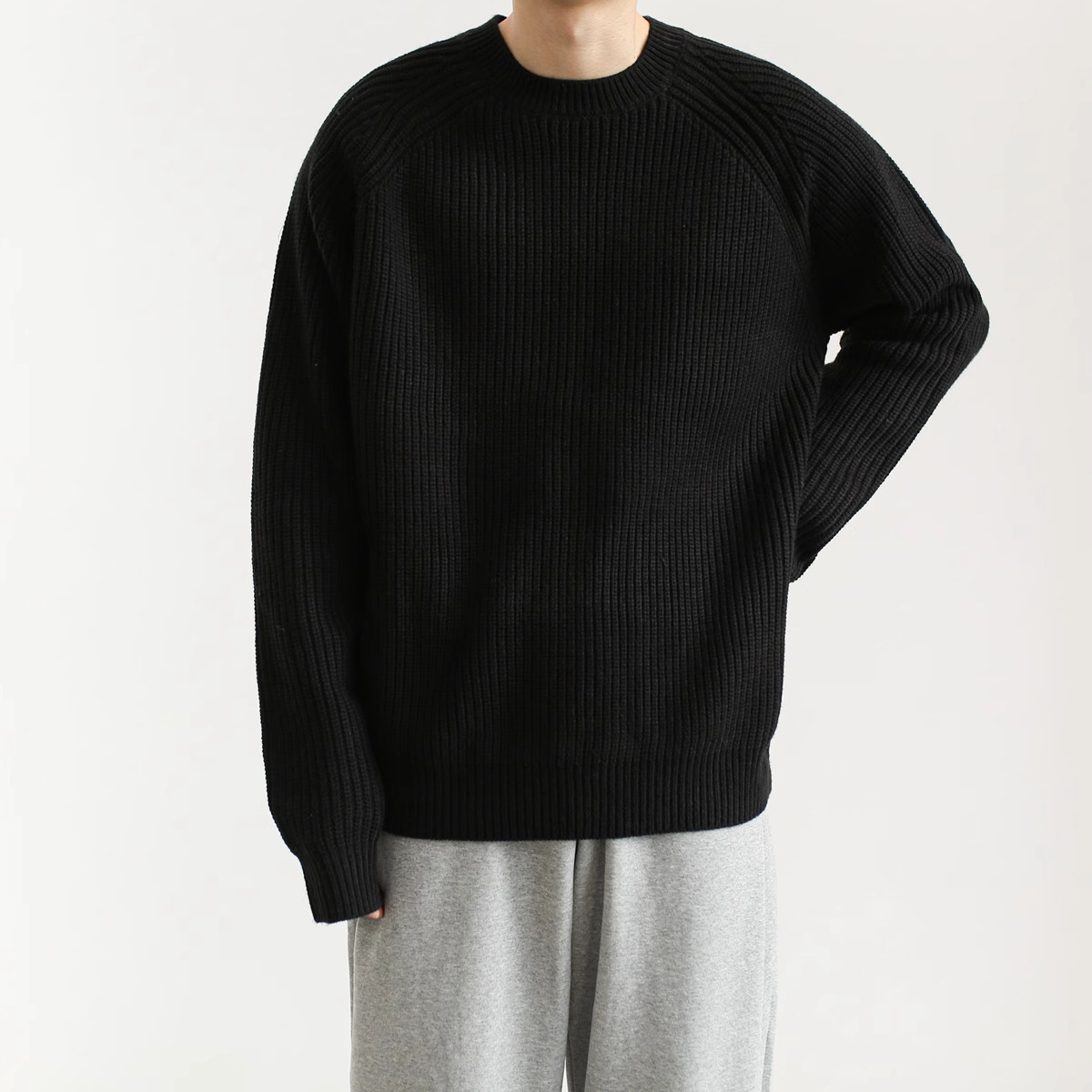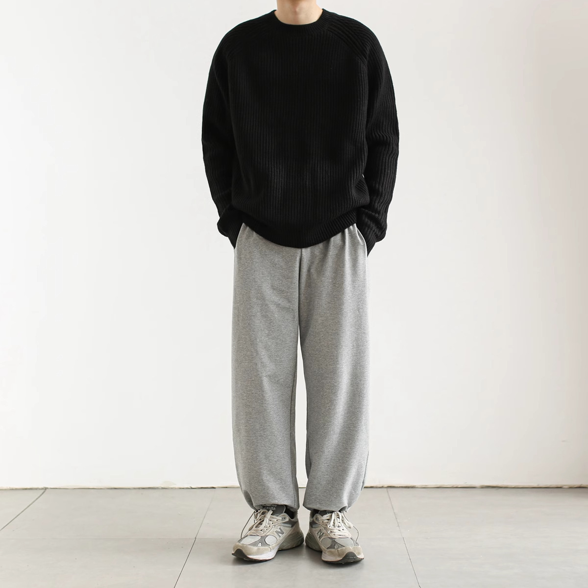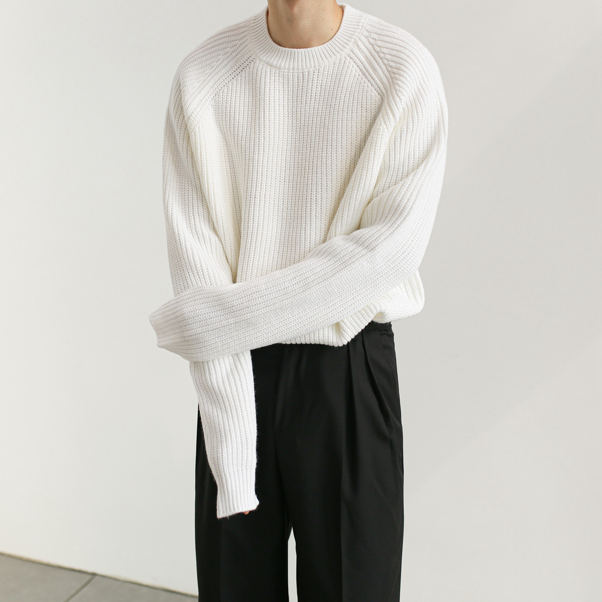 韩版简约百搭圆领廓形毛衣男秋新款纯色休闲打底针织衫套头线衣潮