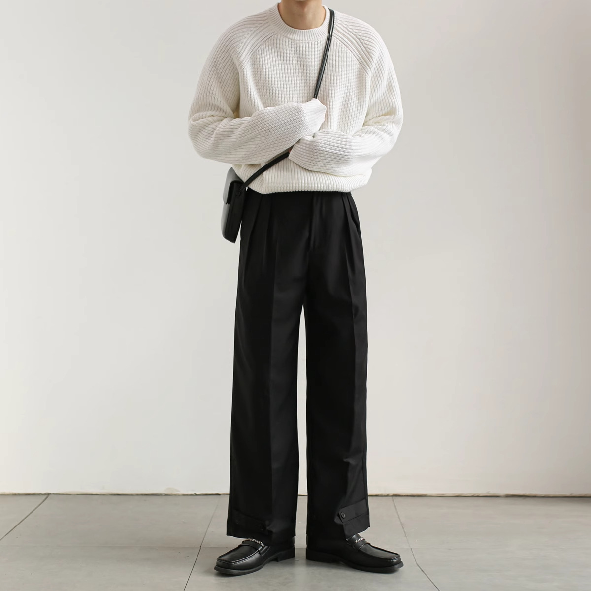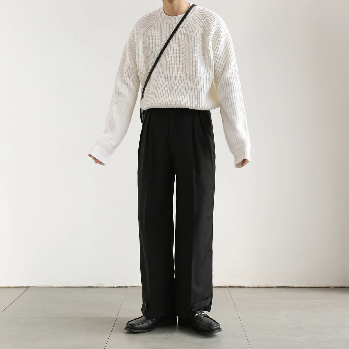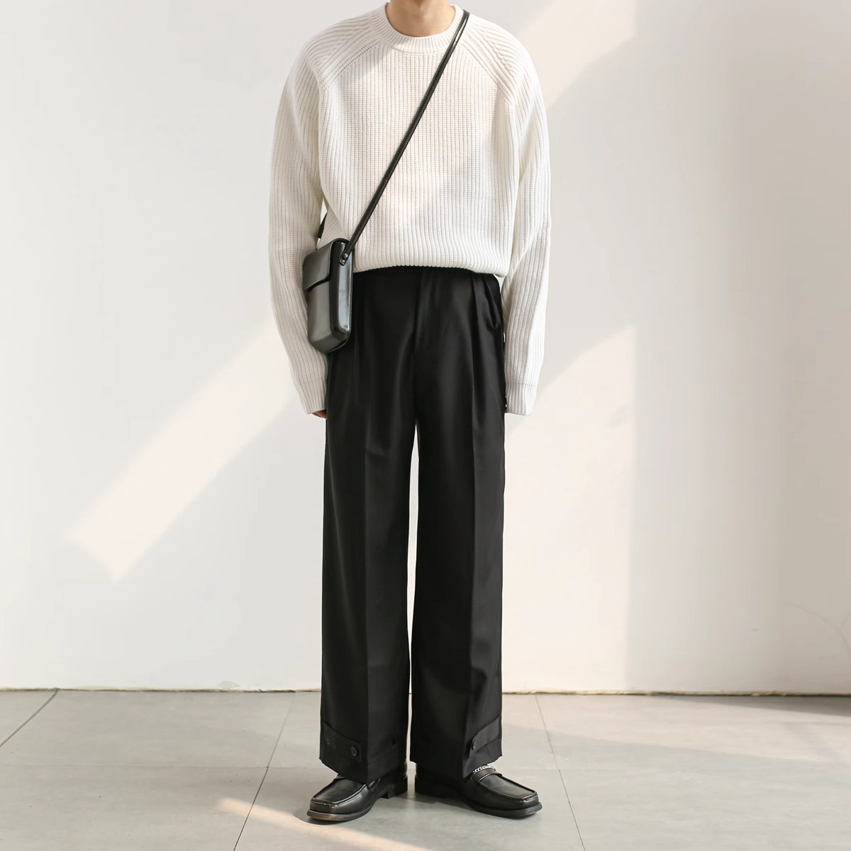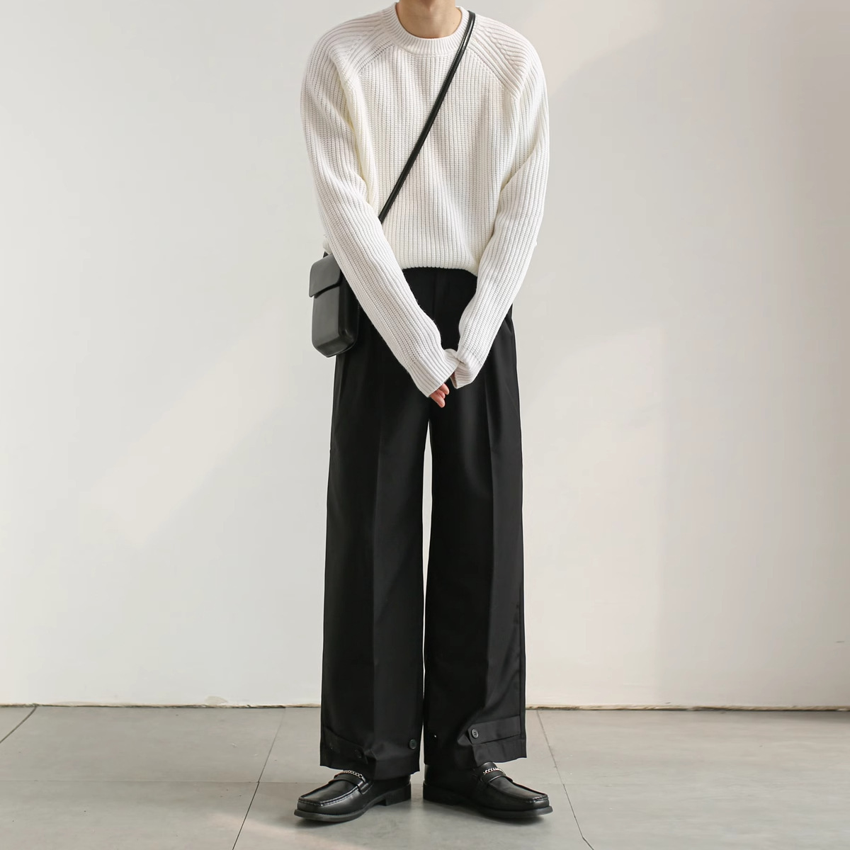 韩版简约百搭圆领廓形毛衣男秋新款纯色休闲打底针织衫套头线衣潮