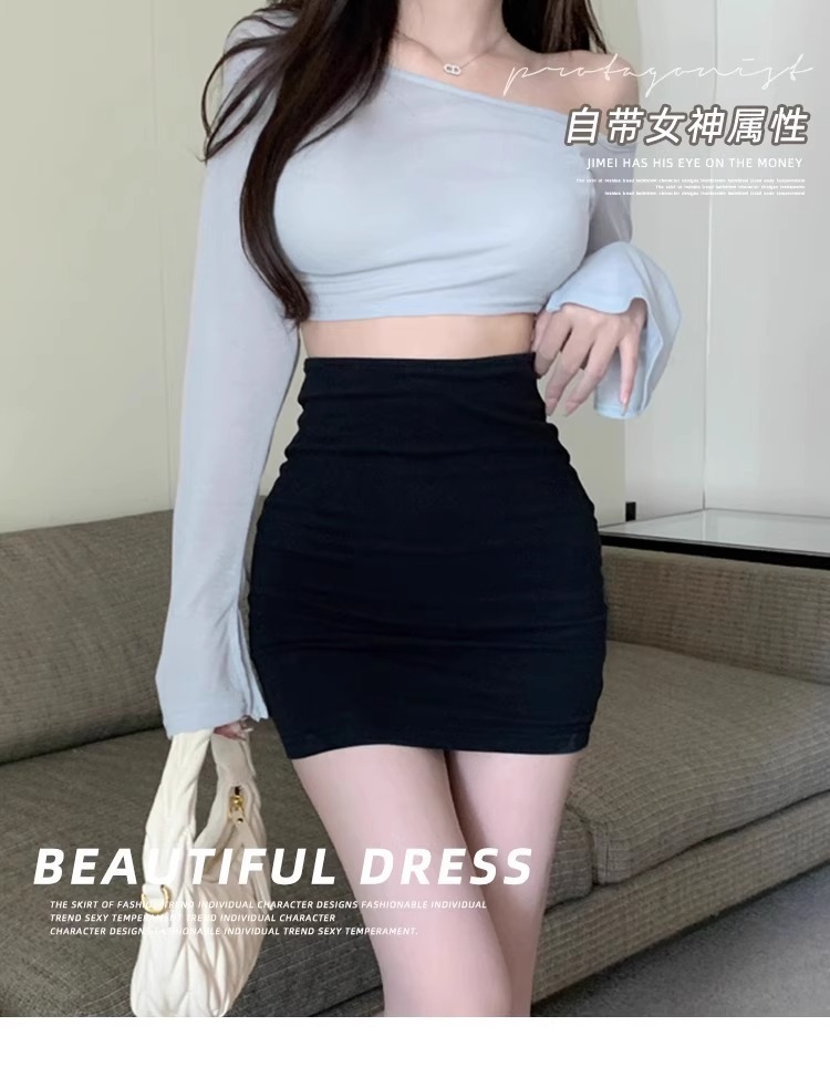 헵번 스타일 스커트 여성의 2024 봄 새로운 높은 허리 슬림 타이트 A 라인 블랙 순수한 욕망 스타일 힙합 스커트