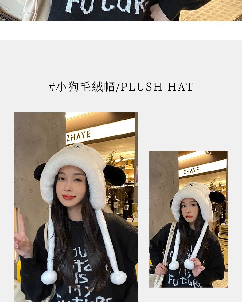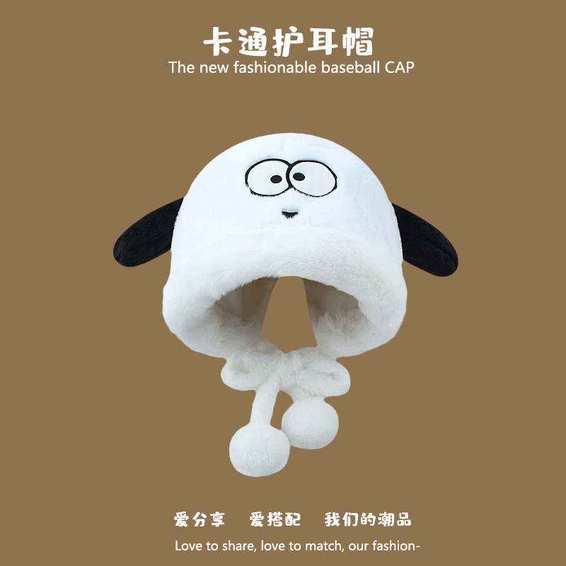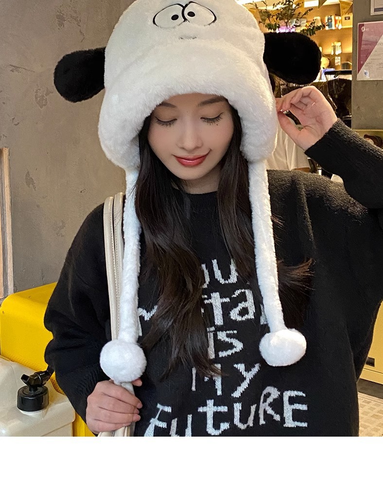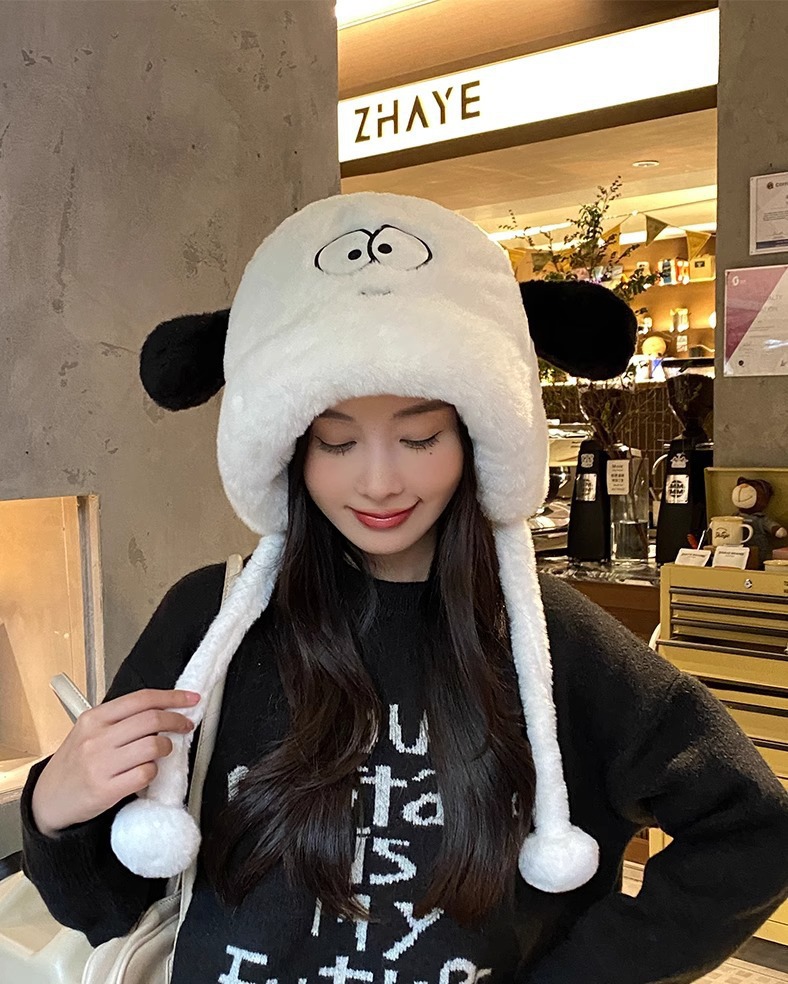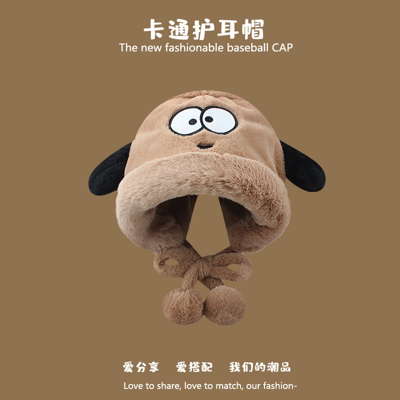 귀여운 만화 강아지 봉제 겨울 모자 따뜻한 올매치 두꺼운 스카프 여성 사이클링 냉랭한 귀 보호 레이 펑 모자스토어 가기