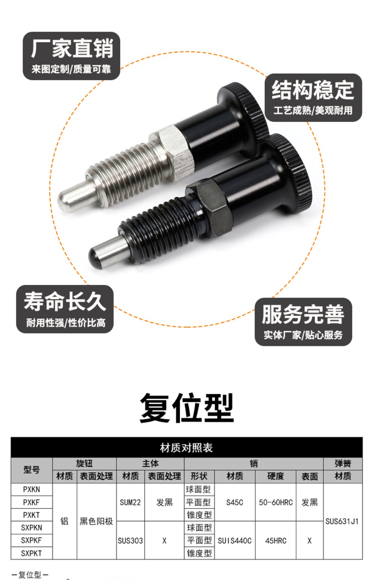 노브 플런저 자체 잠금 재설정 텔레스코픽 인덱싱 핀 스프링 포지셔닝 핀 SXYKN/PXYKN/SXPKN/PXKN