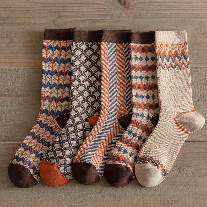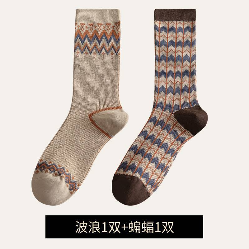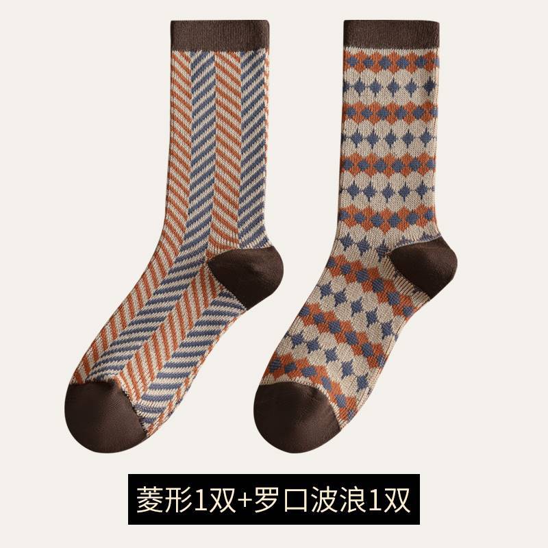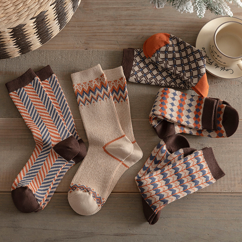 Daifa 양말 여성의 가을 및 겨울 더블 바늘 더블 웨이 스타킹 무선 헤드 여성 스타킹 두꺼운 따뜻한 Maillard 컬러 스택 스타킹