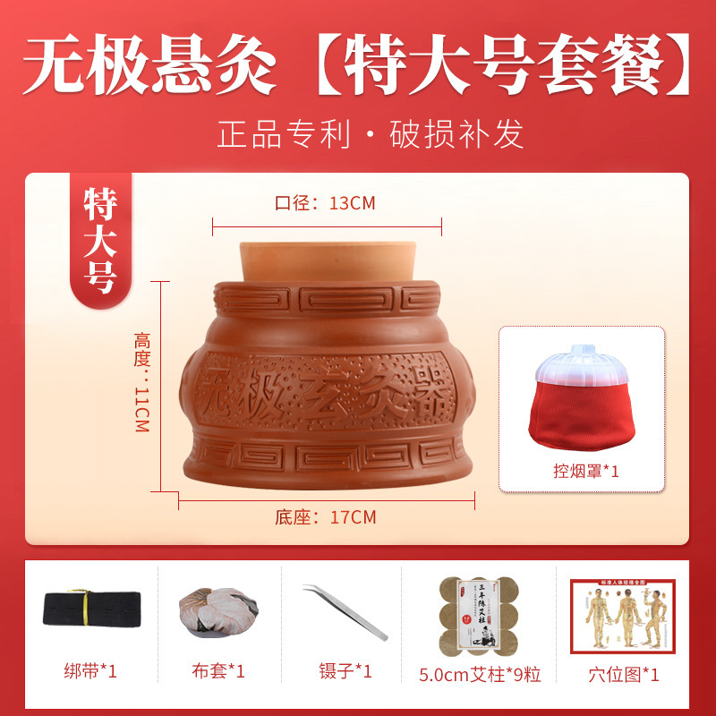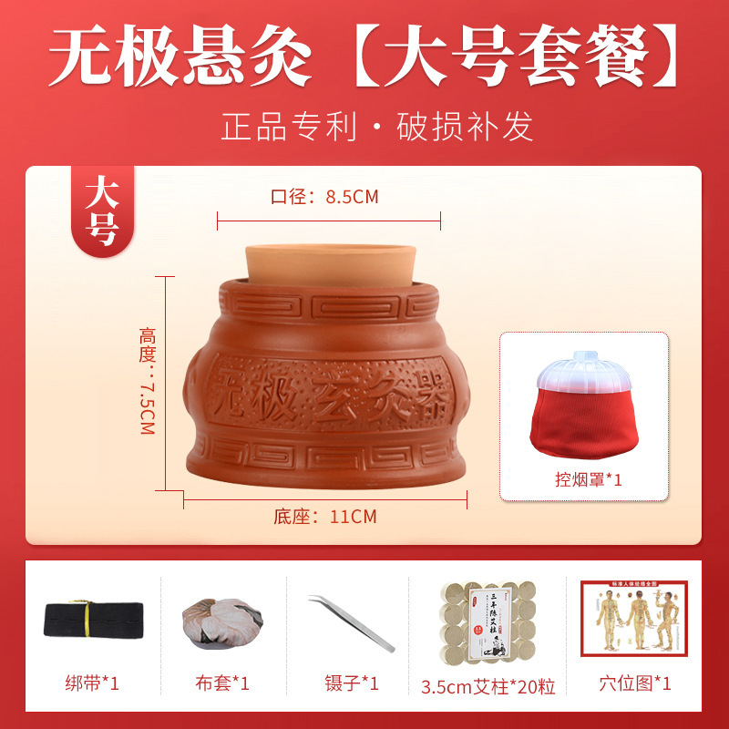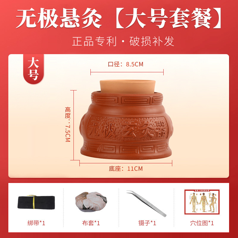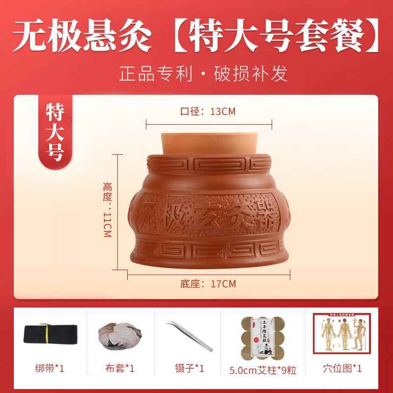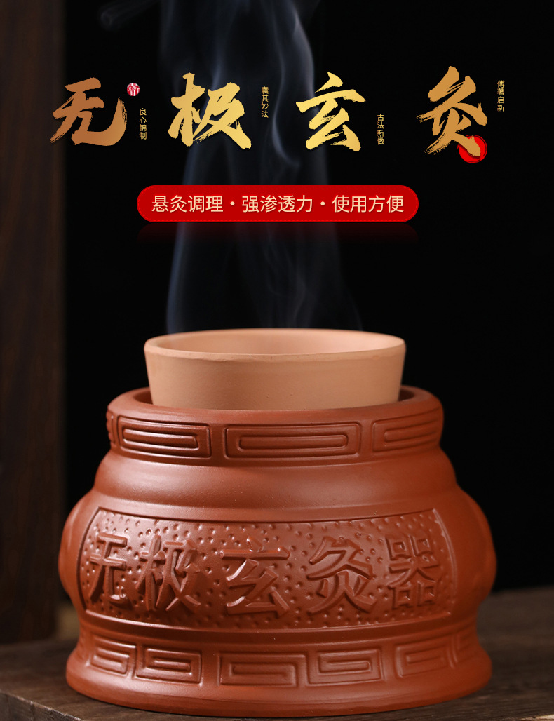 Wuji Xuan Moxibustion Pot 따뜻한 Moxibusion 일시 중단 된 Moxibustion 가정용 작은 어린이 Umbilical Moxibustion Apparatus God Moxibustion Purple Sand 세라믹 Yin 및 Yang Pot Moxibustion Pot스토어 가기