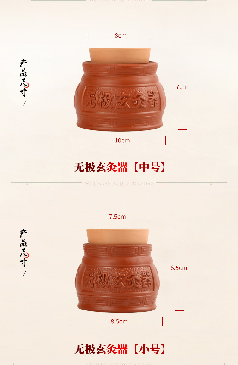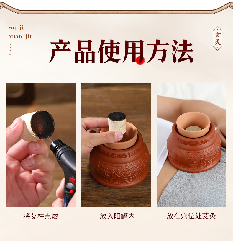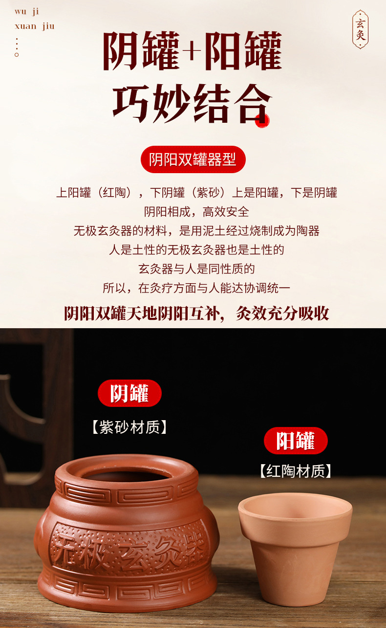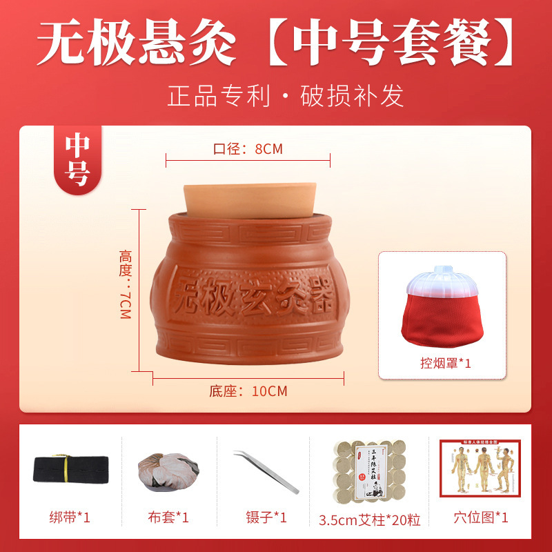 Wuji Xuan Moxibustion Pot 따뜻한 Moxibusion 일시 중단 된 Moxibustion 가정용 작은 어린이 Umbilical Moxibustion Apparatus God Moxibustion Purple Sand 세라믹 Yin 및 Yang Pot Moxibustion Pot스토어 가기