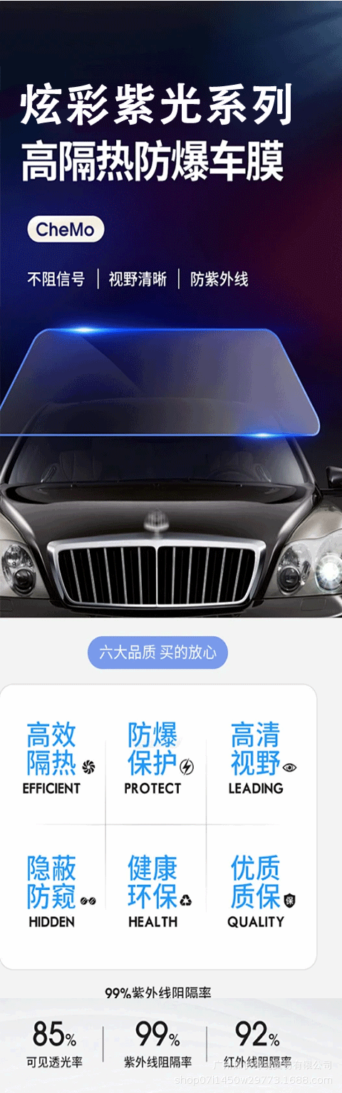 자동차 태양 영화 다채로운 보라색 라이트 블루 악마 지 하이 필름 절연 필름 자외선 차단제 폭발 방지 자동차 공장 도매스토어 가기