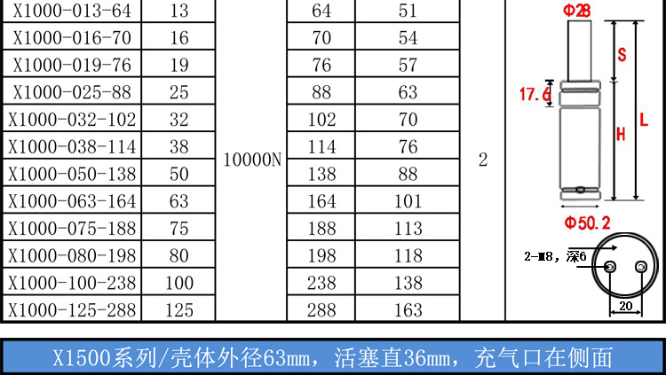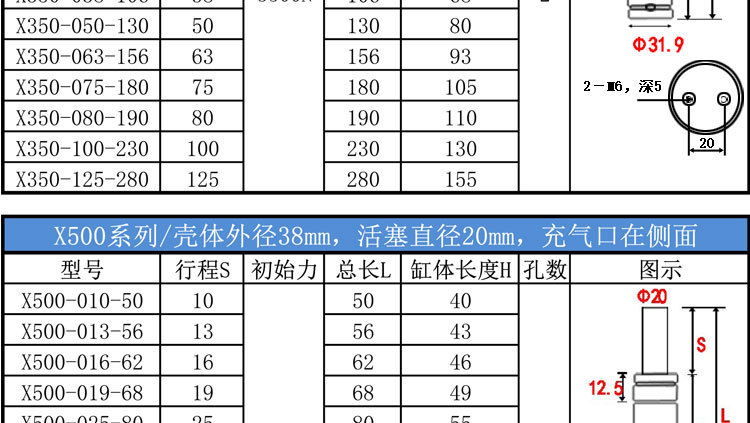 질소 가스 스프링 질소 실린더 금형 질소 가스 스프링 GSV/K/X/U 170 350 320 500 750