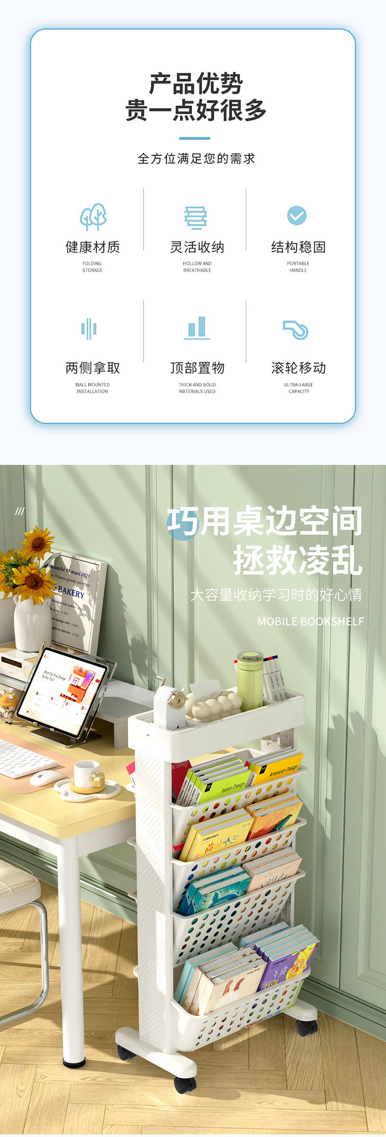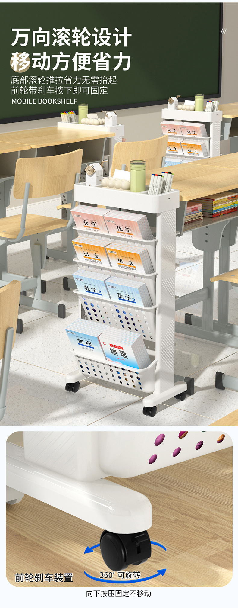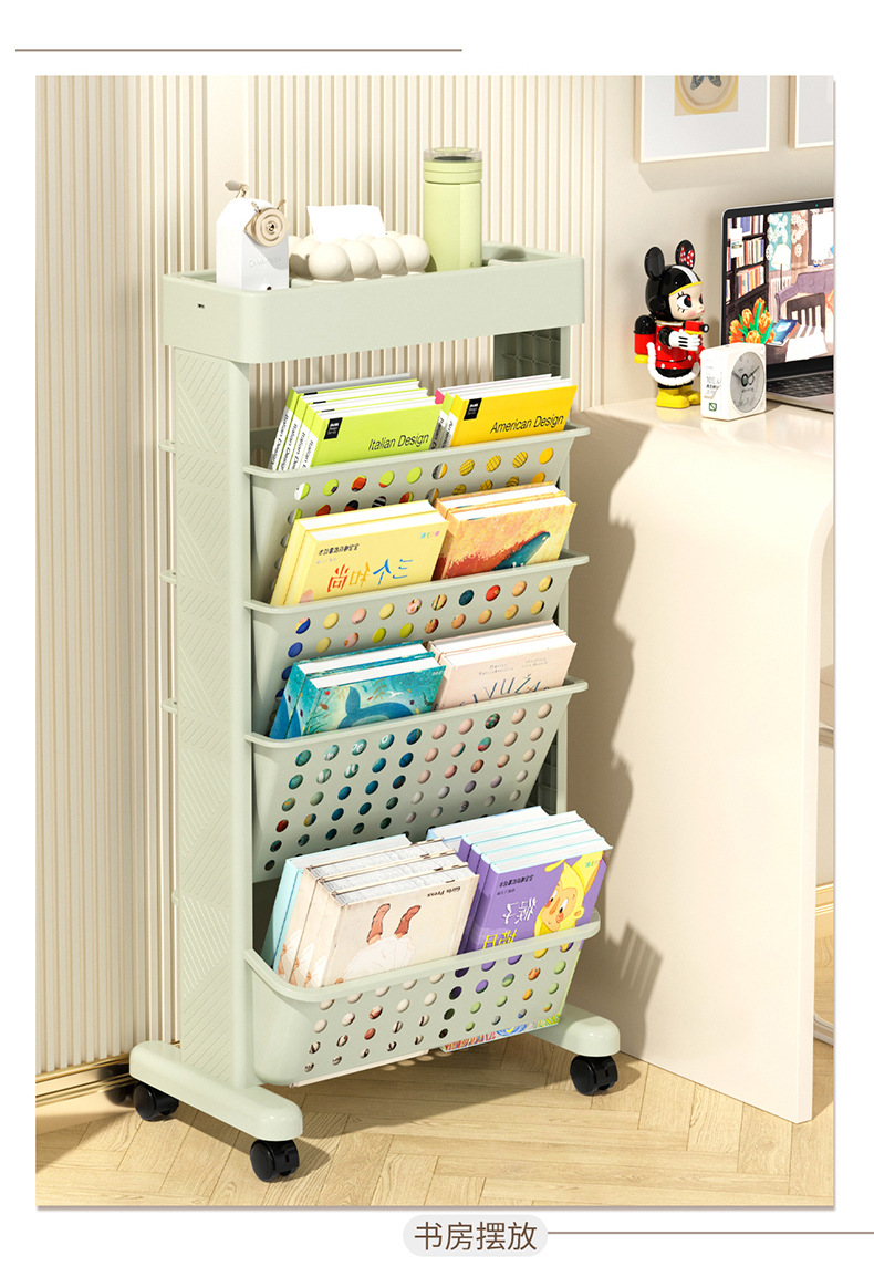 국경 간 이동 가능한 다층 저장 랙 교실 책상 책 배열 랙 좁은 슬릿 랙 매거진 저장 책장스토어 가기