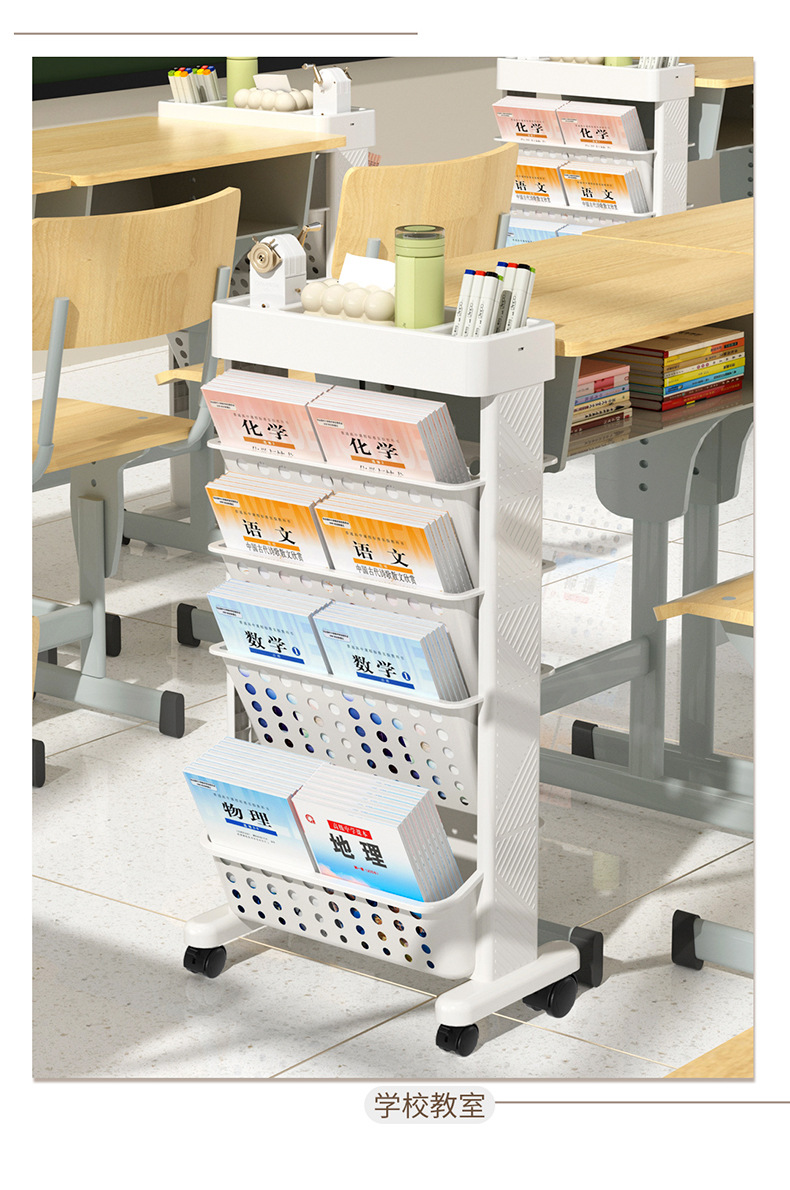 국경 간 이동 가능한 다층 저장 랙 교실 책상 책 배열 랙 좁은 슬릿 랙 매거진 저장 책장