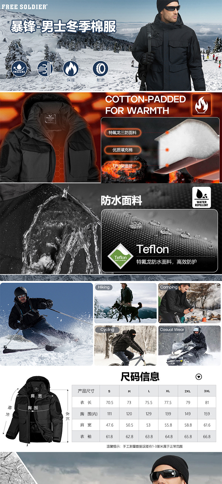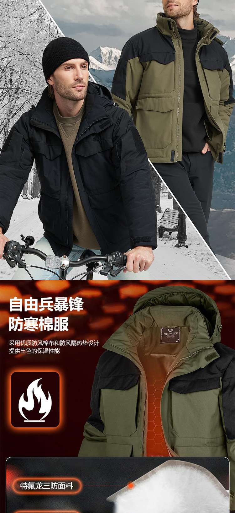 프리바이더 신상품 가을 겨울 남성용 아웃도어 면 재킷 후드 방한 방수 스키복