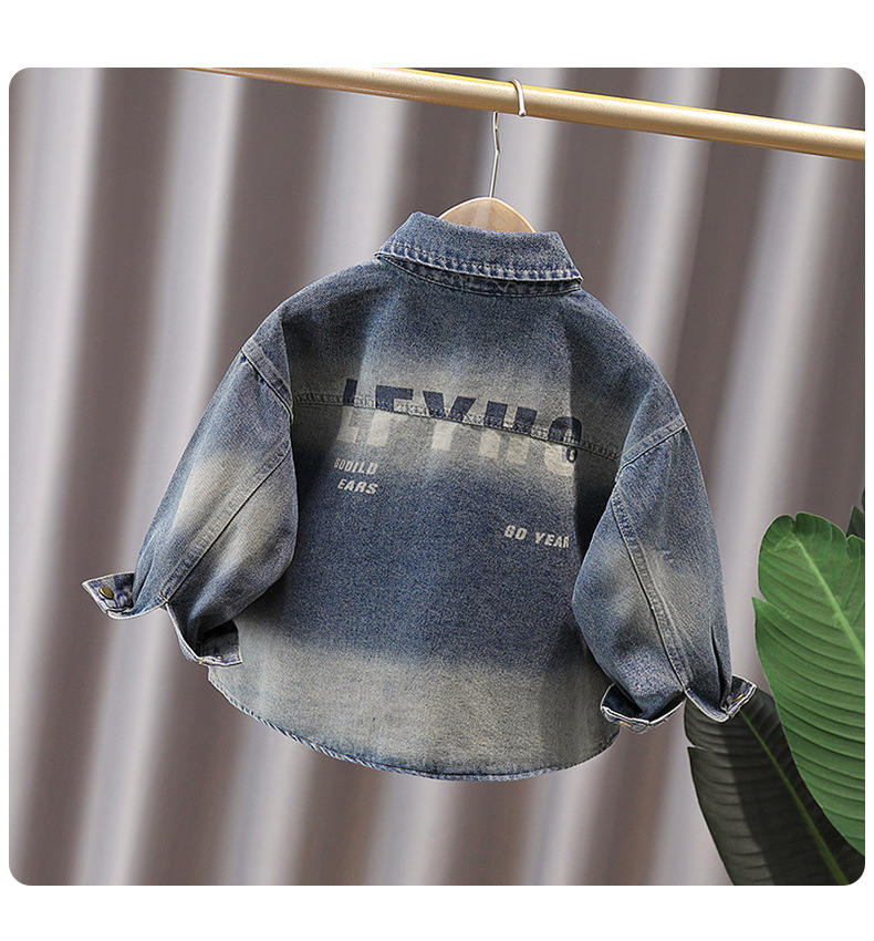 소년 데님 셔츠 코트 2024 새로운 스티칭 유미 잘 생긴 서양식 어린이 자켓 아기 소년 한국 스타일