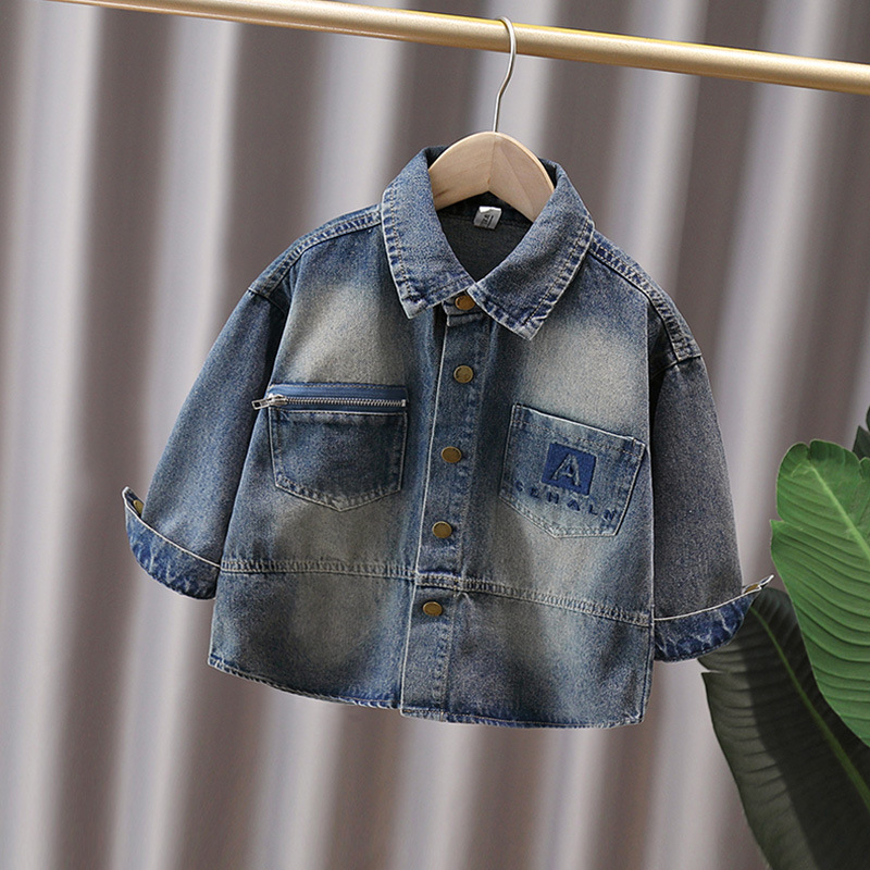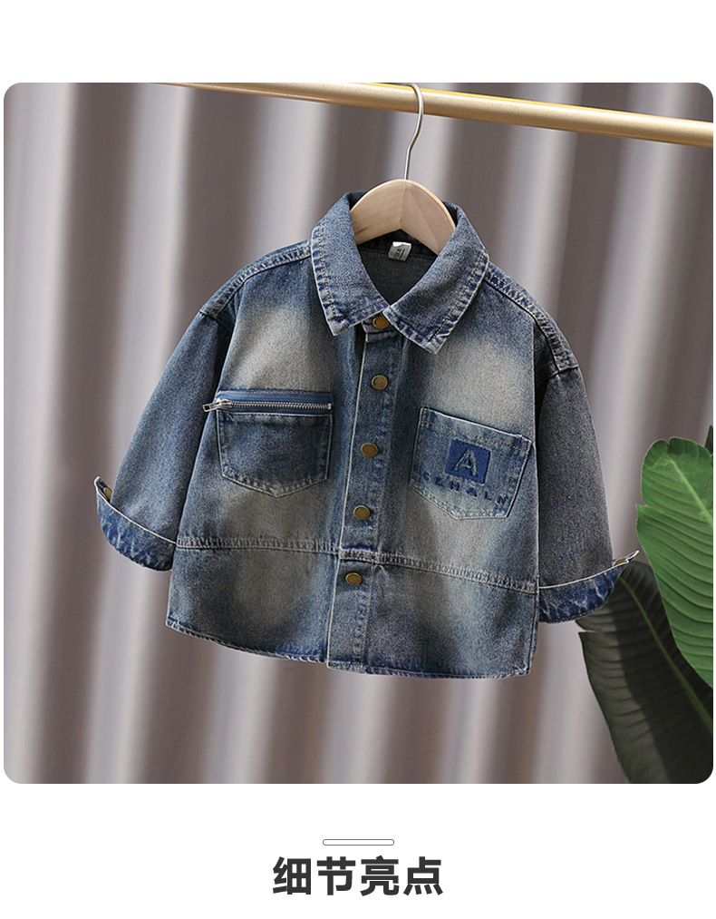 소년 데님 셔츠 코트 2024 새로운 스티칭 유미 잘 생긴 서양식 어린이 자켓 아기 소년 한국 스타일스토어 가기