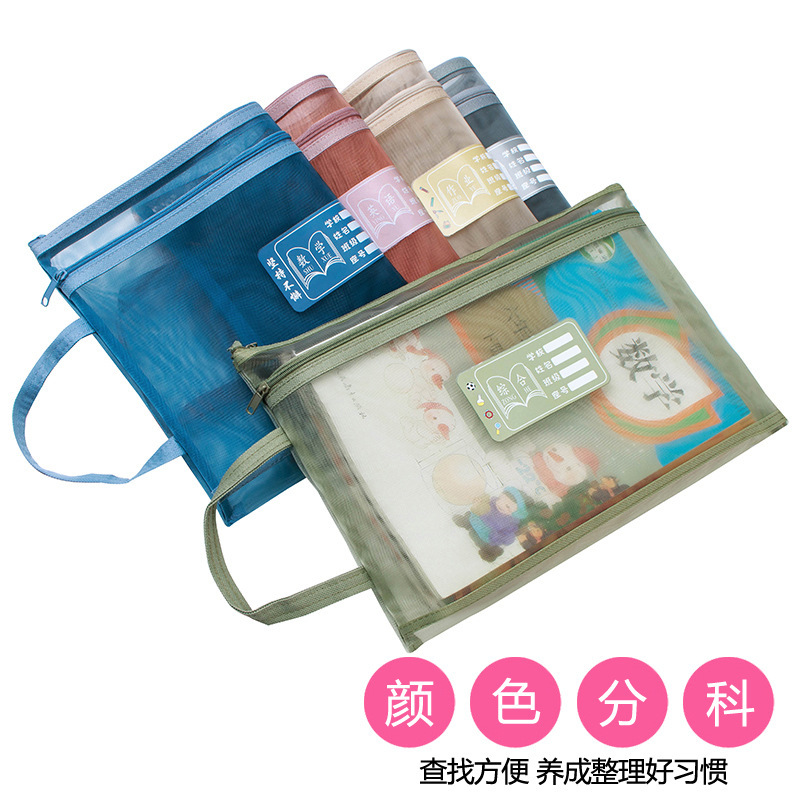 A4 Morandi 투명 메쉬 학생 주제 분류 파일 가방 투명 휴대용 지퍼 보관 가방