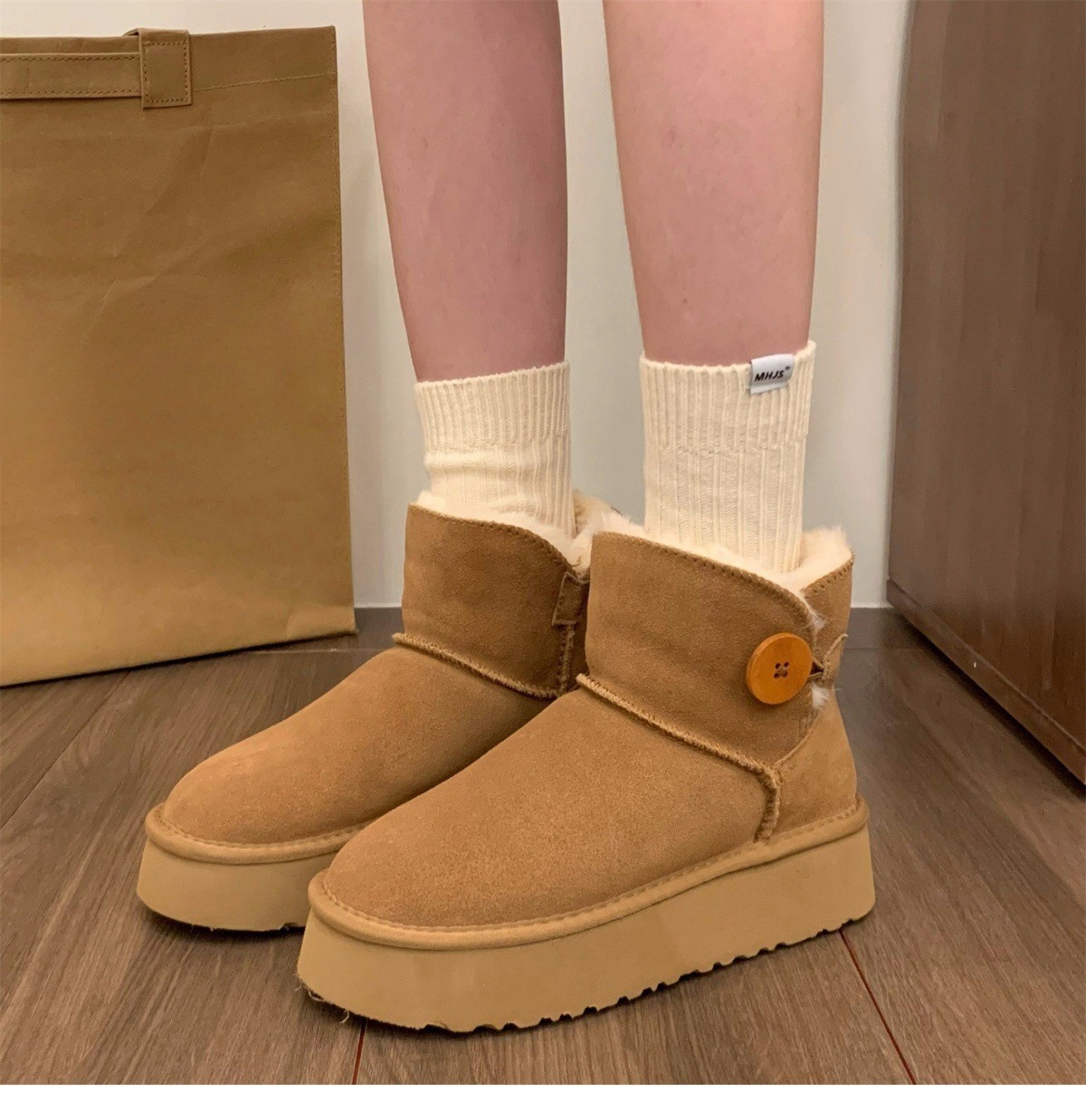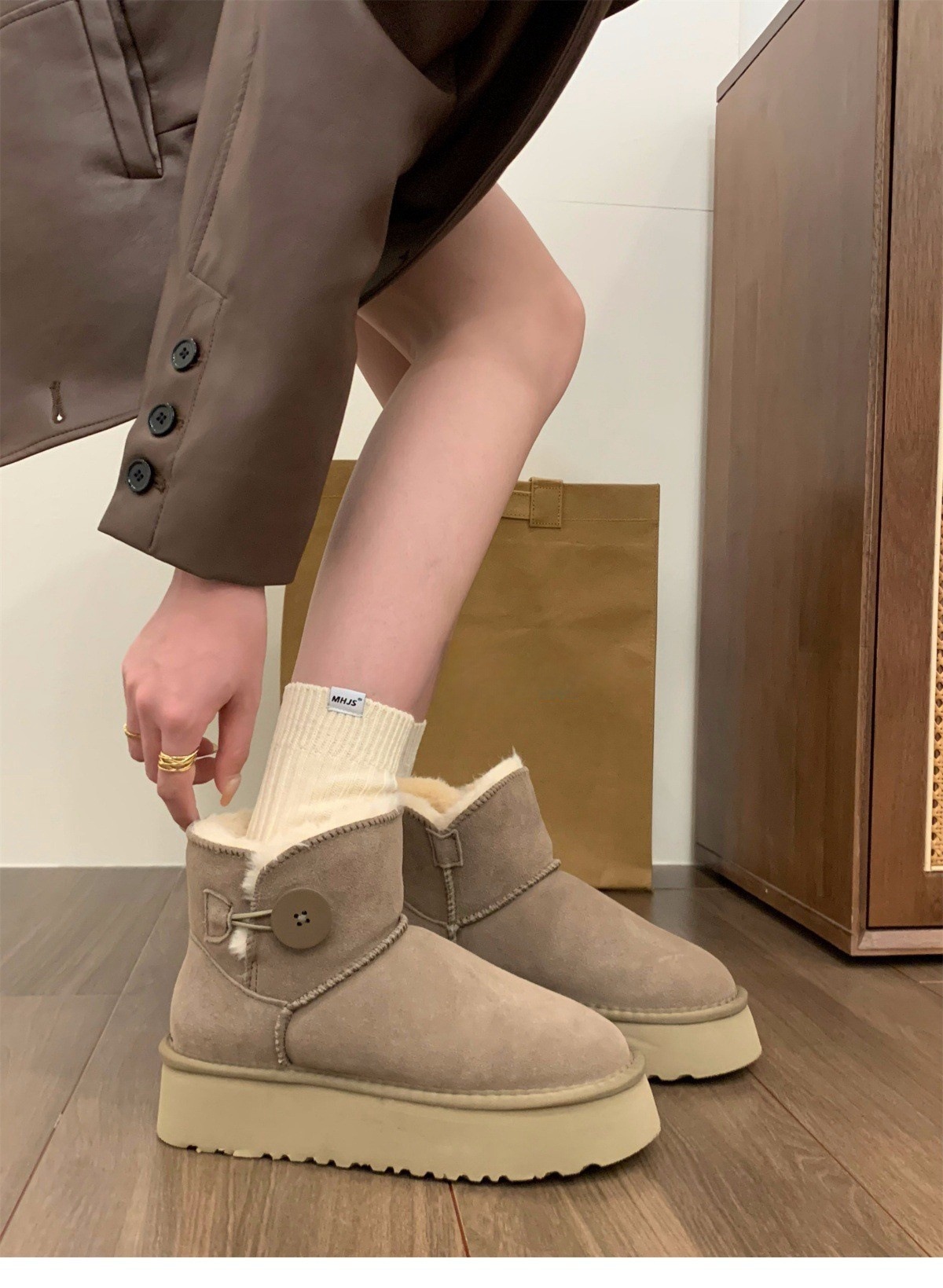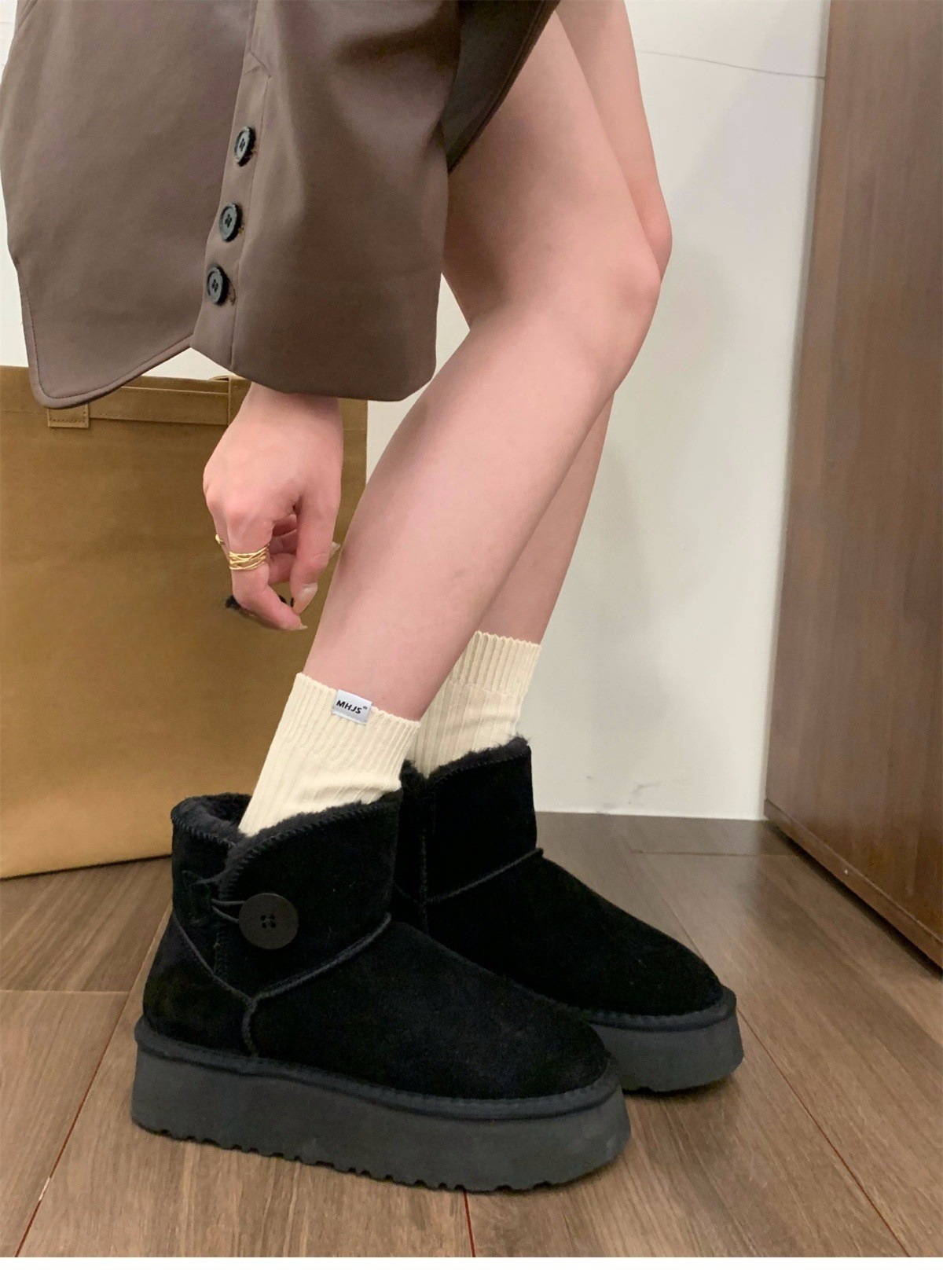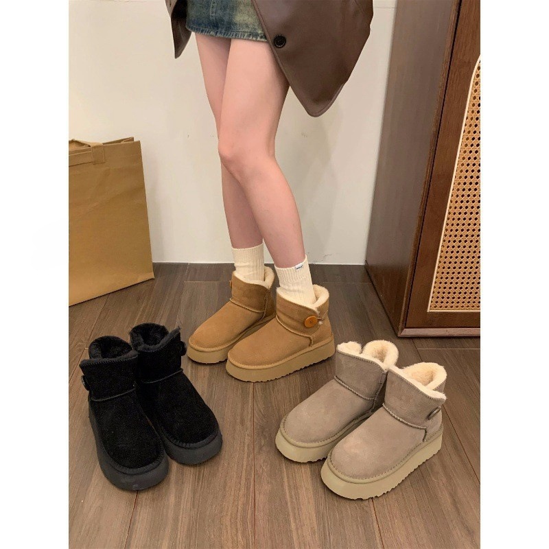 두꺼운 밑창 스노우 부츠 여성 신발 2024 새로운 겨울 기모 두꺼운 스노우 코튼 신발 짧은 부츠 코튼 부츠스토어 가기