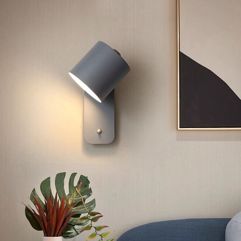 북유럽 침실 침실 램프 연구 레스토랑 멀리 벽 램프 스위치 마카롱 LED 간단한 장식 벽 램프