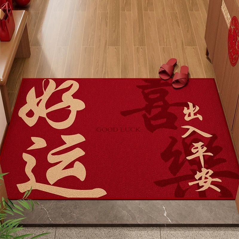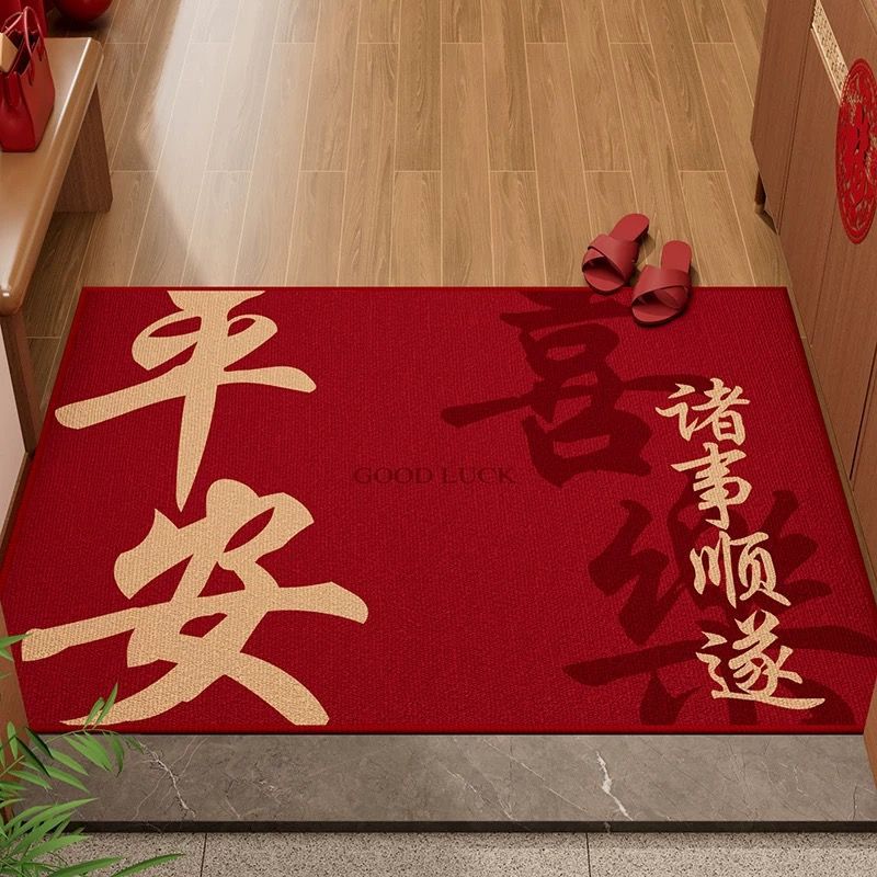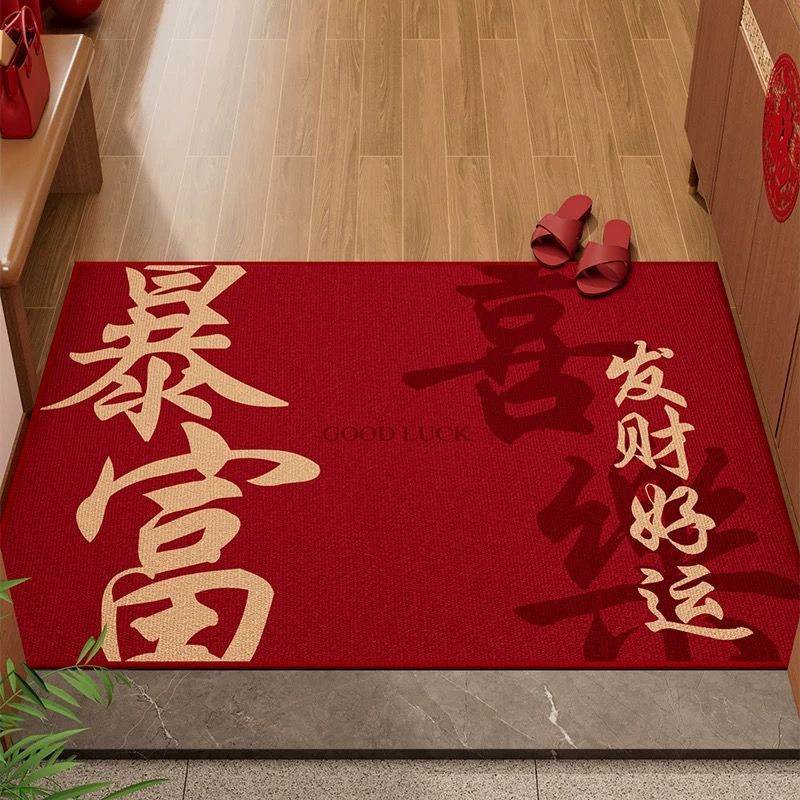 입구 매트 레드 축제 입구 및 안전한 입구 매트 입구 미끄럼 방지 크리스탈 벨벳 매트스토어 가기