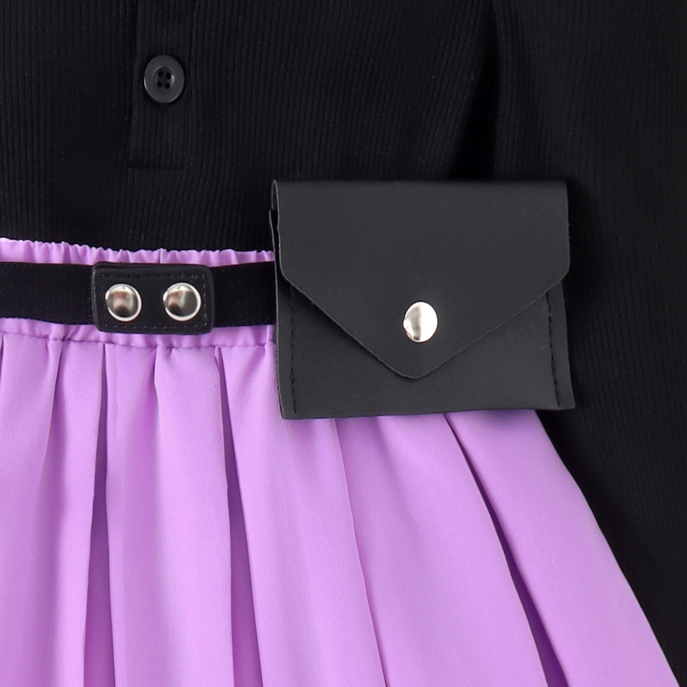 해외 무역 국경 유럽 및 미국 봄과 가을 소녀 세트 단색 옷깃 긴 소매 주름 치마 허리 가방 3 피스 아동복 도매스토어 가기
