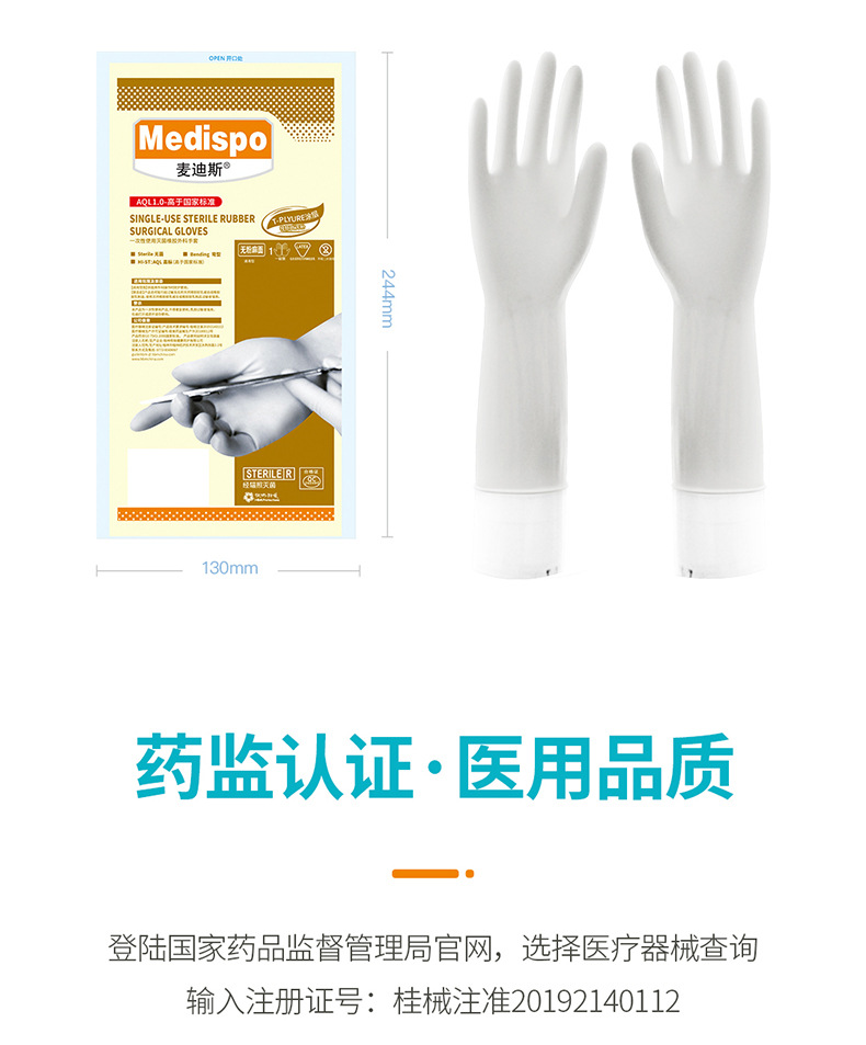 Medis 일회용 의료 외과 장갑 분말 무료 살균 의료 고무 수술 장갑 개별 포장스토어 가기