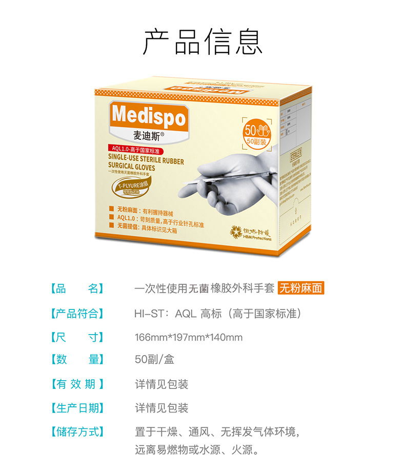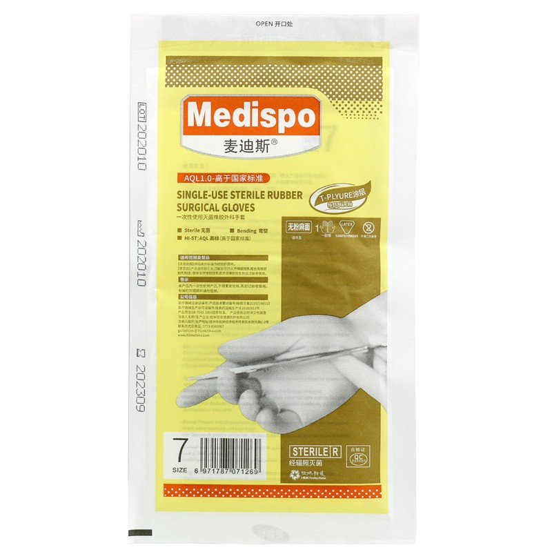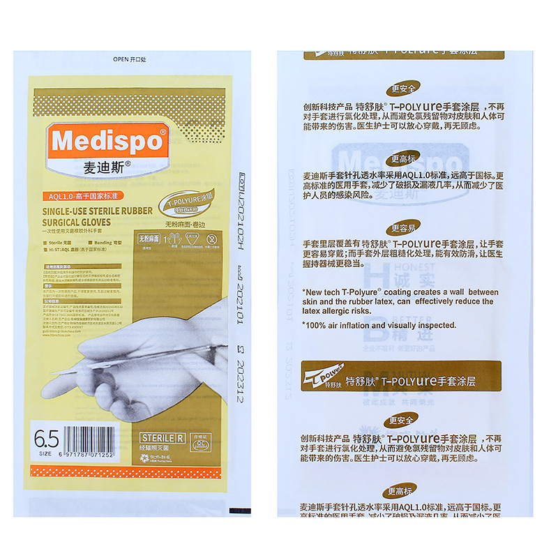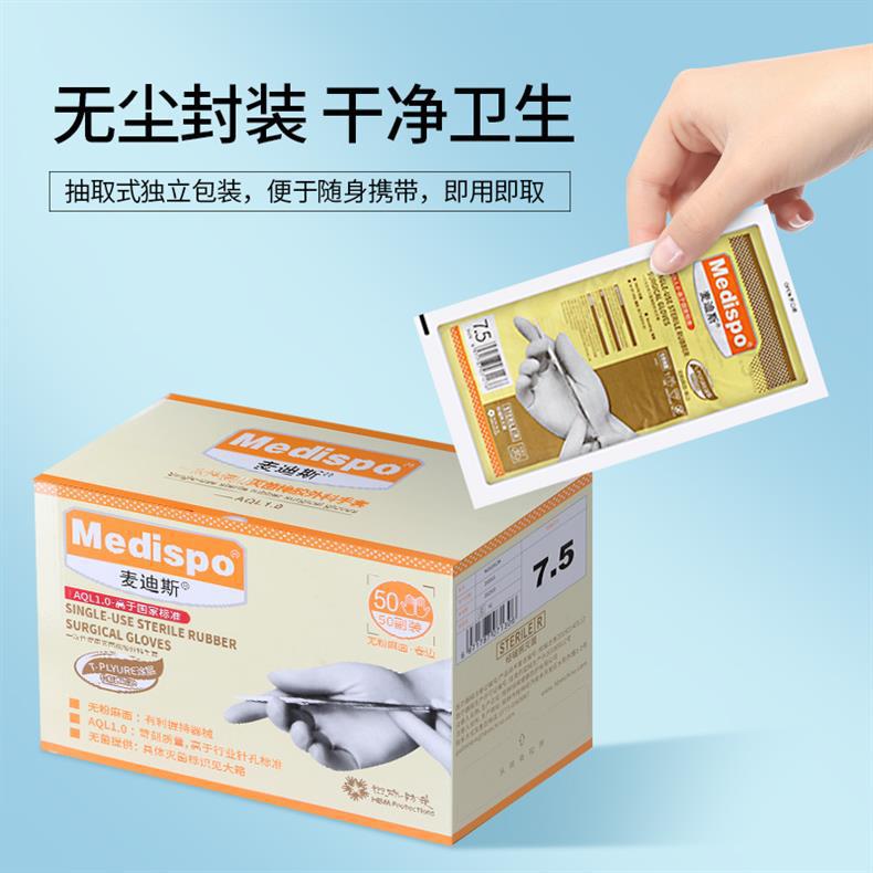 Medis 일회용 의료 외과 장갑 분말 무료 살균 의료 고무 수술 장갑 개별 포장