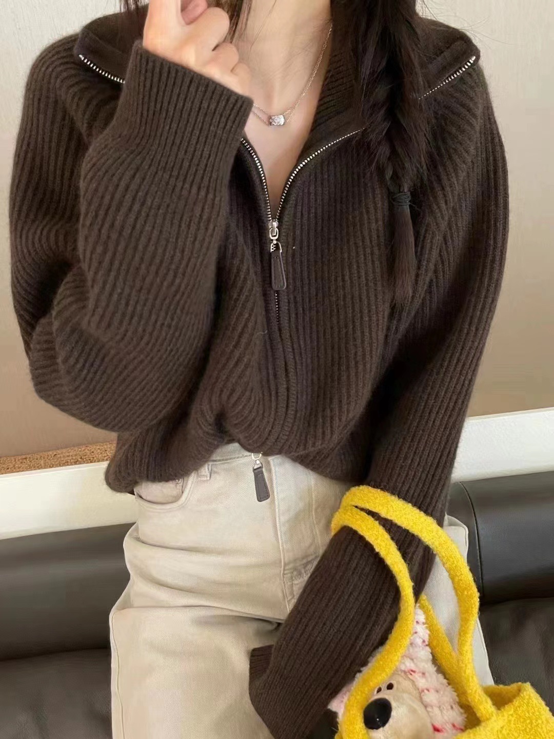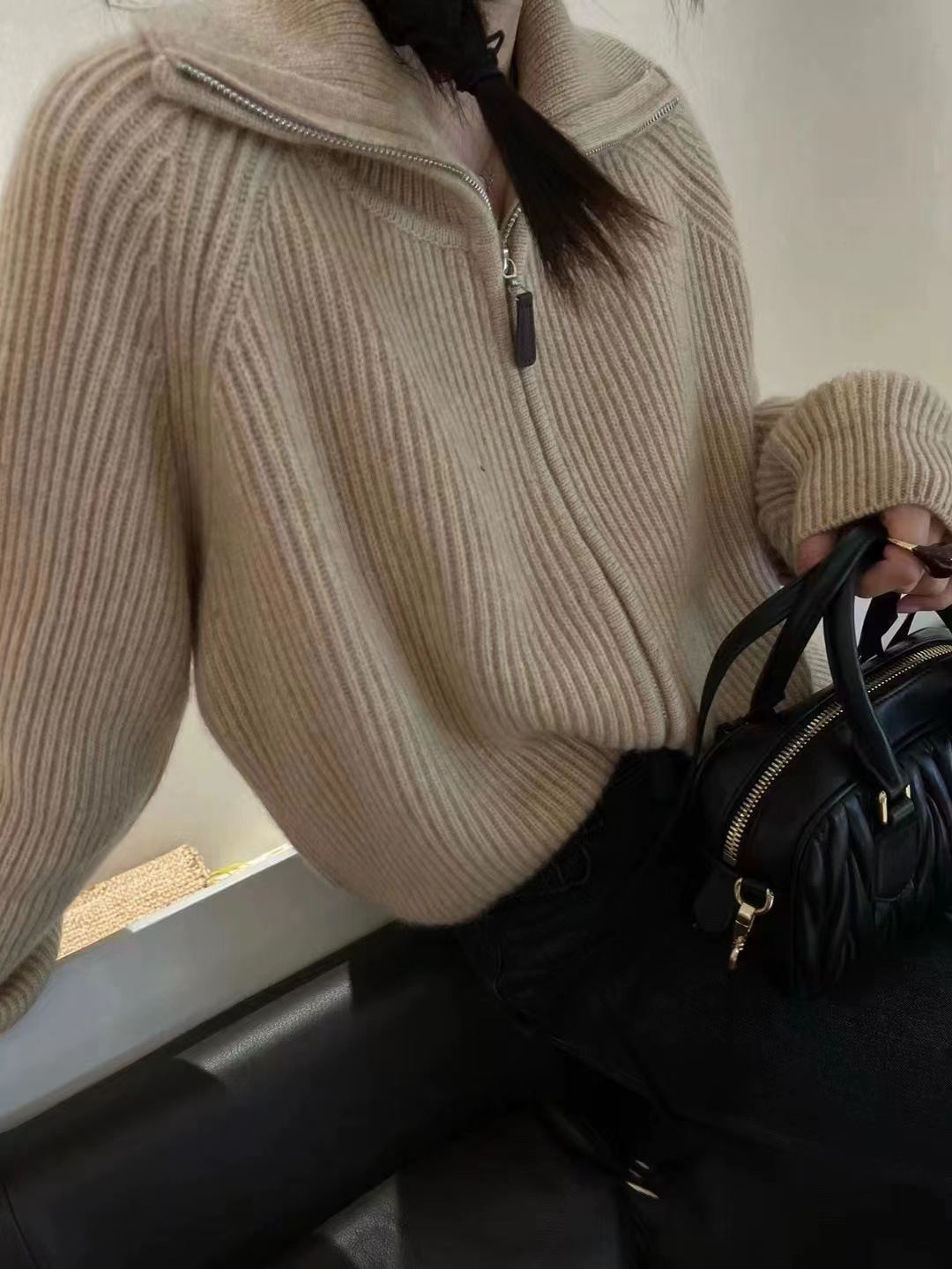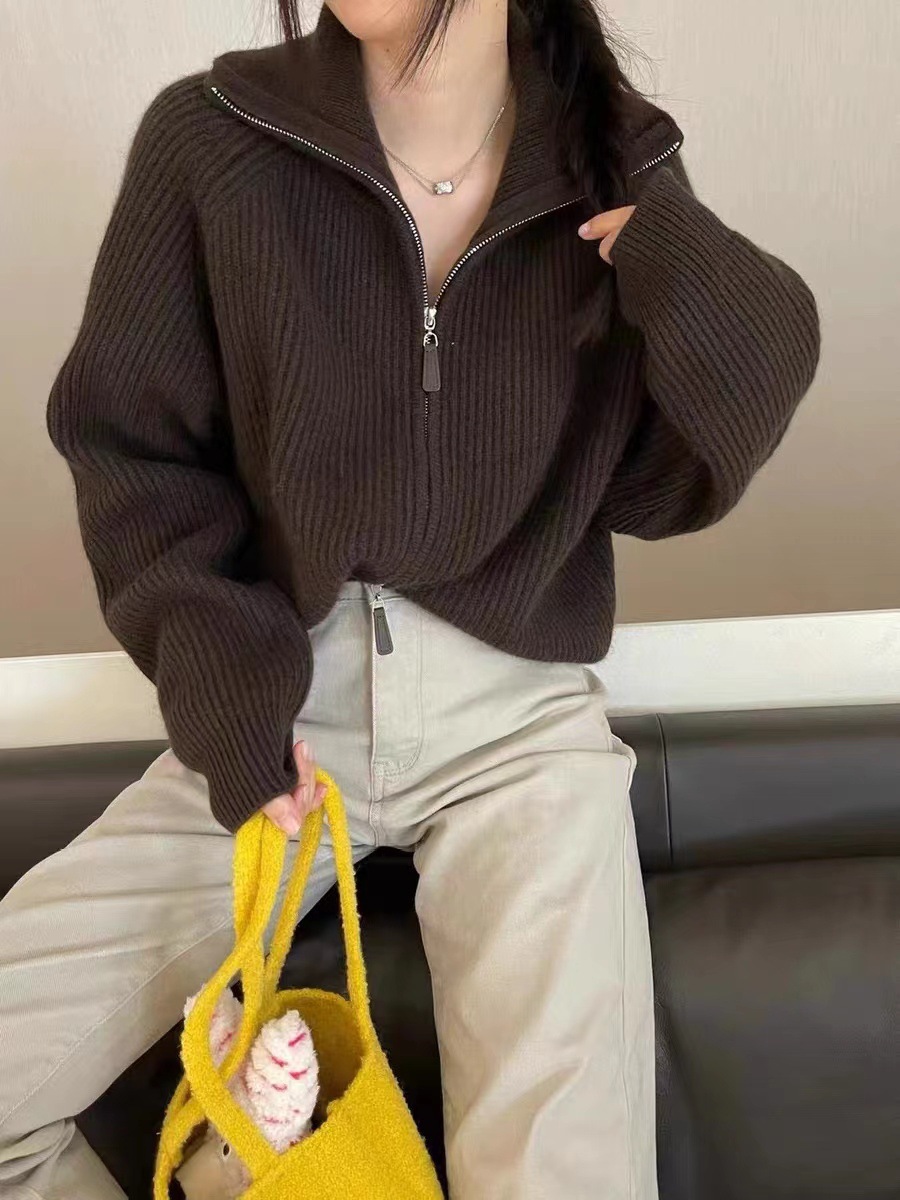 한국 더블 지프 터틀넥 풀 울 스웨터 여성용 카디건 코트 두꺼운 바늘 두꺼운 따뜻한 캐시미어 니트 탑