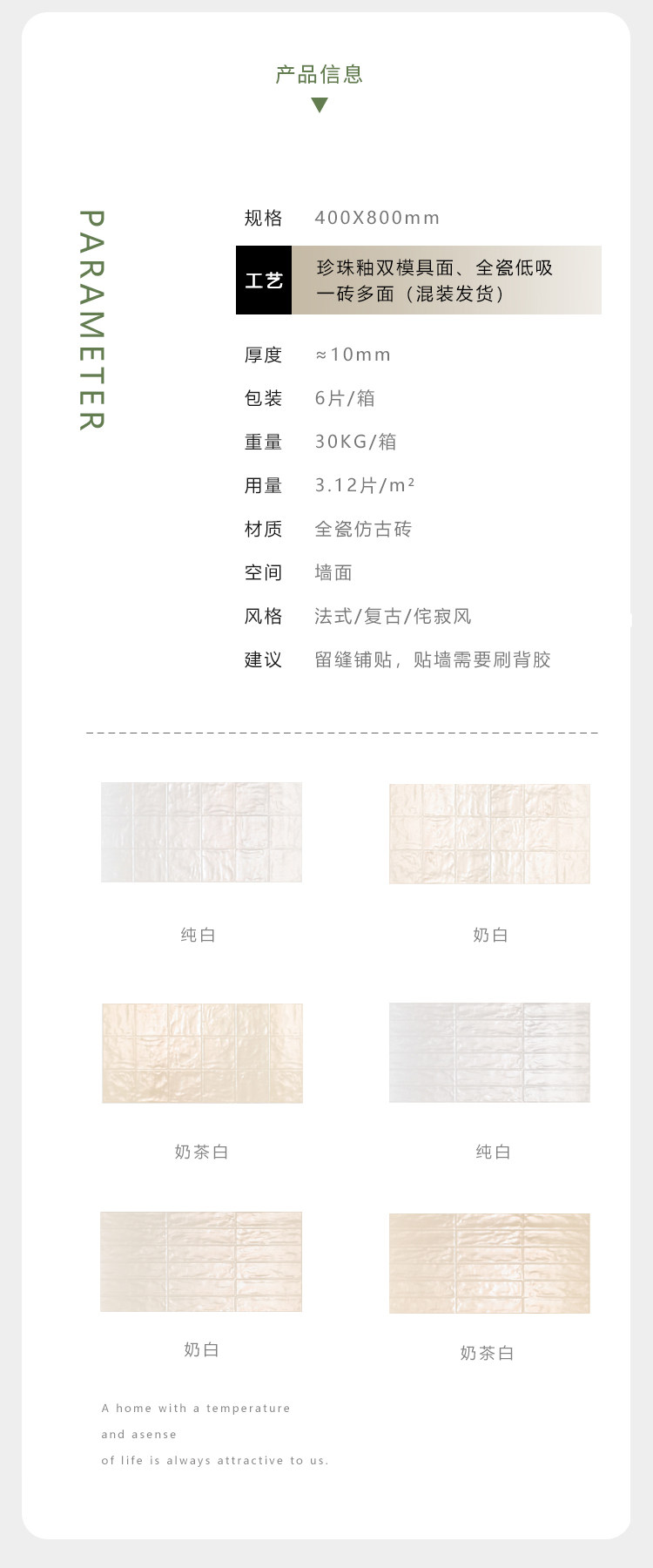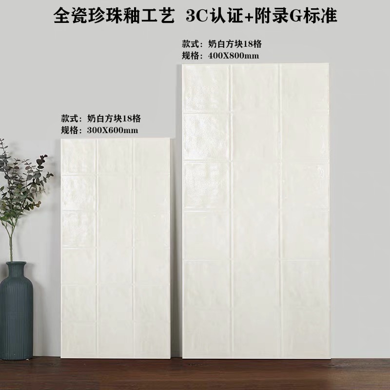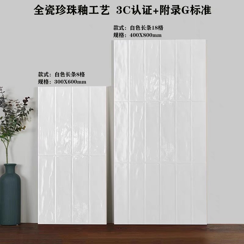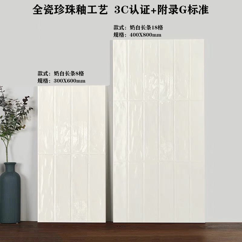 프랑스 레트로 펄 유약 화이트 타일 주방 화장실 타일 400X800 우유 화이트 쉘 벽 타일