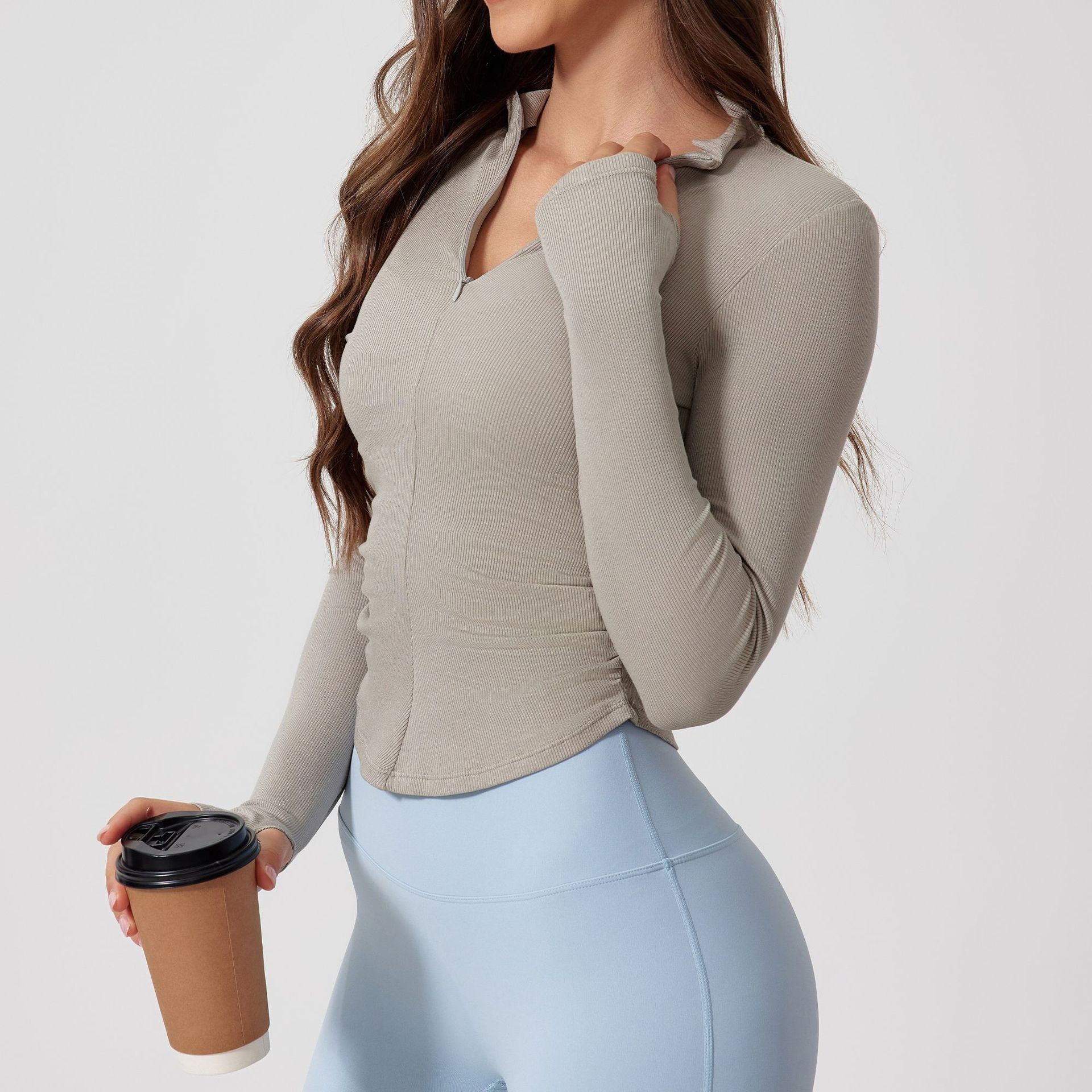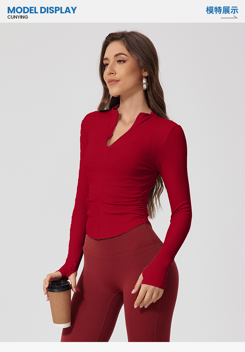 꽉 끼는 알몸 긴팔 스레드 티셔츠 요가 의류 야외 스포츠 탑 스트레치 슬리밍 하프 Zip 훈련 의류