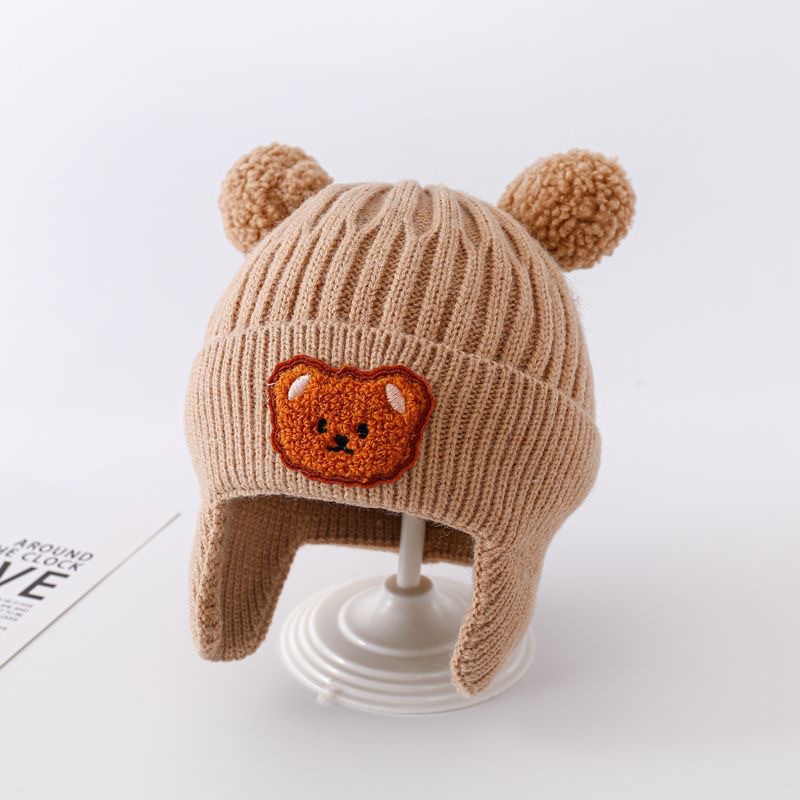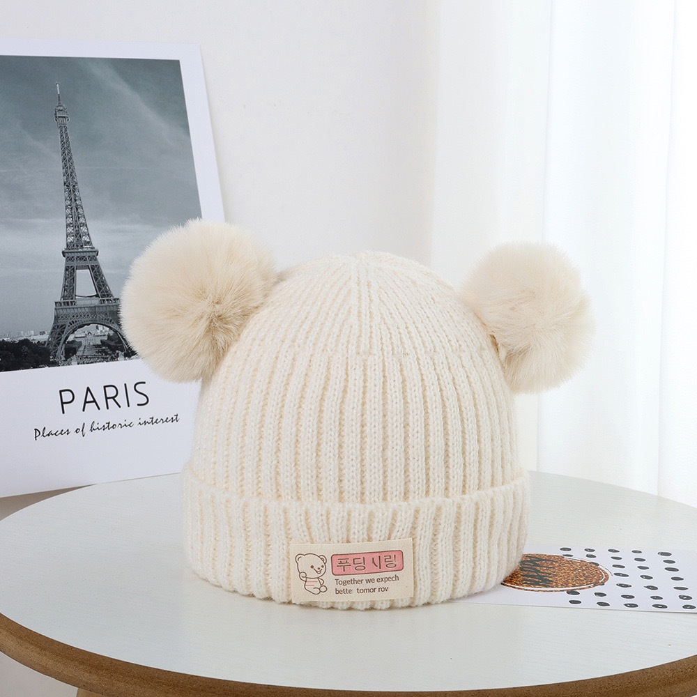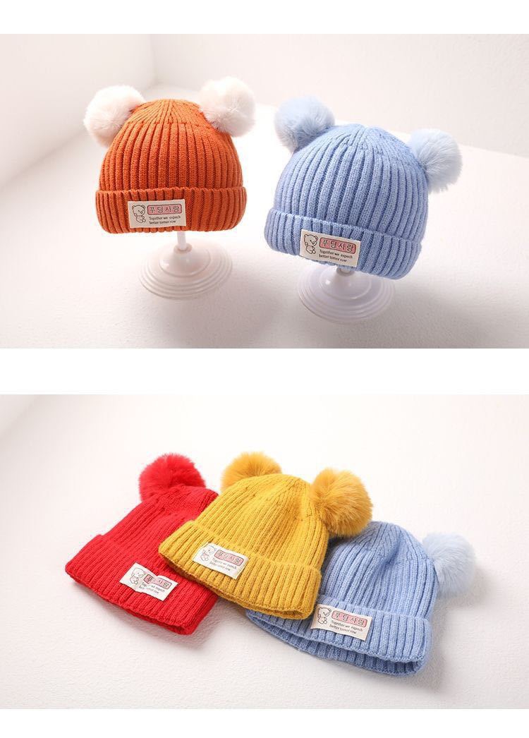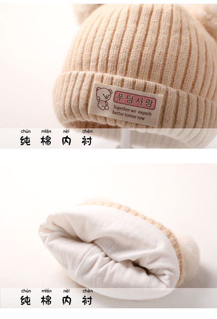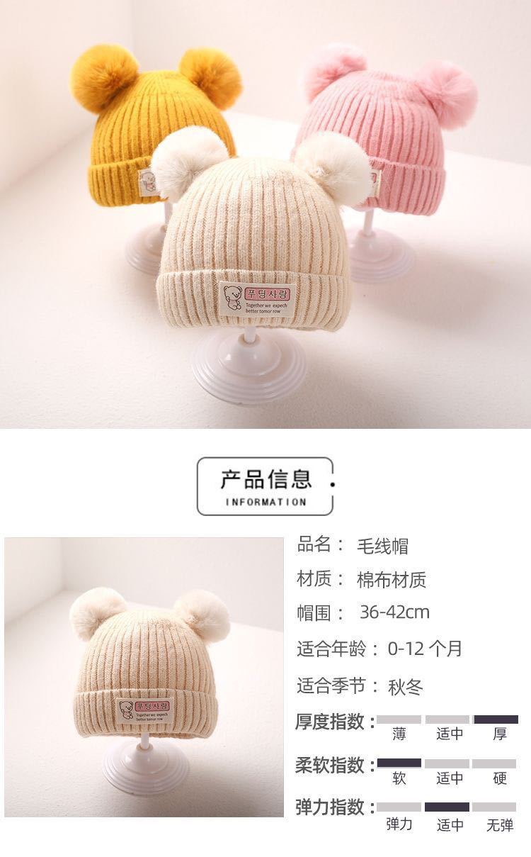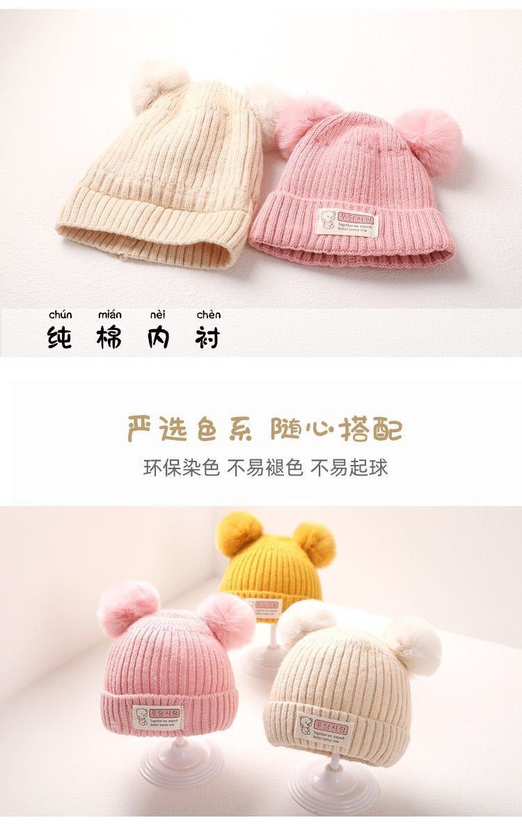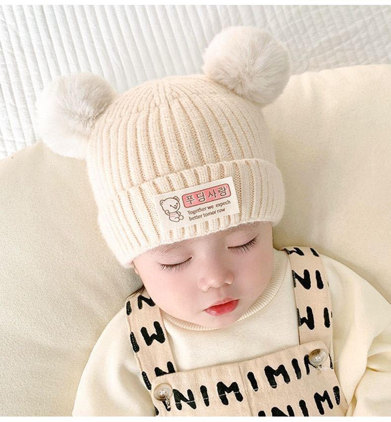 신생아 가을과 겨울 더블 볼 아기 남녀 양모 니트 캡 한국 곰 따뜻한 두꺼운 태아 모자