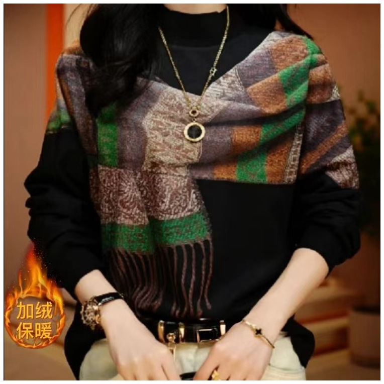 2024 겨울 새로운 패션 시대 감소 슬리밍 살포 덮개 셔츠 기모 두꺼운 가짜 투피스 여성용 슬리밍 셔츠스토어 가기